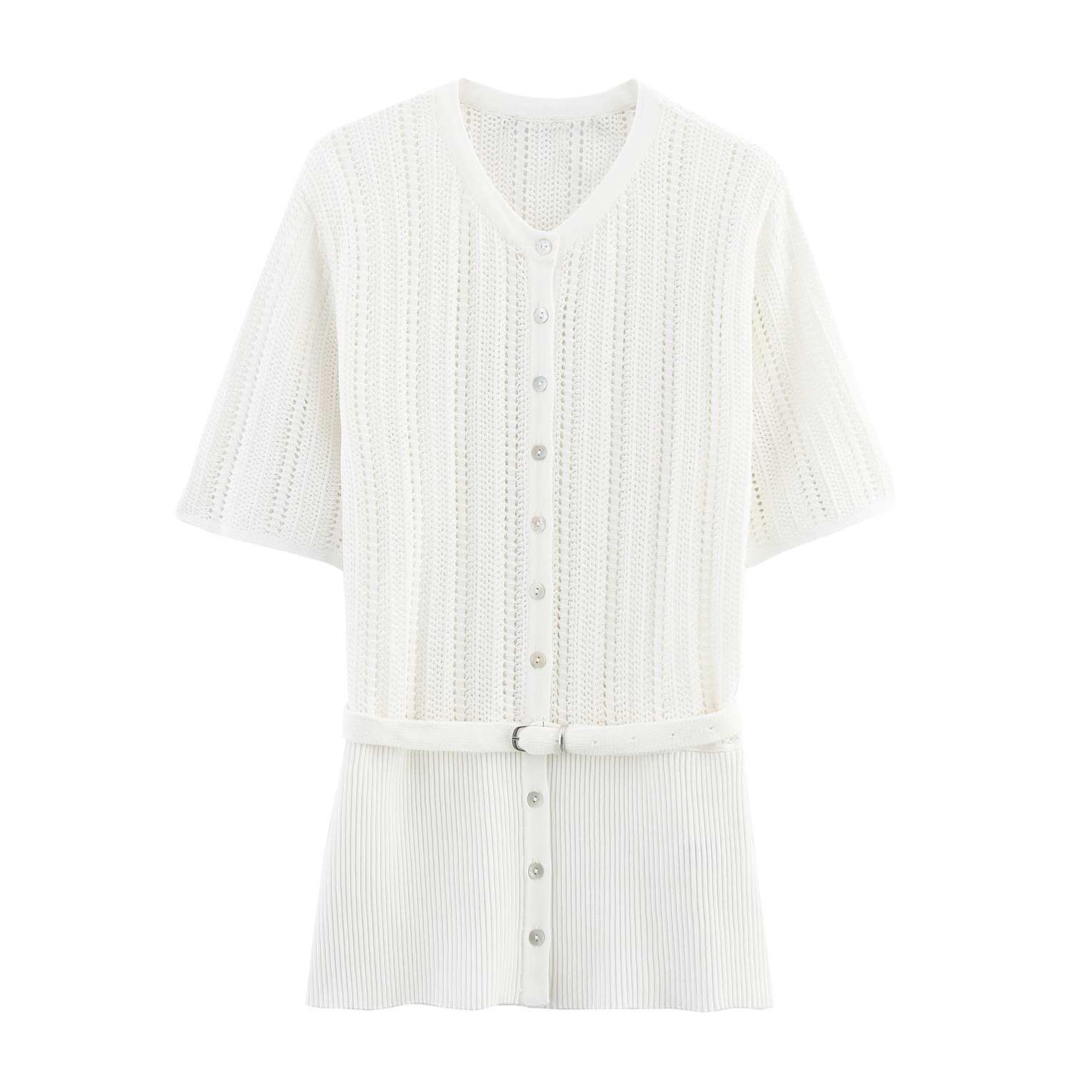 Estilo Europeo y Americano Verano Venta al por Mayor con Nuevo Comercio Exterior Jacquard Malla Cinturón Chaqueta de Punto Color de la Imagen