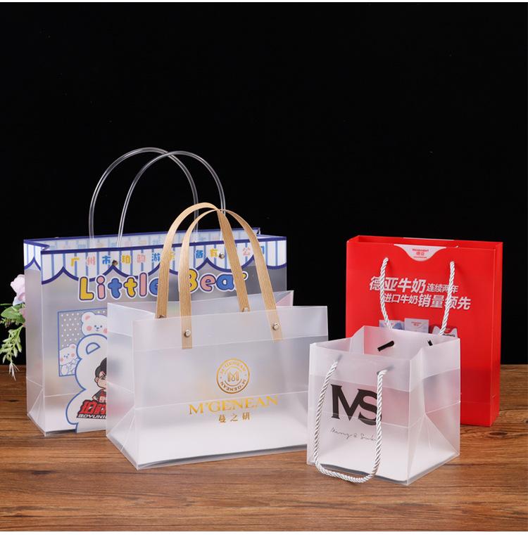 Bolsa de compras transparente de pvc impresión bolsa de regalo esmerilada de plástico pp bolsa para ropa bolsa de embalaje de regalo para mano