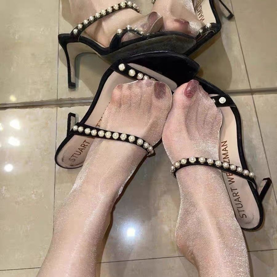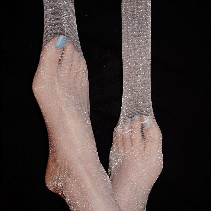 Fuente Medias de Celebridad de Internet para Mujeres, Medias Coreanas Brillantes Perladas Delgadas, Calcetines de Pierna de Verano Ultrafinos, Color Carne Cabello