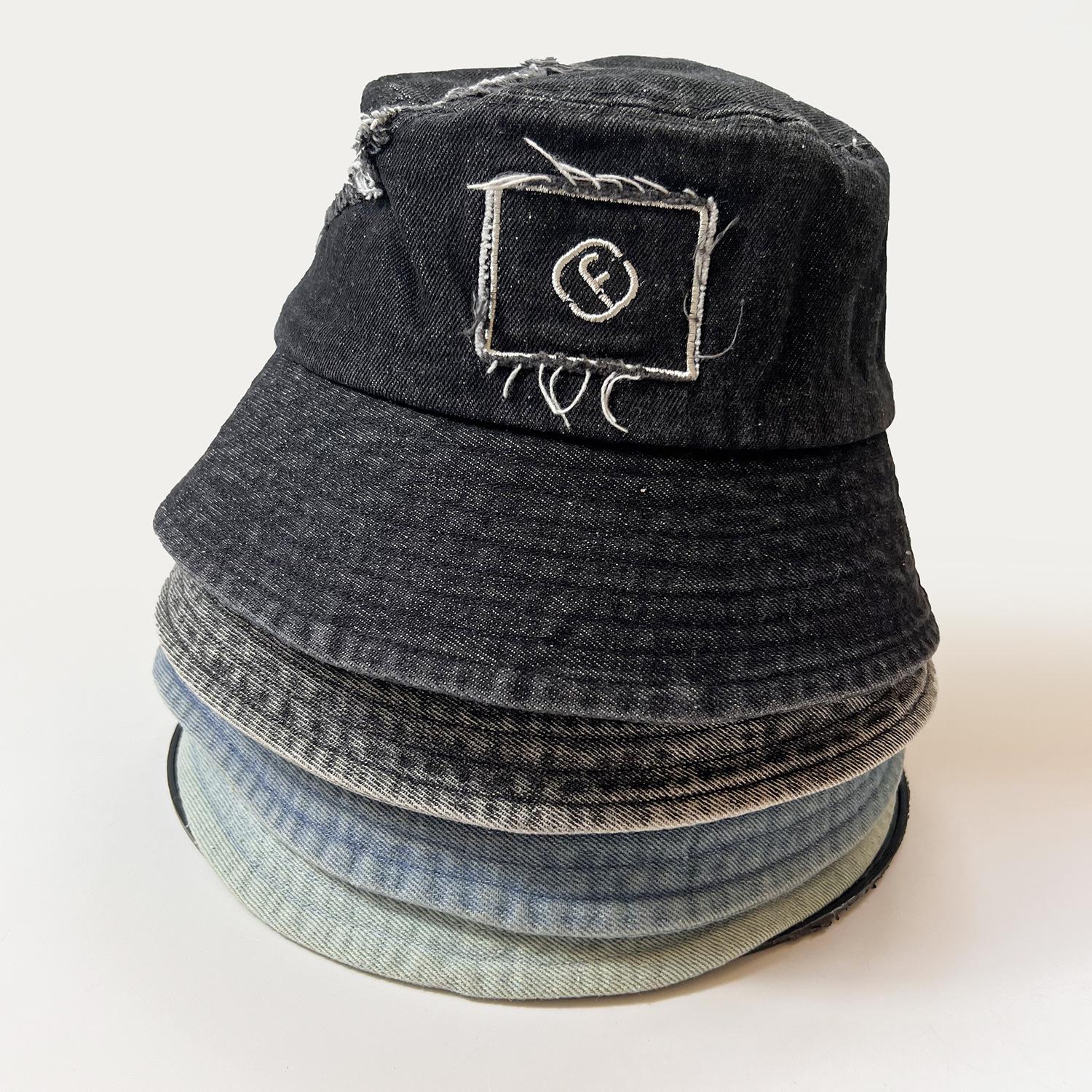 Sombrero de Pescador de Letras de Moda Estilo Coreano para Mujer, Sombrero de Sol de Verano, Sombrero de Cubo de Mezclilla Versátil Japonés, Hace que la Cara se Vea Más Pequeña, Protección Solar
