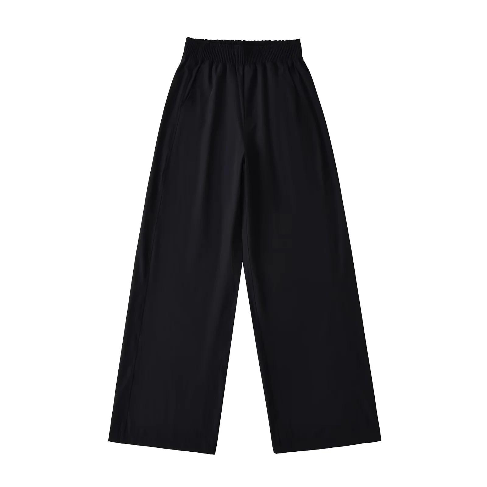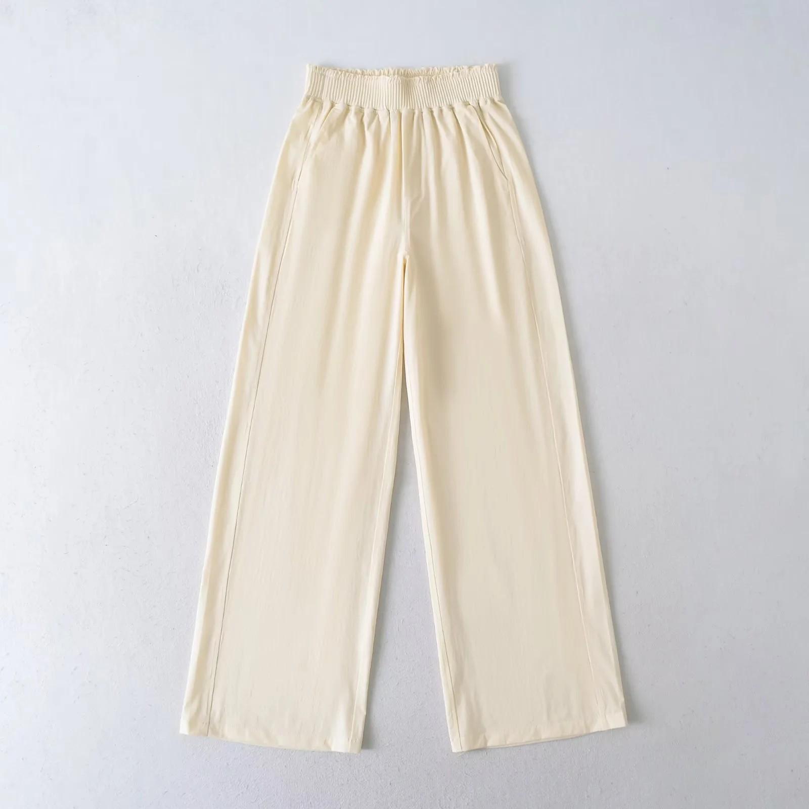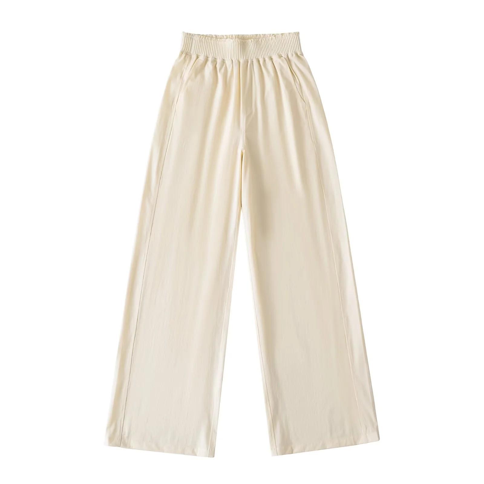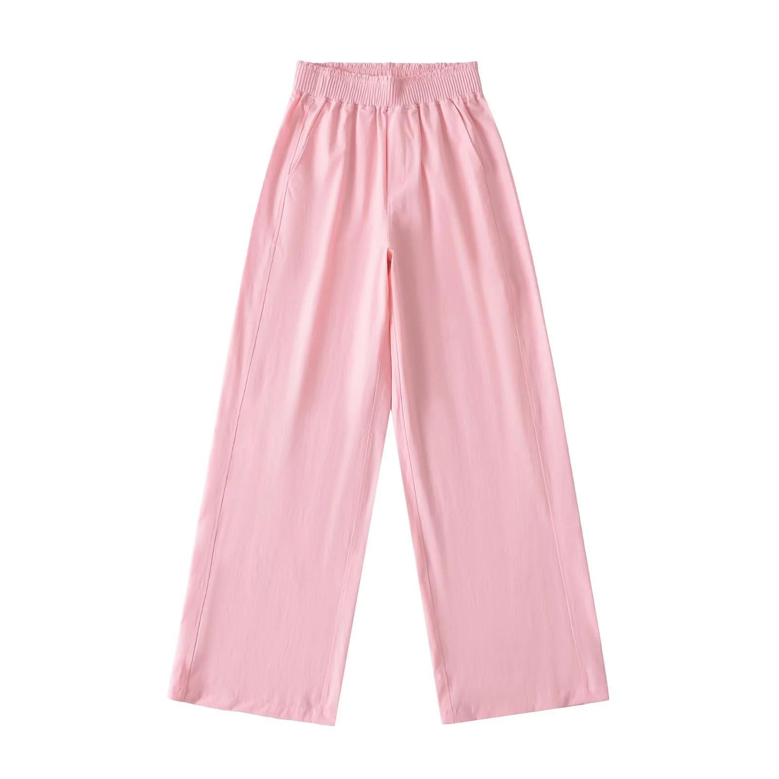 Pantalones Deportivos de Yoga Holgados Versátiles de Verano Color Caramelo de Pierna Recta Pantalones Largos hasta el Piso con Cintura Fruncida Pantalones de Pierna Ancha