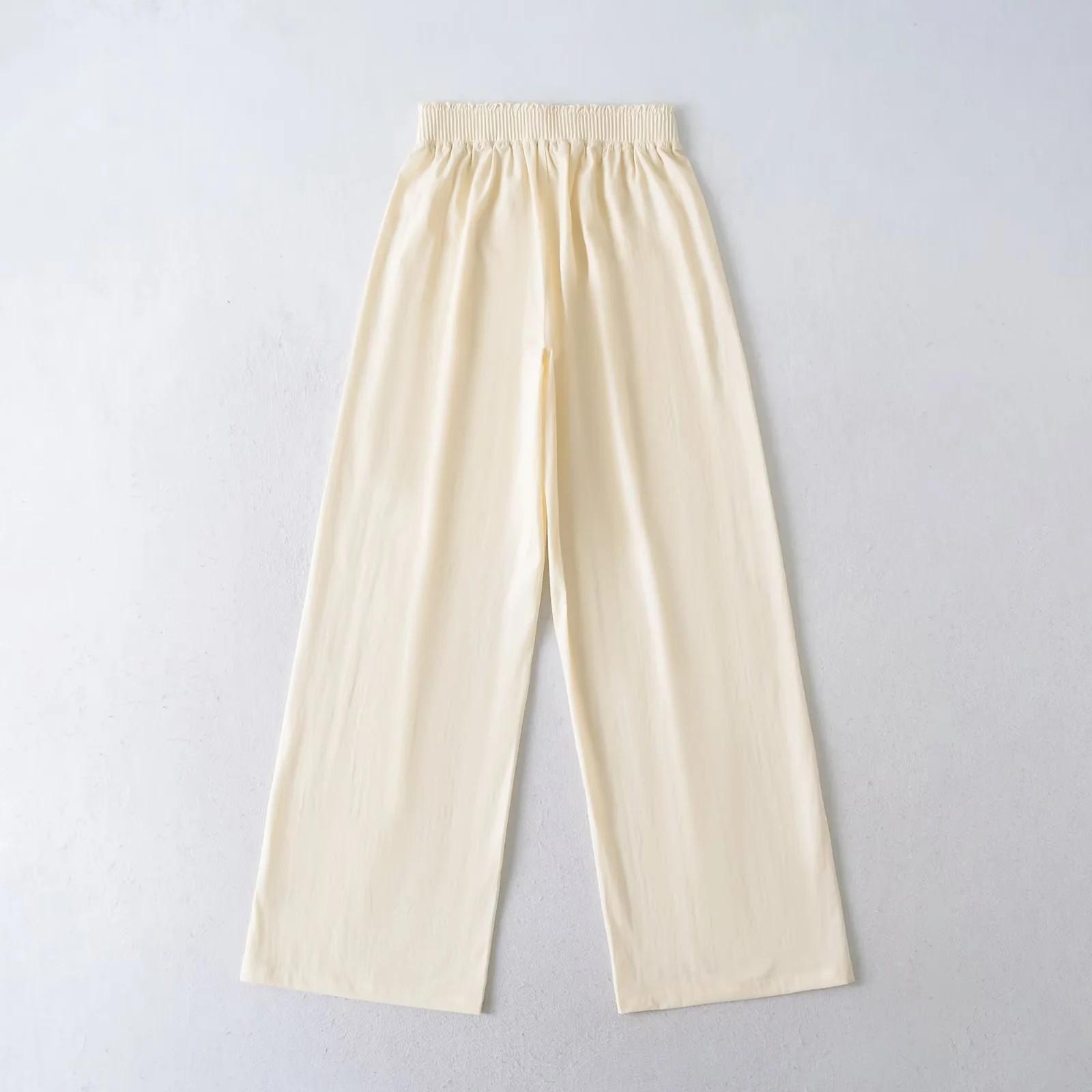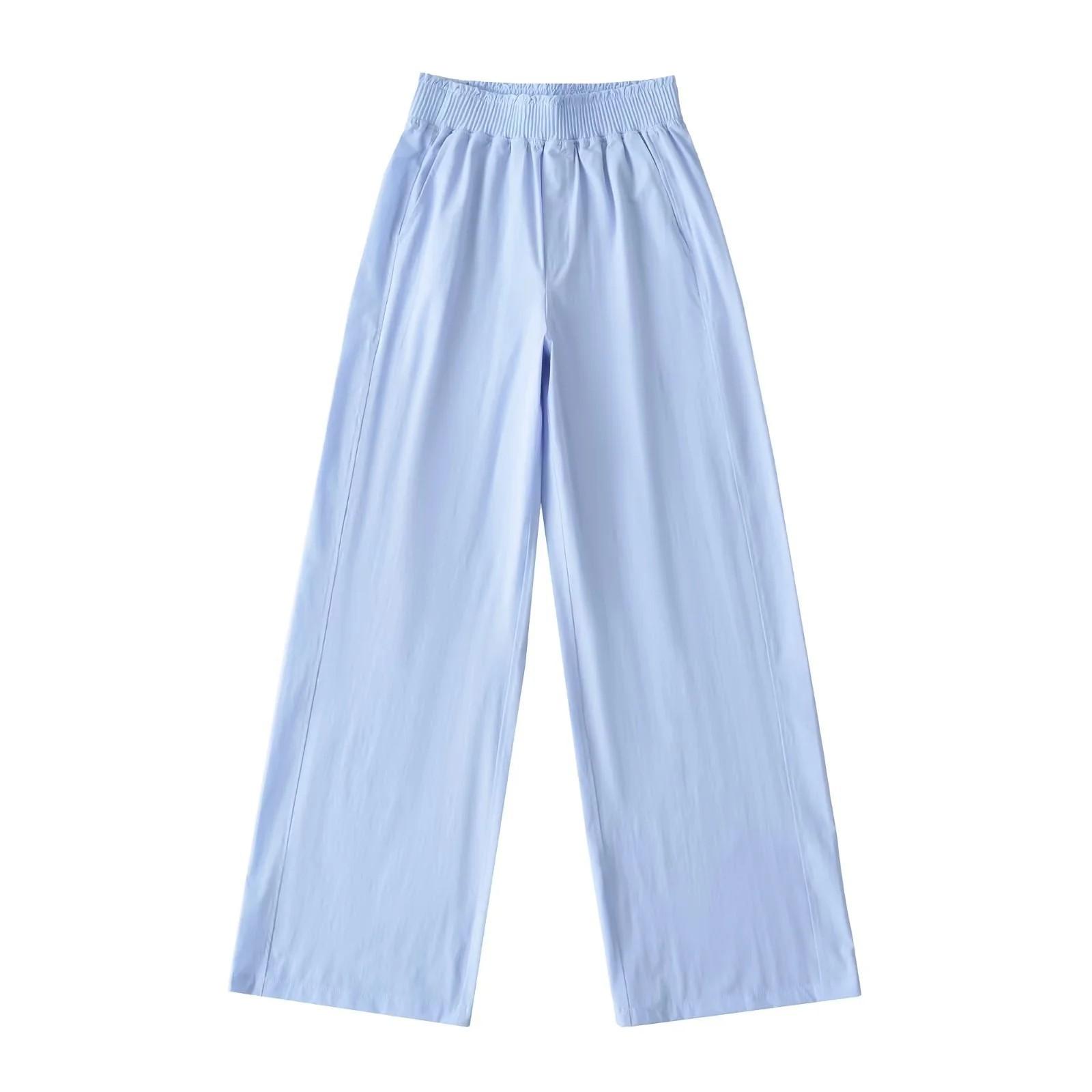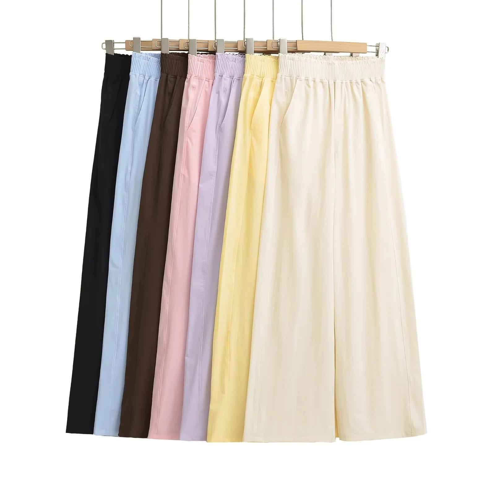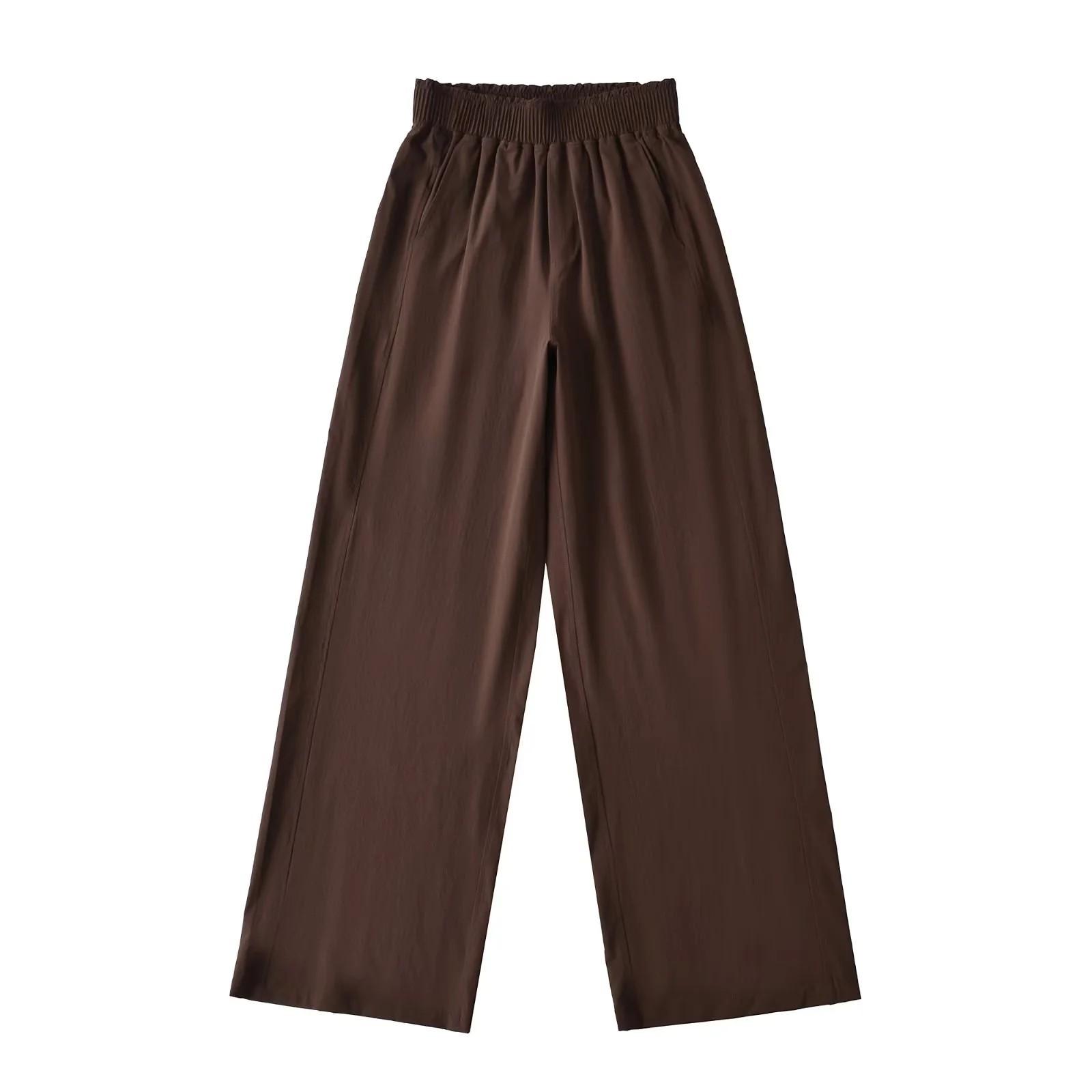 Pantalones Deportivos de Yoga Holgados Versátiles de Verano Color Caramelo de Pierna Recta Pantalones Largos hasta el Piso con Cintura Fruncida Pantalones de Pierna Ancha