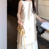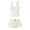 Conjunto de dos piezas de falda de malla de verano Traje casual y suave Vestido suelto sin mangas con flores Mujer