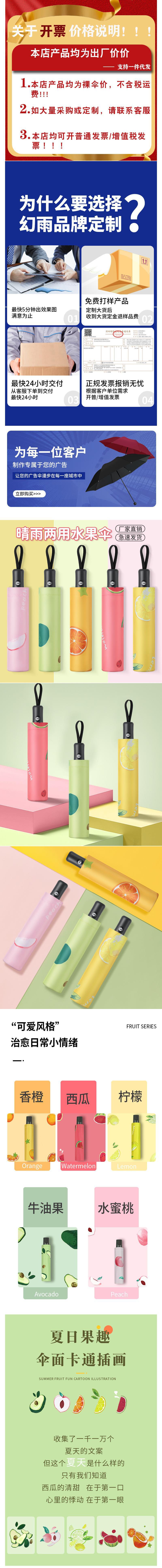 Paraguas de Frutas, Lluvia o Sol, Paraguas de Protección Solar, Paraguas Plegable Anti-UV, Mini Paraguas para el Sol, Paraguas de Vinilo al por Mayor