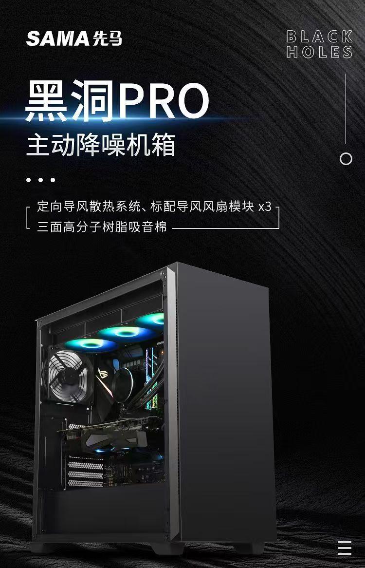 Sama Black Hole Pro Negro Torre Media Absorción Activa de Sonido y Reducción de Ruido Gabinete Principal para Computadora Vertical