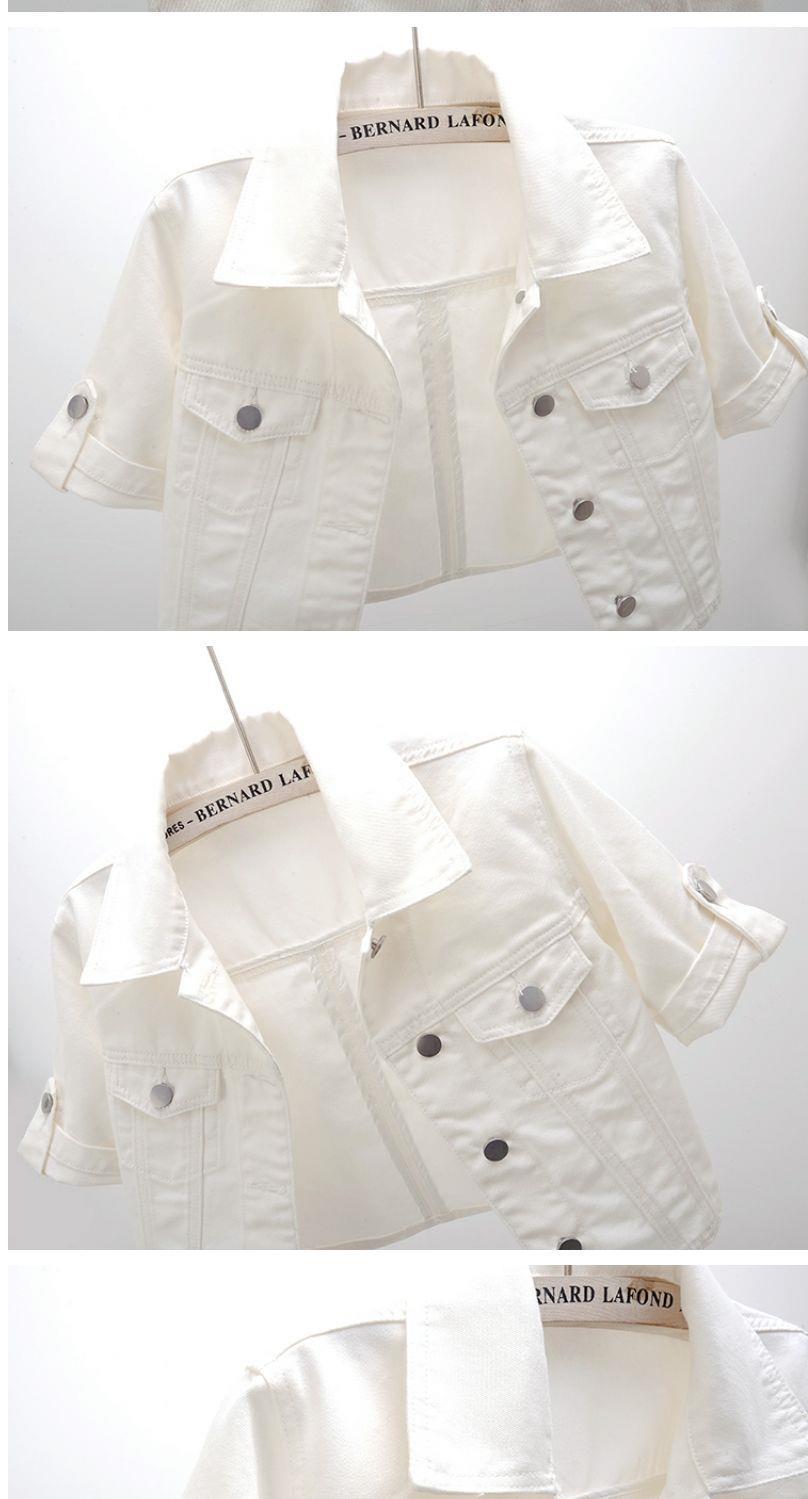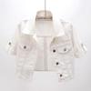 Nuevo Chaqueta de Mezclilla de Manga Corta Transfronteriza para Mujer Chaqueta Corta Delgada Tipo Chaleco Exterior Cárdigan Blanco