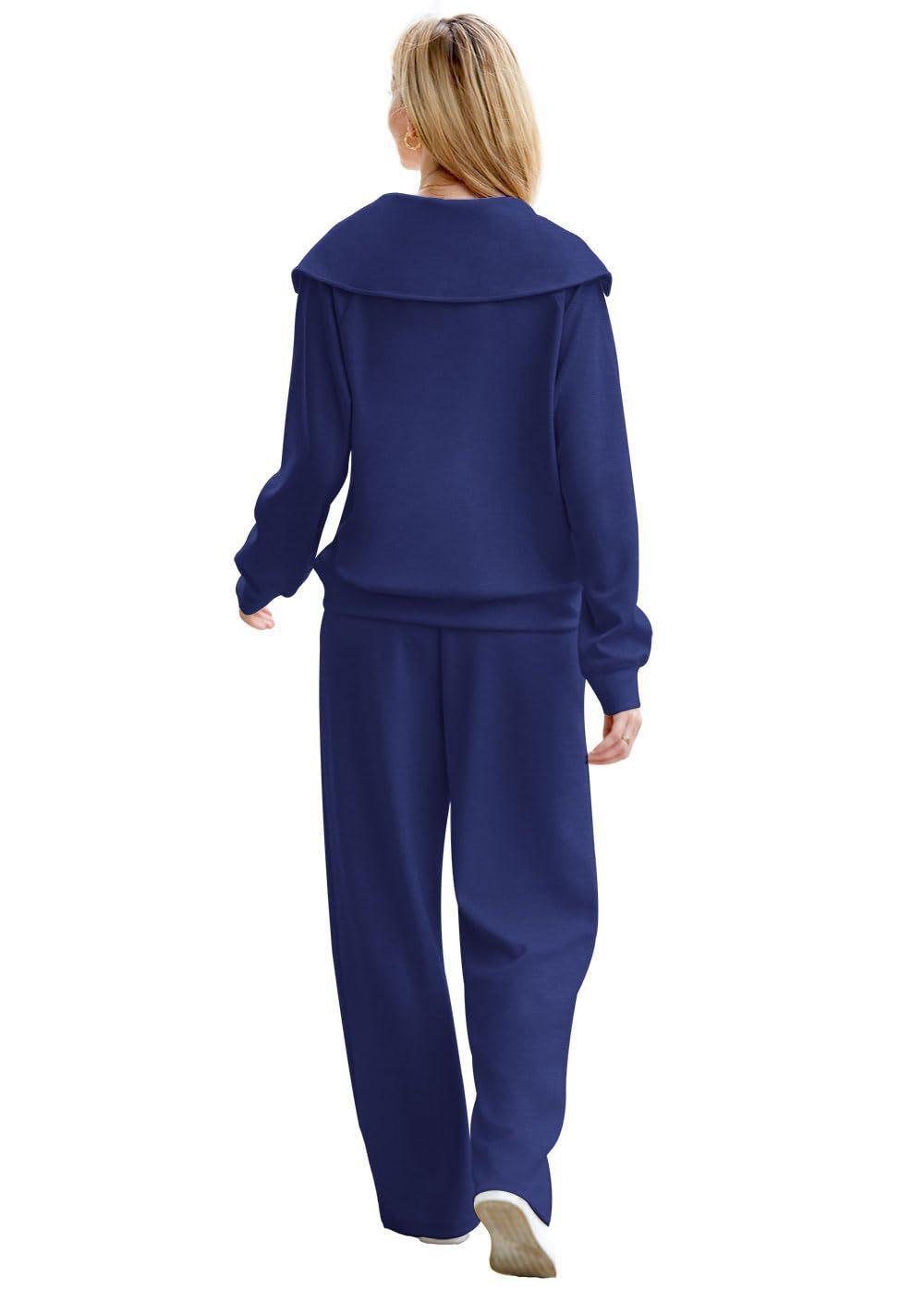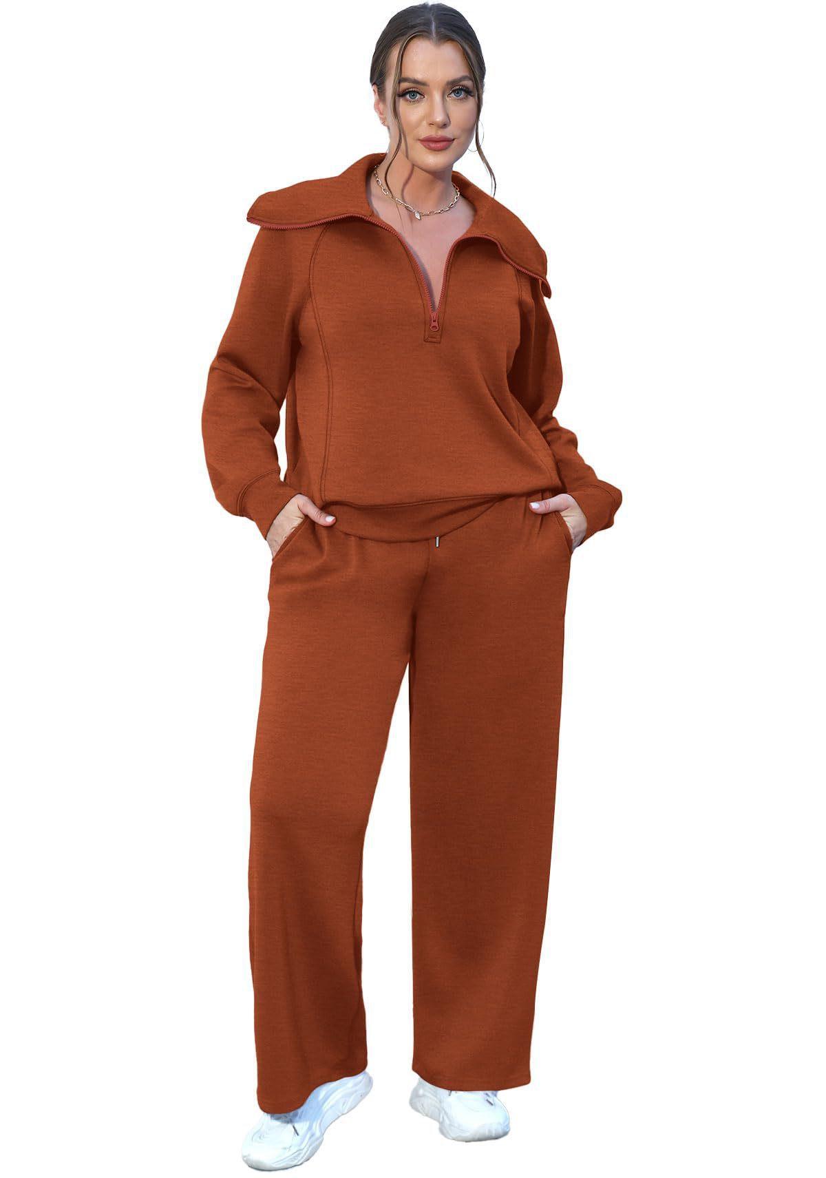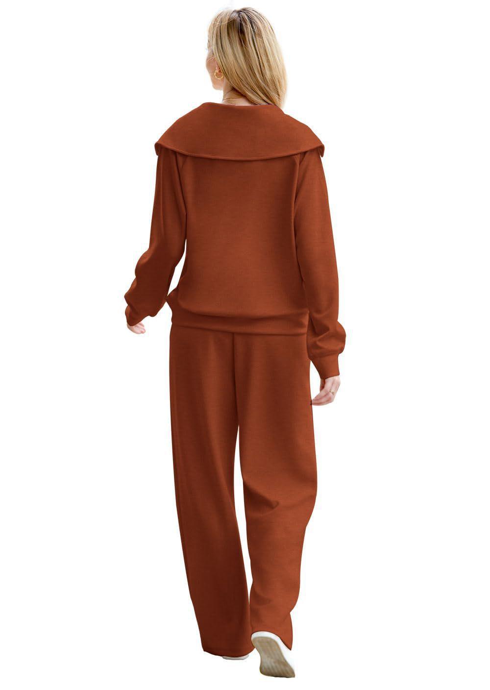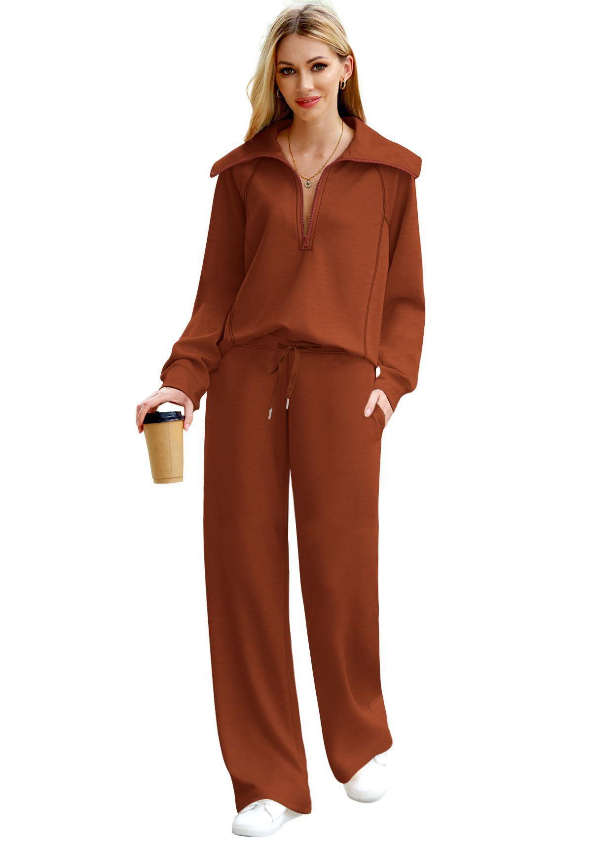 Traje Deportivo Casual de Otoño e Invierno de Comercio Exterior Europeo y Americano Amazon Sudadera de Manga Larga con Cremallera Pantalones de Pierna Ancha Conjunto de Dos Piezas