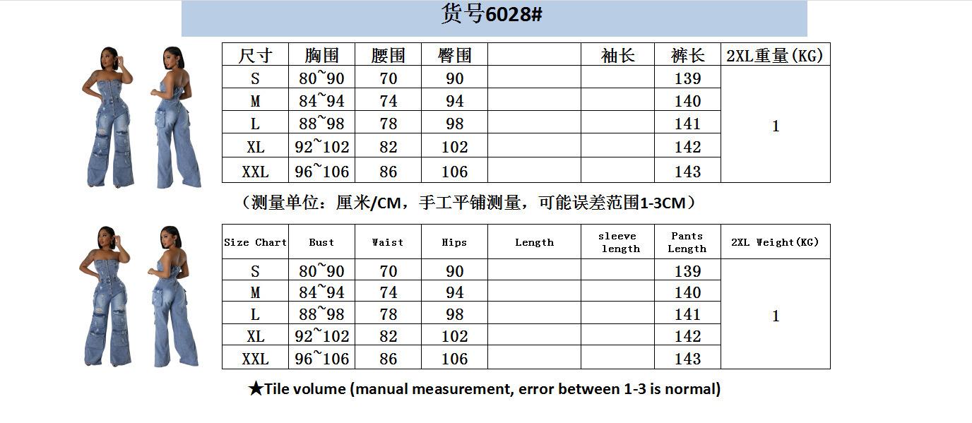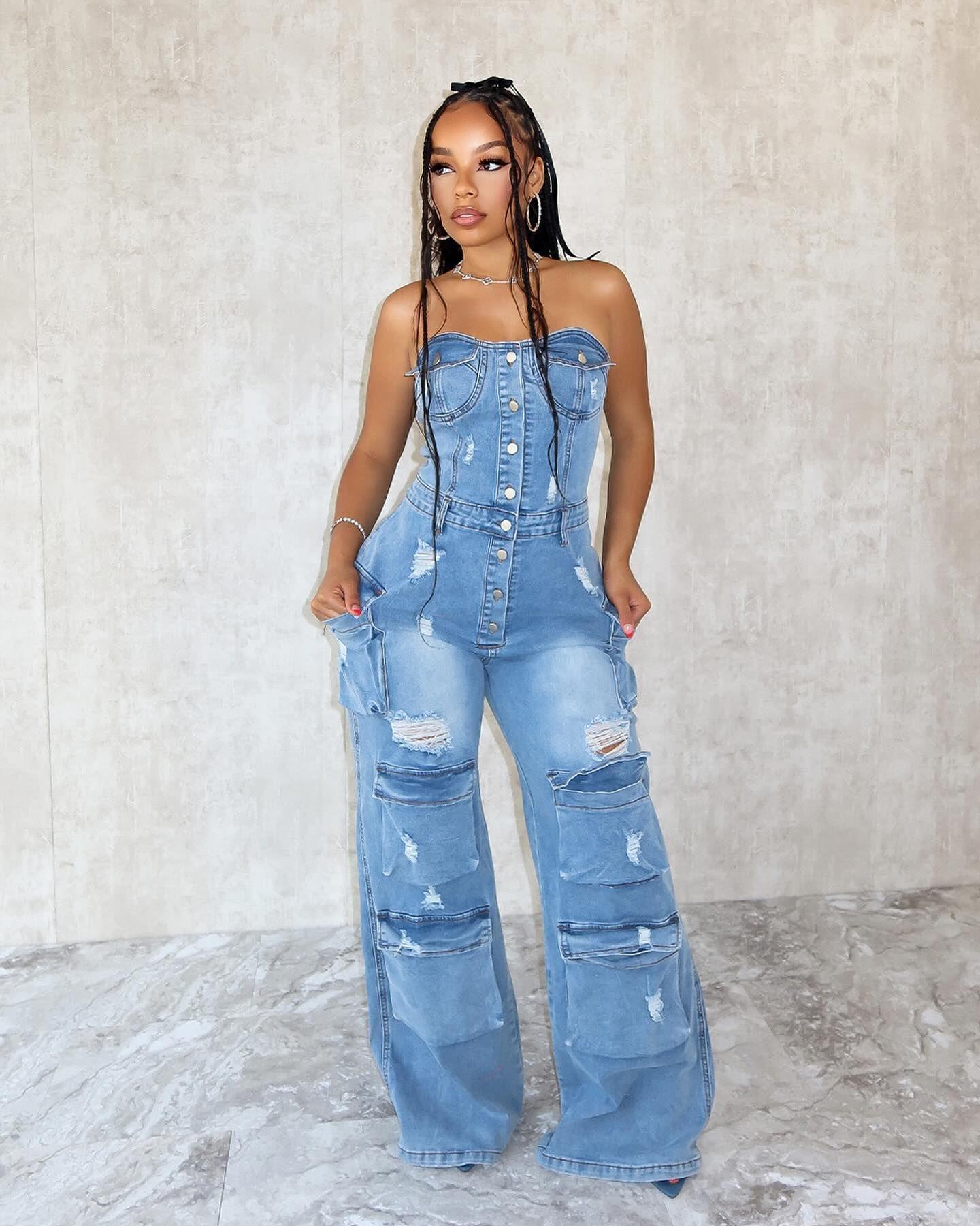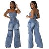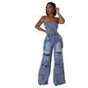Amazon Transfronterizo Nuevo Mono de Mezclilla Ajustado para Mujer sin Tirantes de Moda Casual Europea y Americana