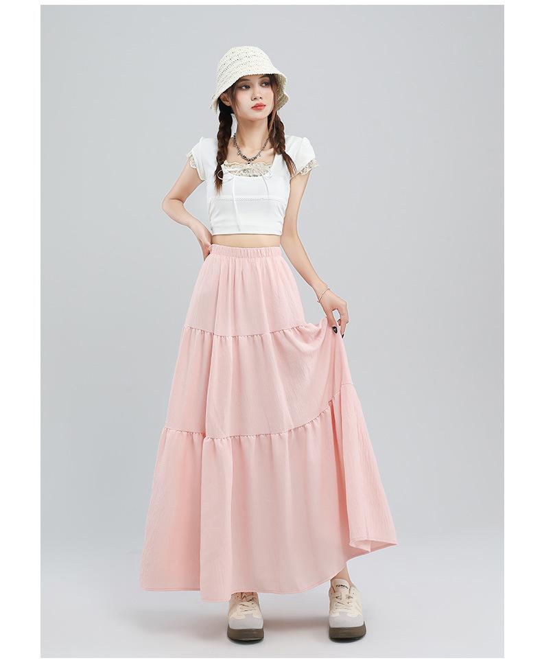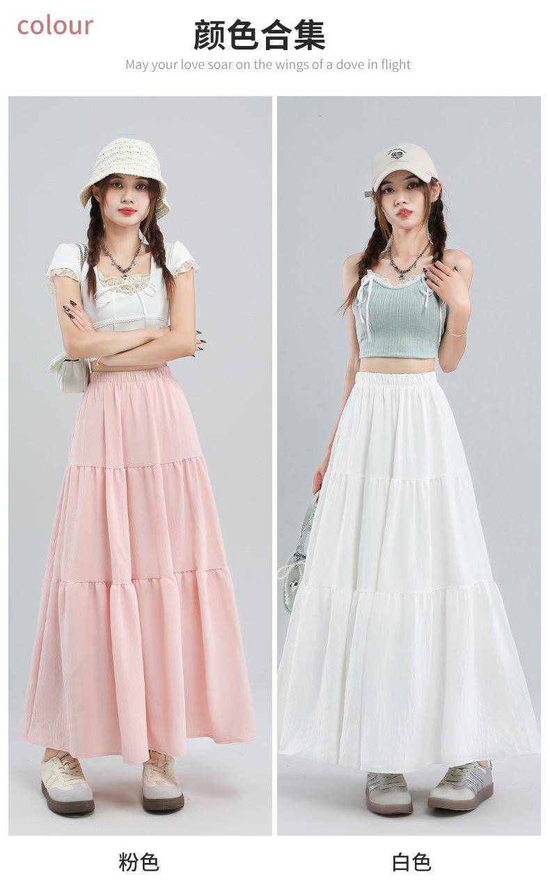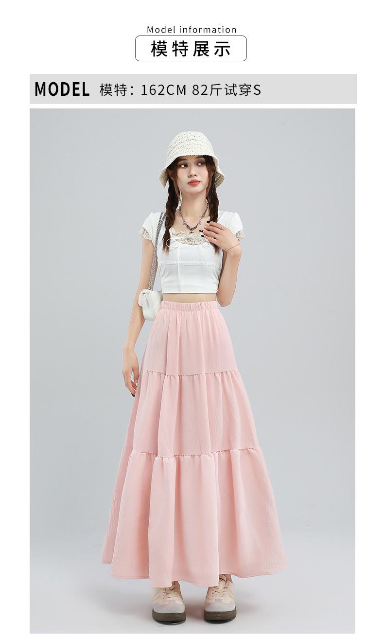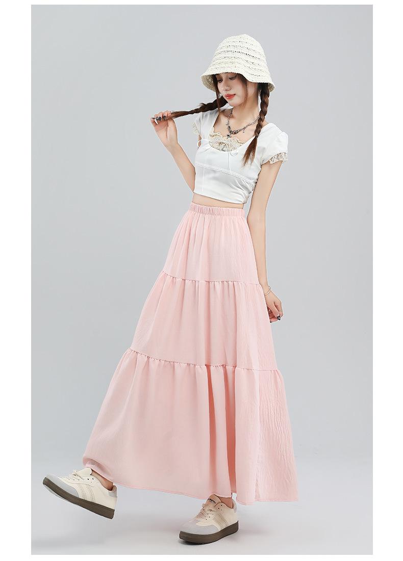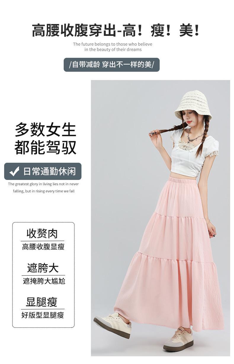 Primavera 2025 Nueva Falda de Pastel Estilo Dulce Petite Cintura Alta Empalmada Exquisita Casual Versátil Color Sólido Media Falda