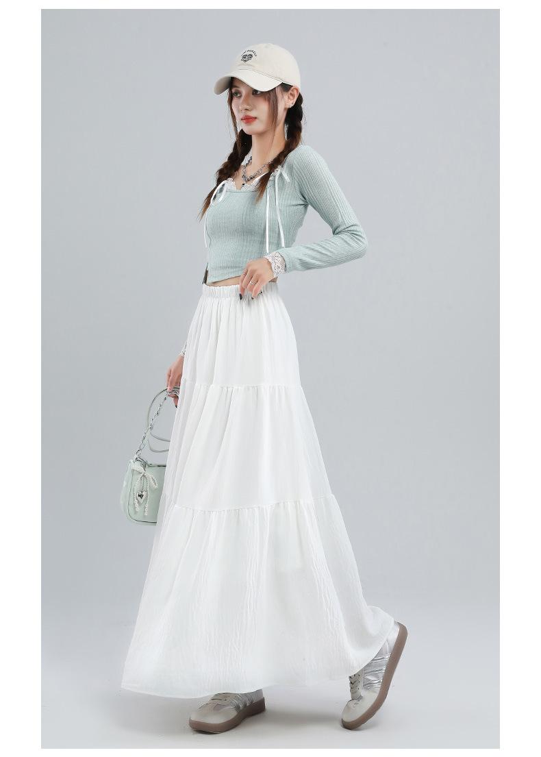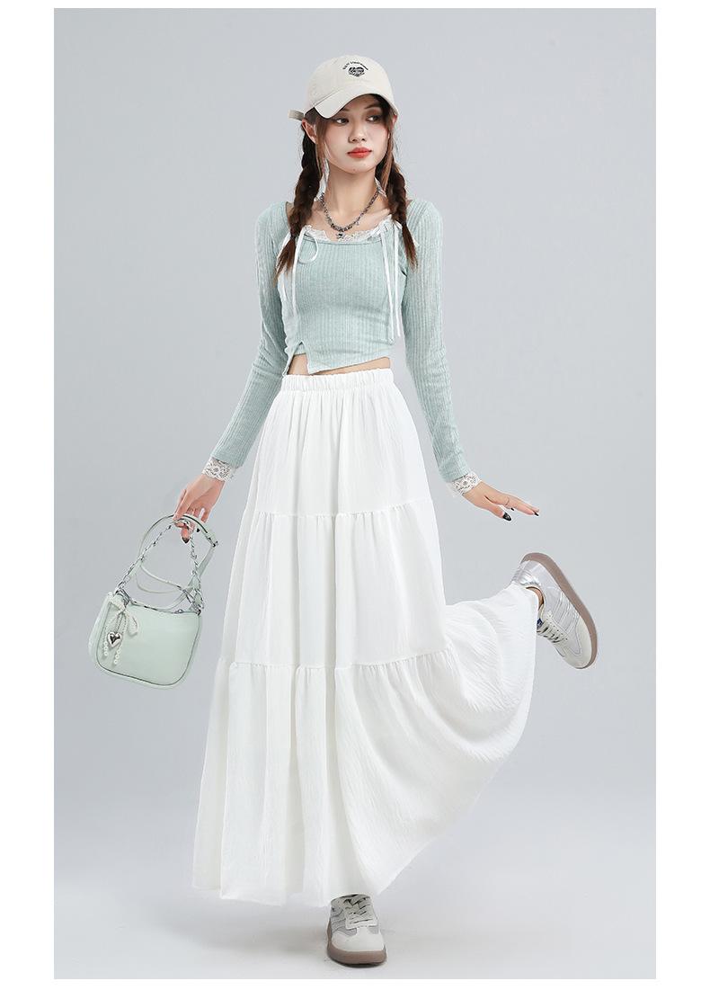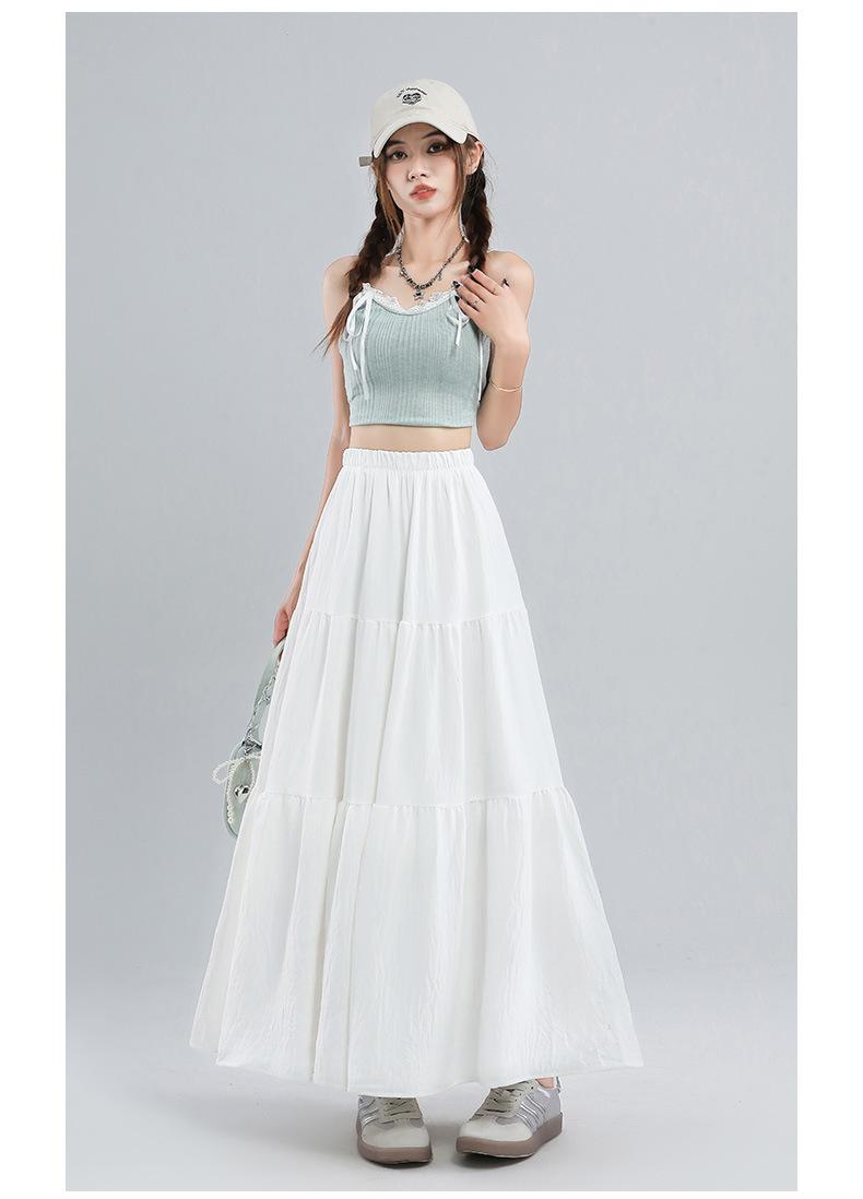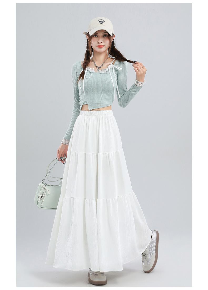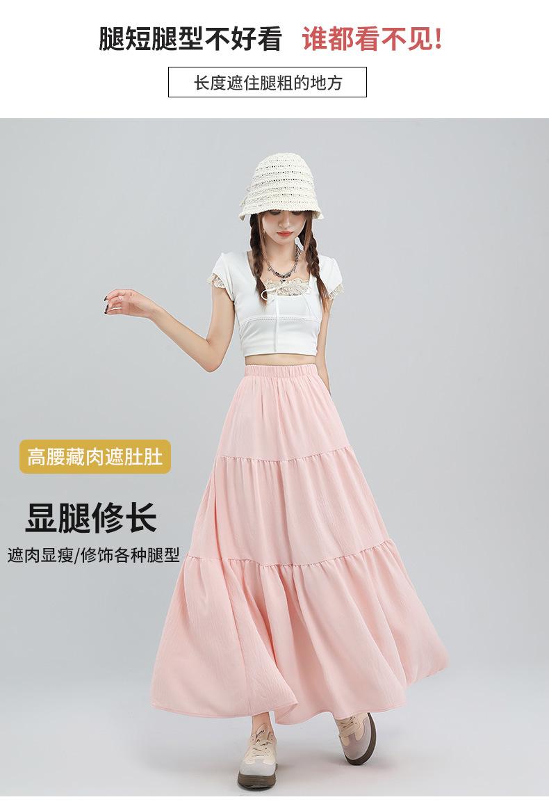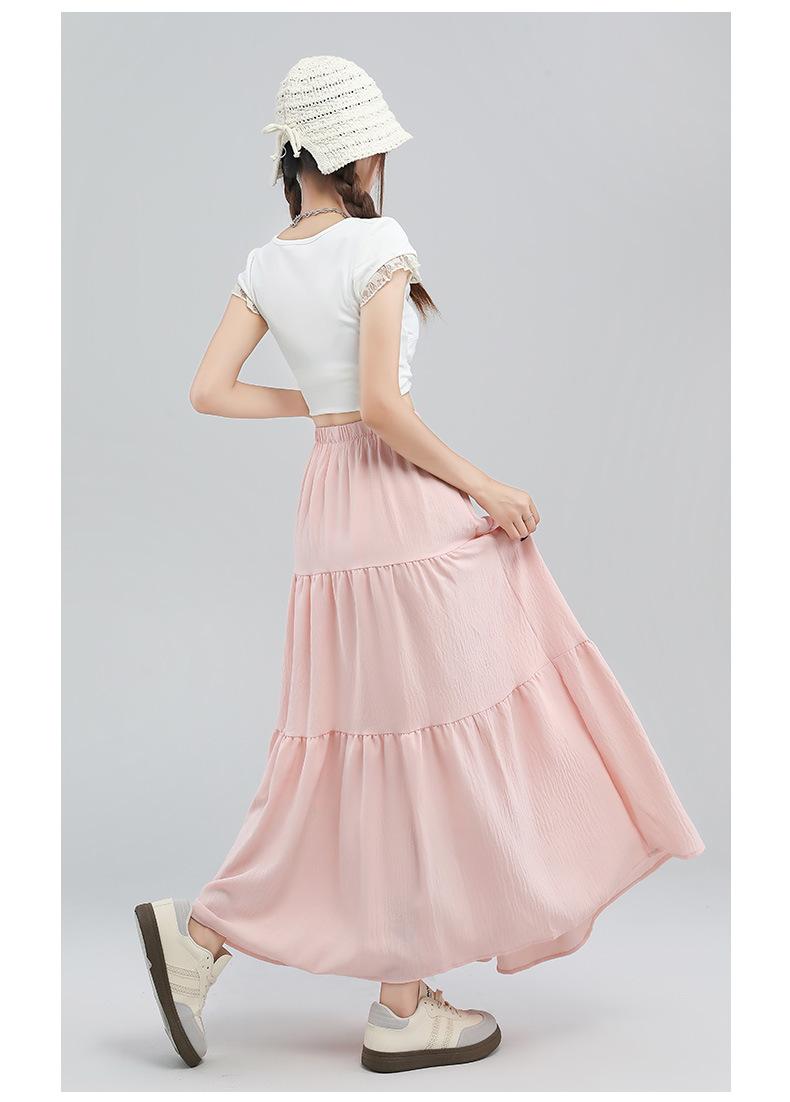 Primavera 2025 Nueva Falda de Pastel Estilo Dulce Petite Cintura Alta Empalmada Exquisita Casual Versátil Color Sólido Media Falda