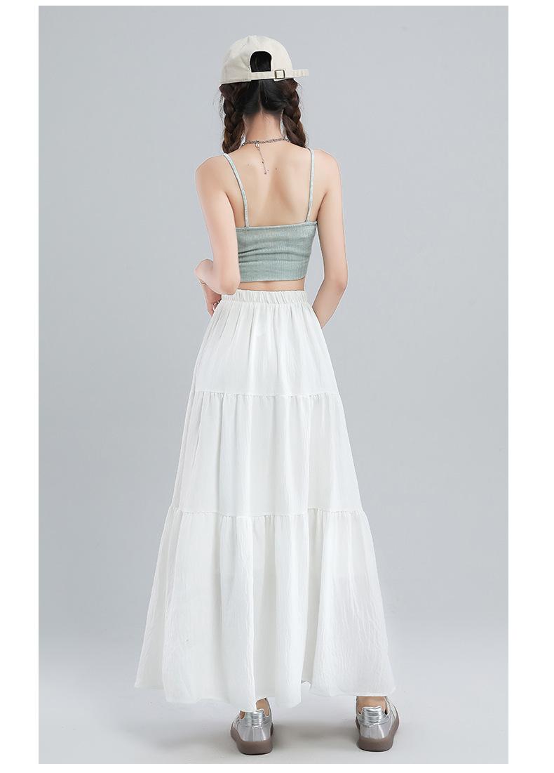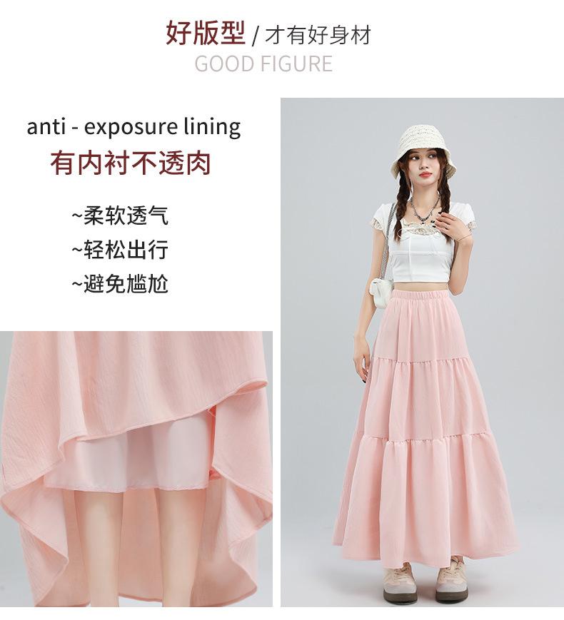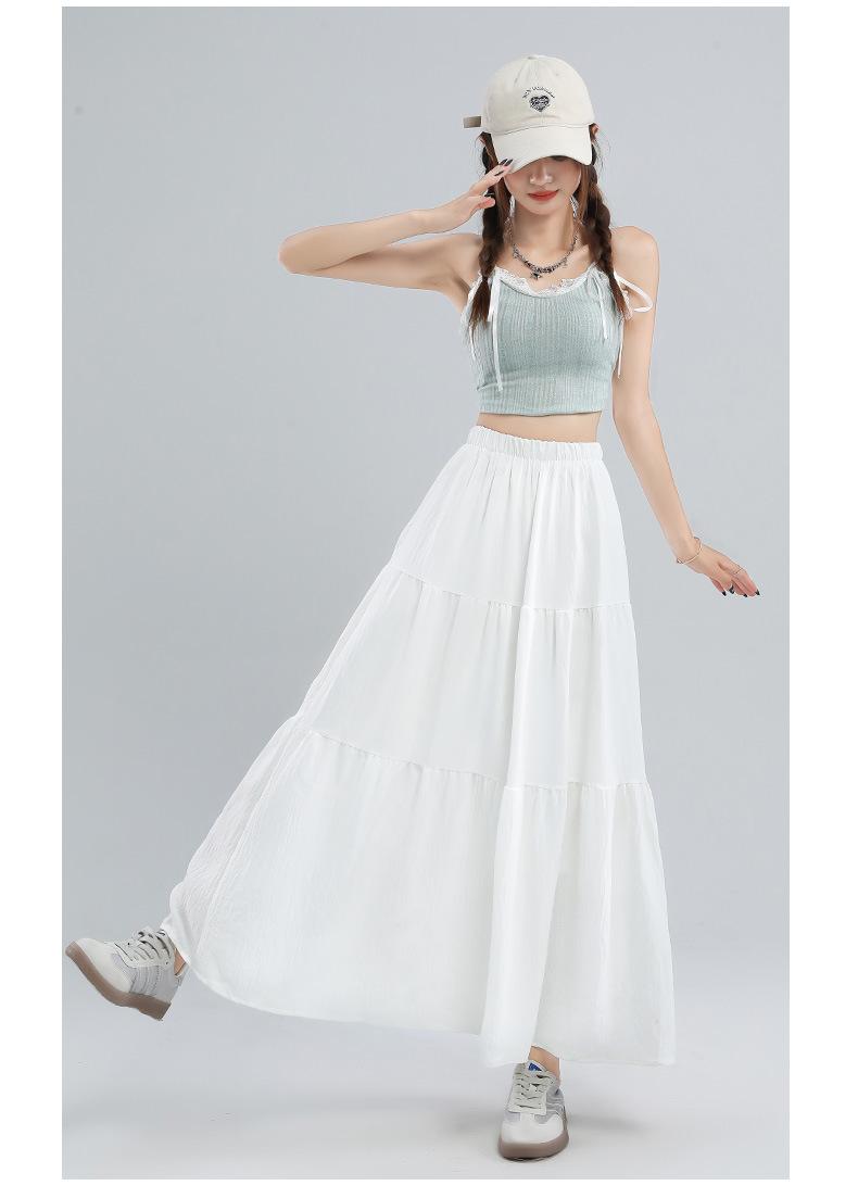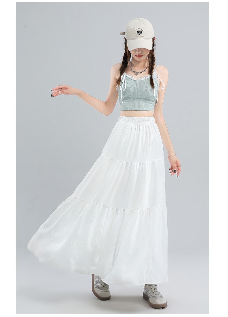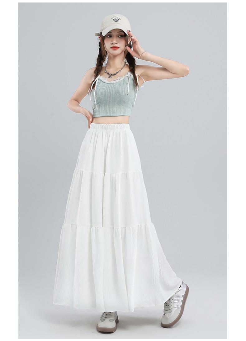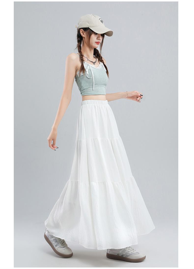 Primavera 2025 Nueva Falda de Pastel Estilo Dulce Petite Cintura Alta Empalmada Exquisita Casual Versátil Color Sólido Media Falda