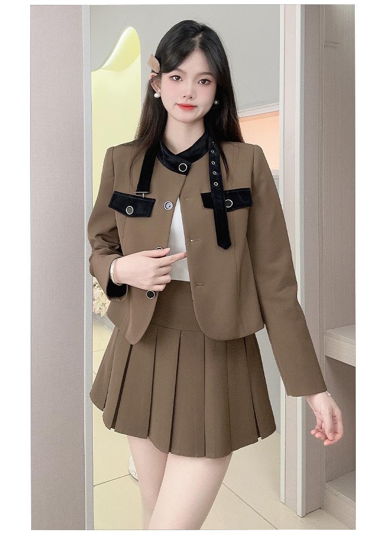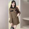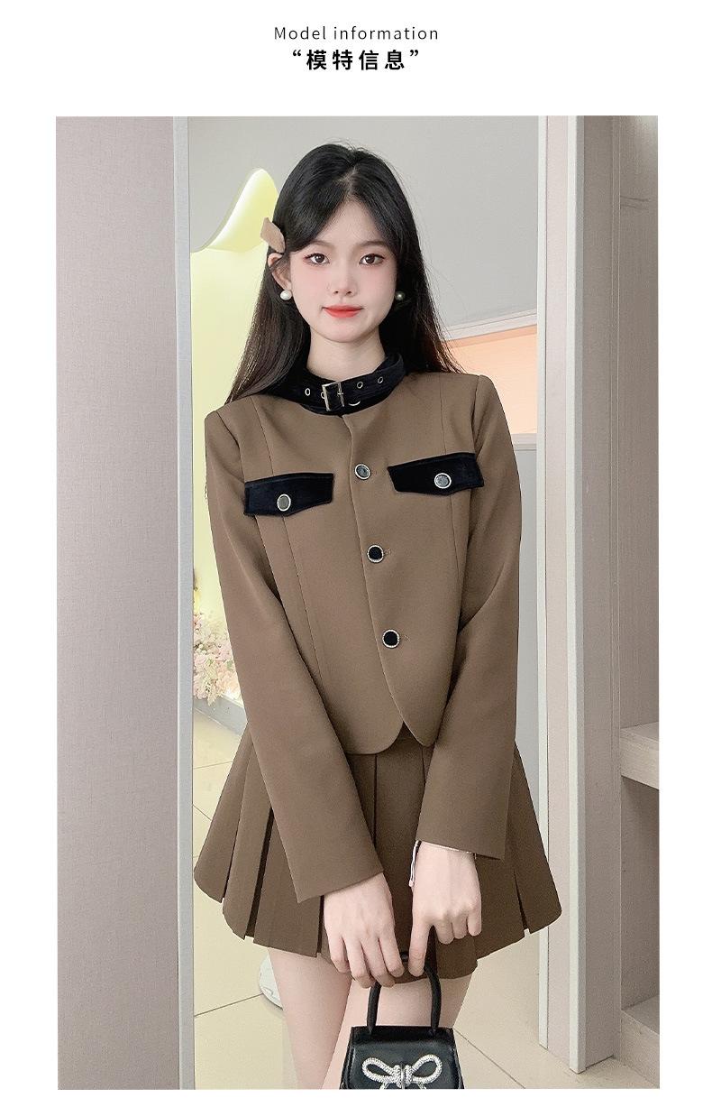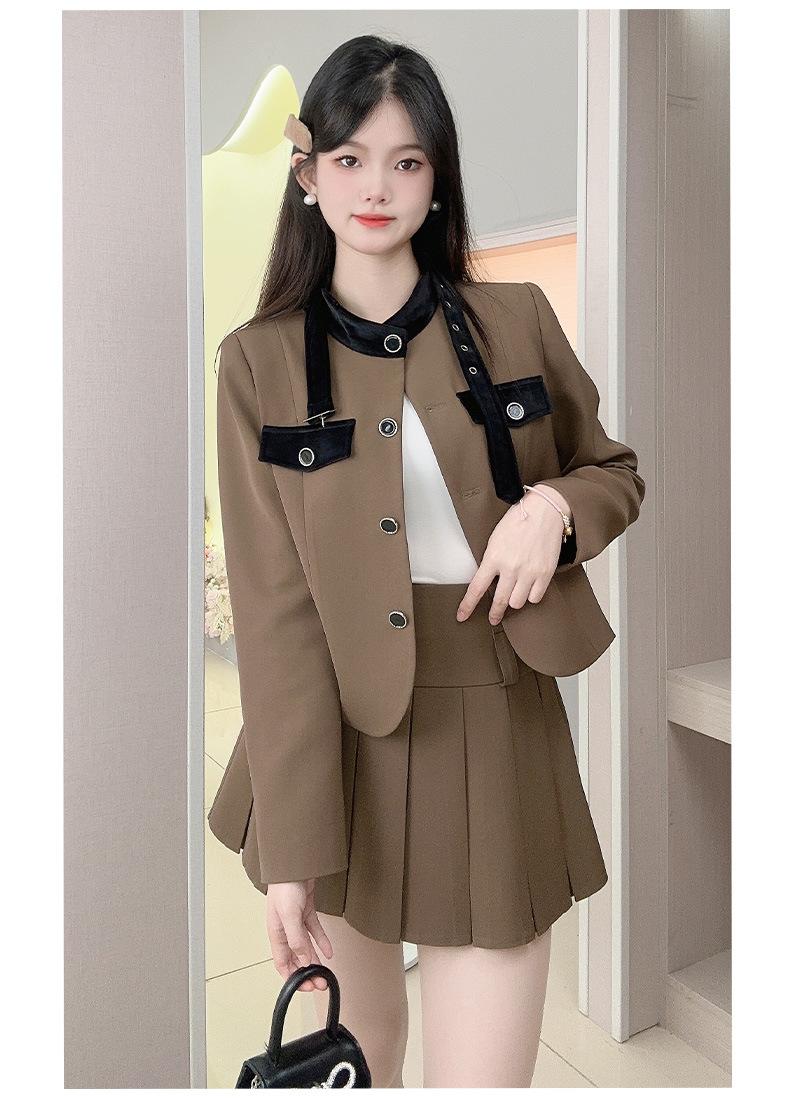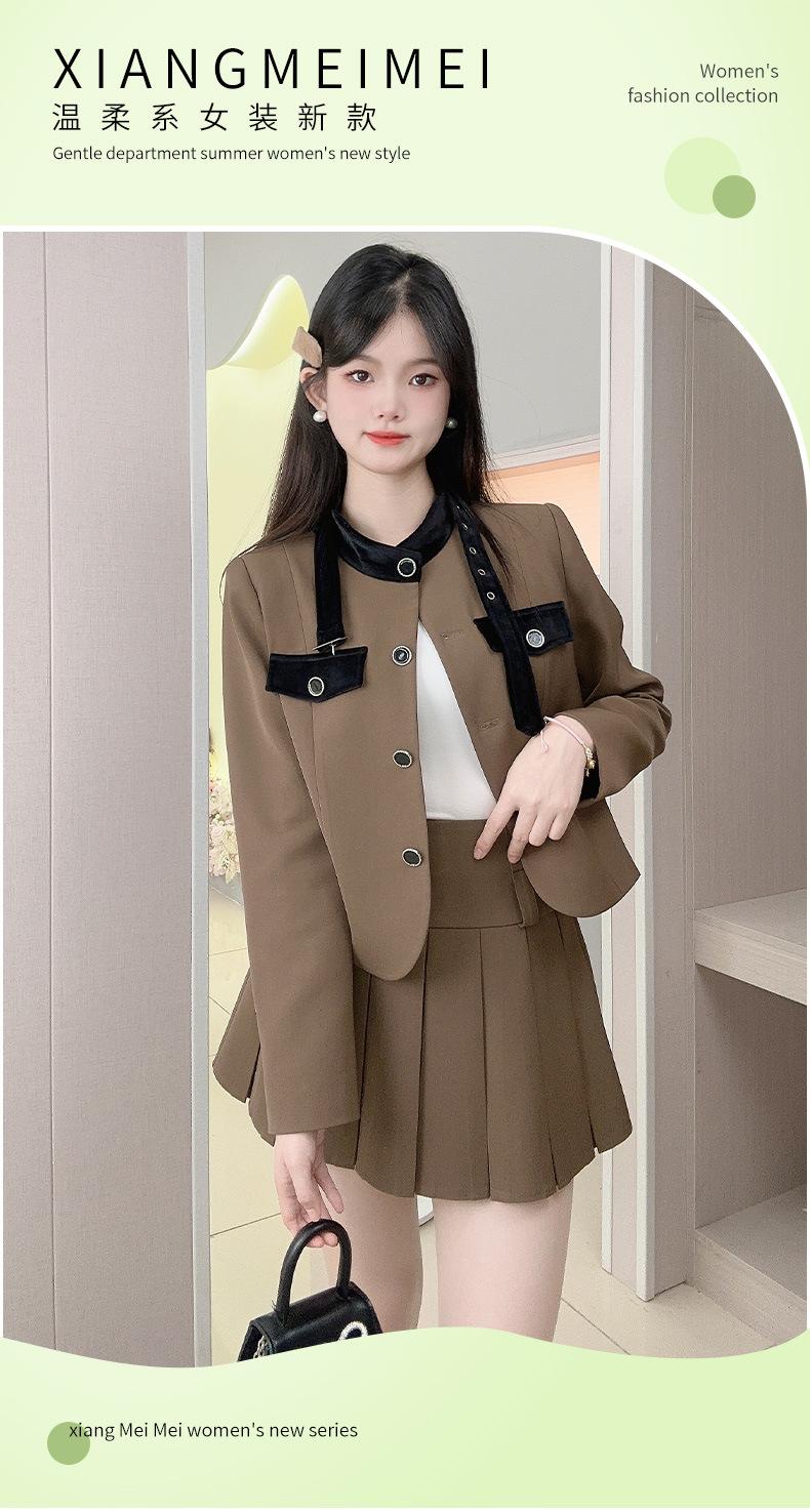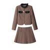 Xiangmei Design Blazer para Mujer 2024 Nuevo Otoño e Invierno Casual Color Café Traje de Falda Pequeño de Alta Gama