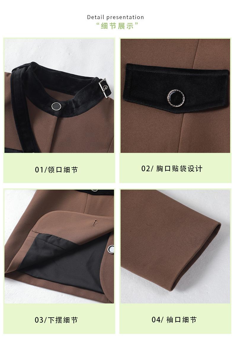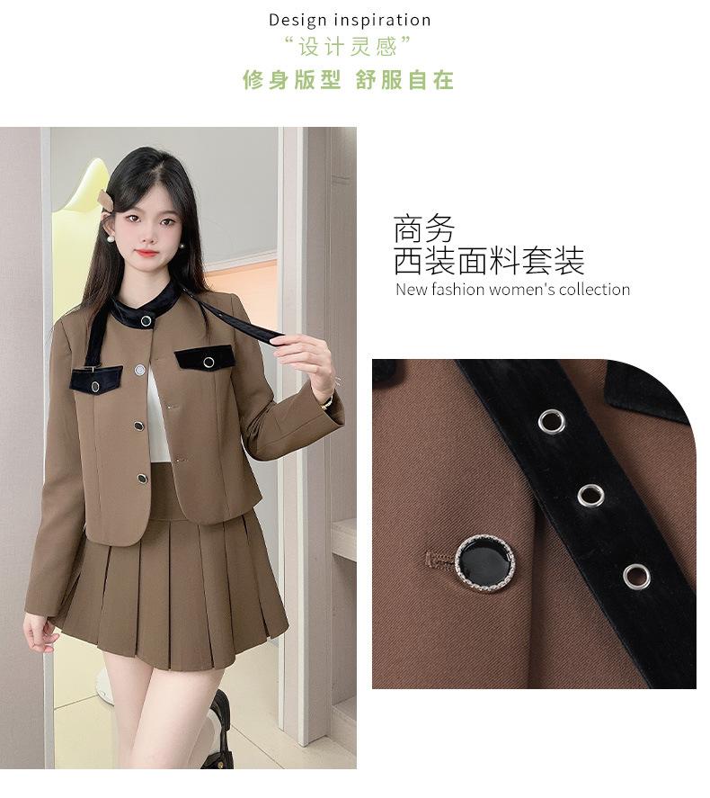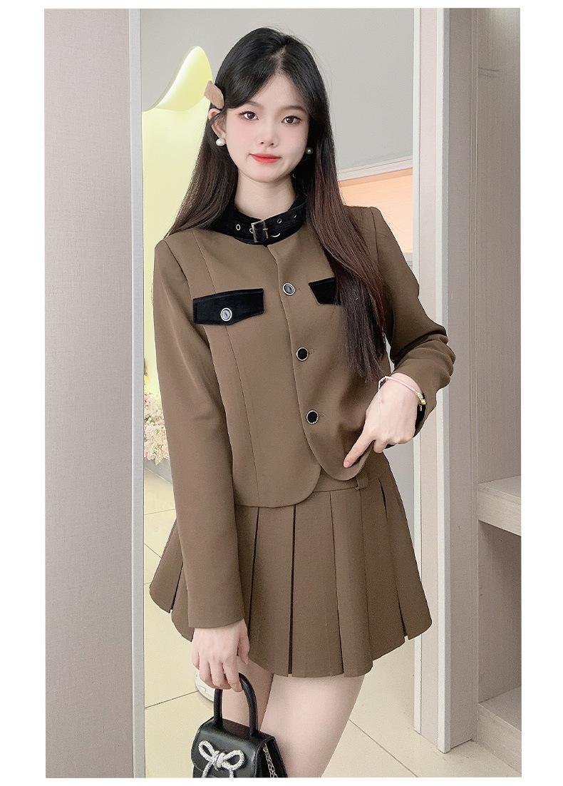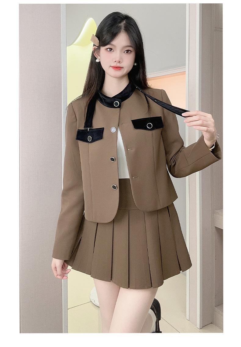 Xiangmei Design Blazer para Mujer 2024 Nuevo Otoño e Invierno Casual Color Café Traje de Falda Pequeño de Alta Gama