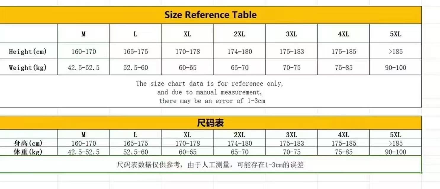 M, L, XL, 2XL, 3XL, 4XL, 5XL