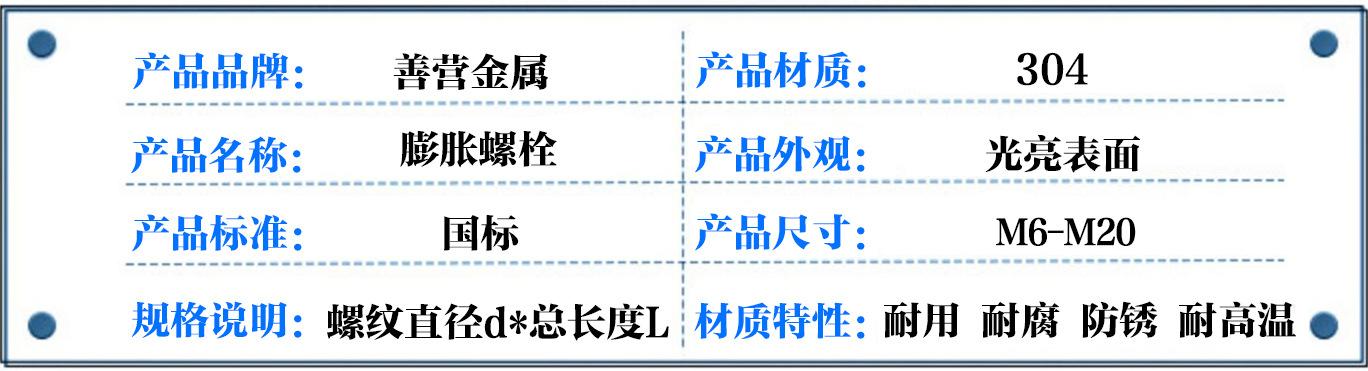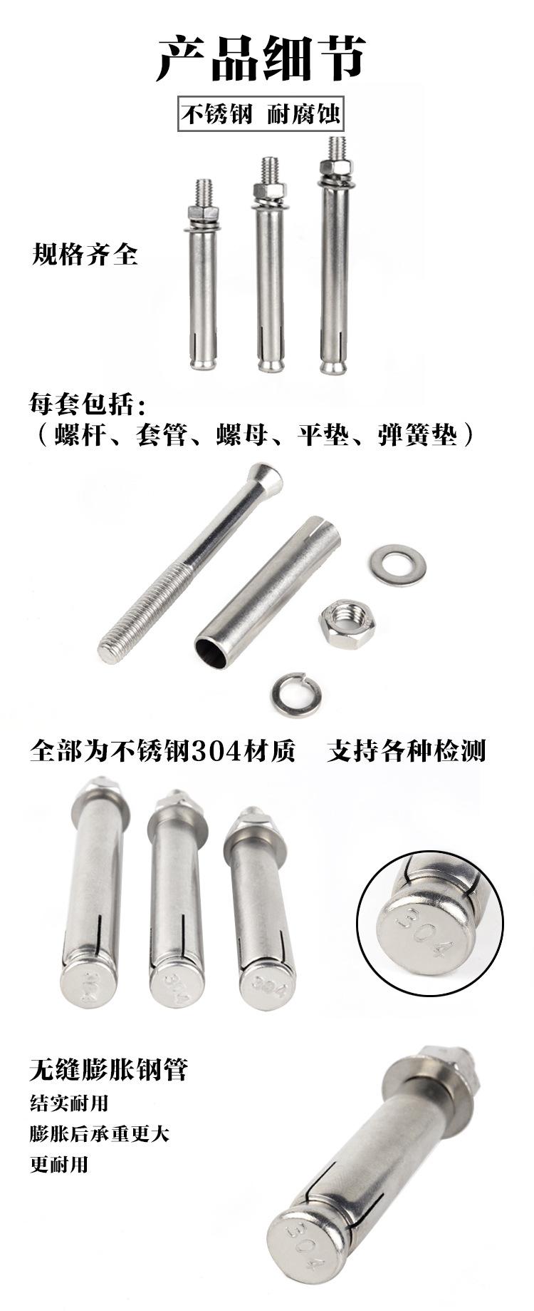 Tornillo de expansión de acero inoxidable 304/Perno de expansión externo/Tornillo de explosión