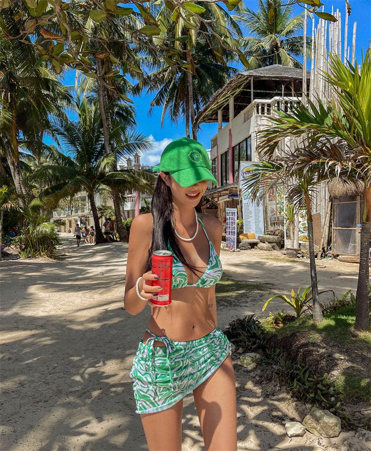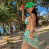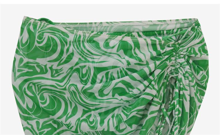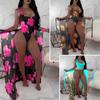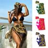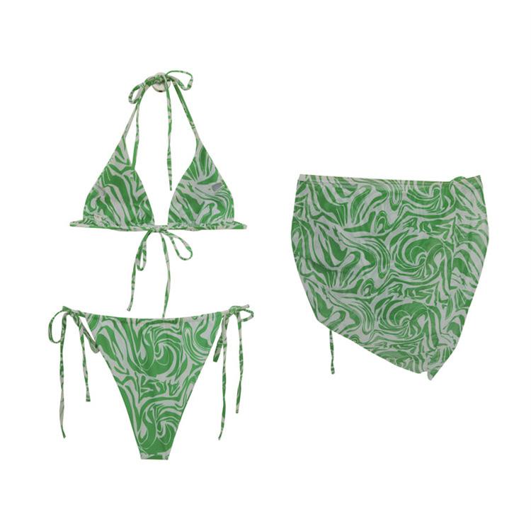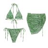 Traje de baño de tres piezas de malla estampada dividida para mujer nuevo europeo y americano 2023, traje de baño sexy para chica caliente para playa y aguas termales