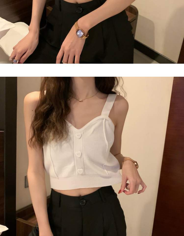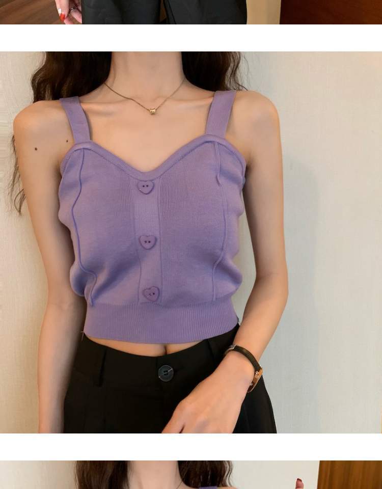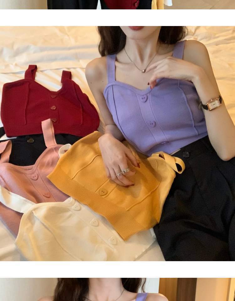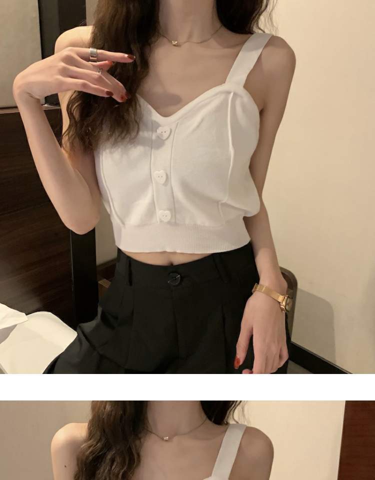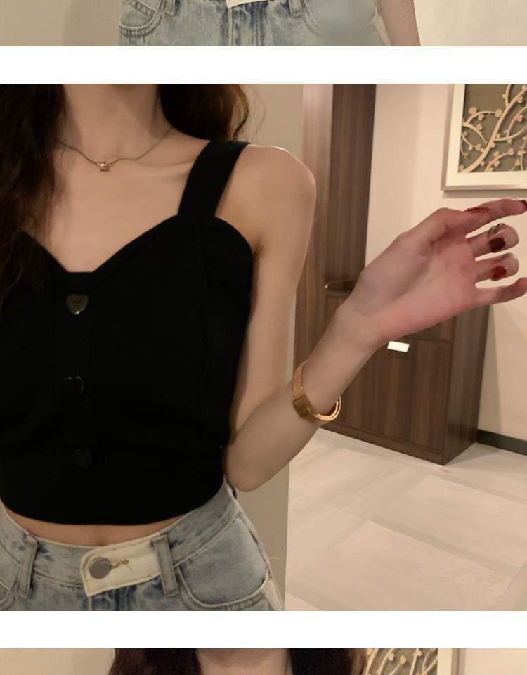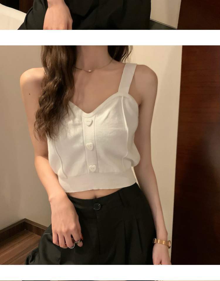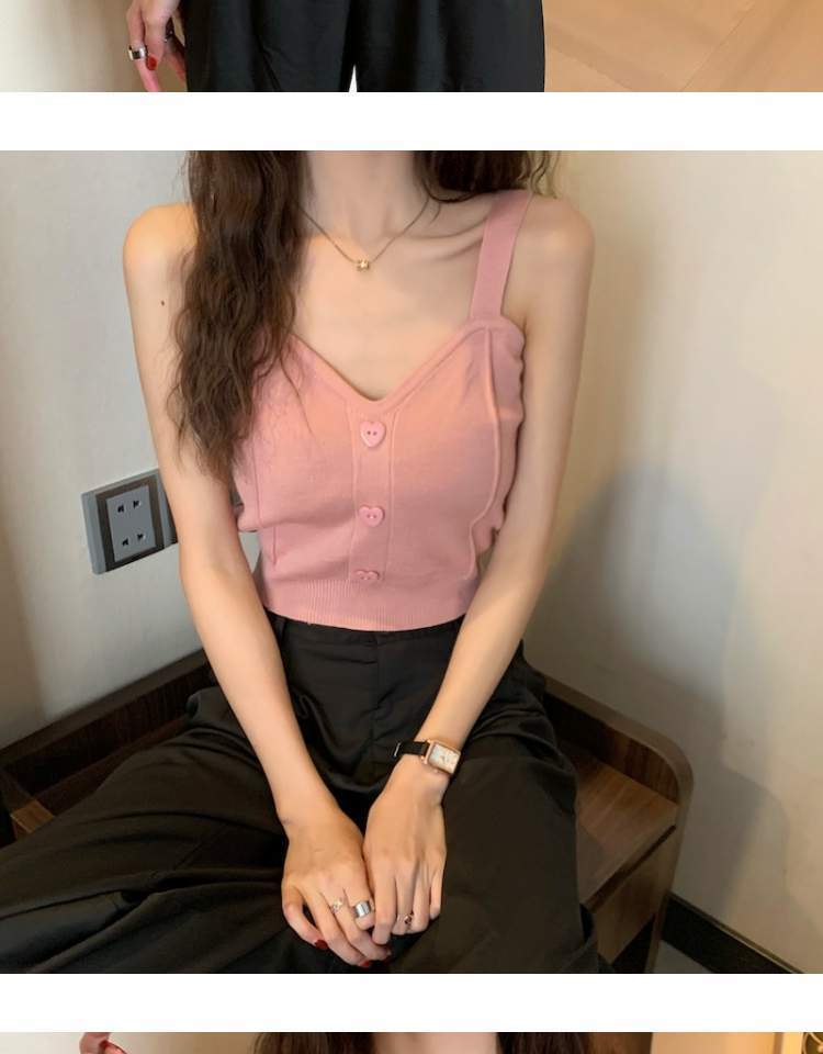 Estilo Francés Pequeño Botón de Amor Tejido Fondo Pequeño Camisola Ropa Interior para Mujer Verano Sentido del Diseño Nicho Ropa Exterior Top