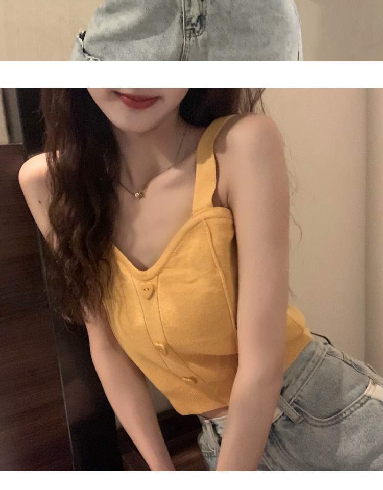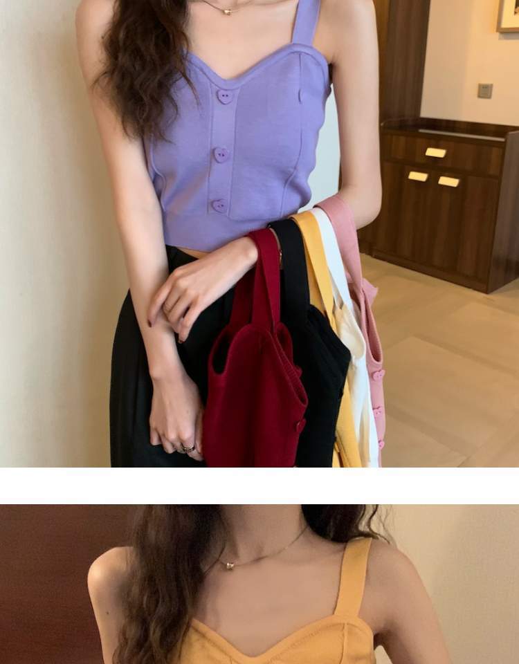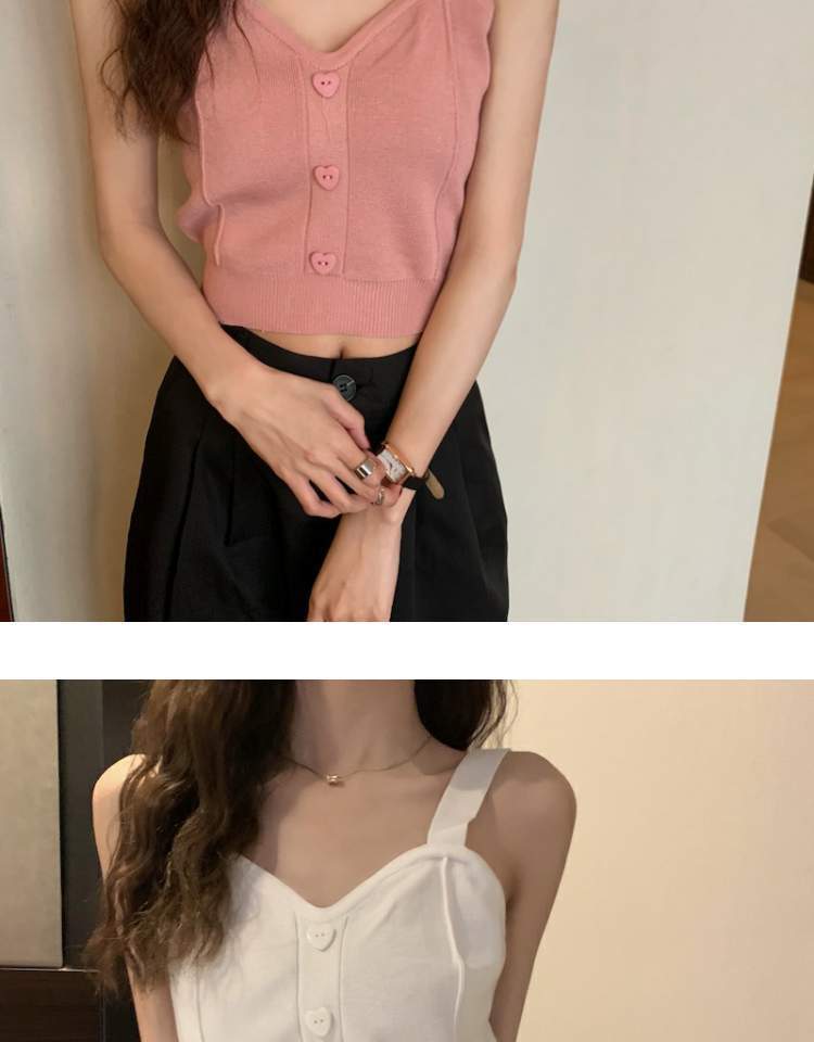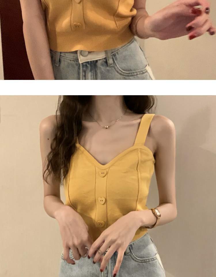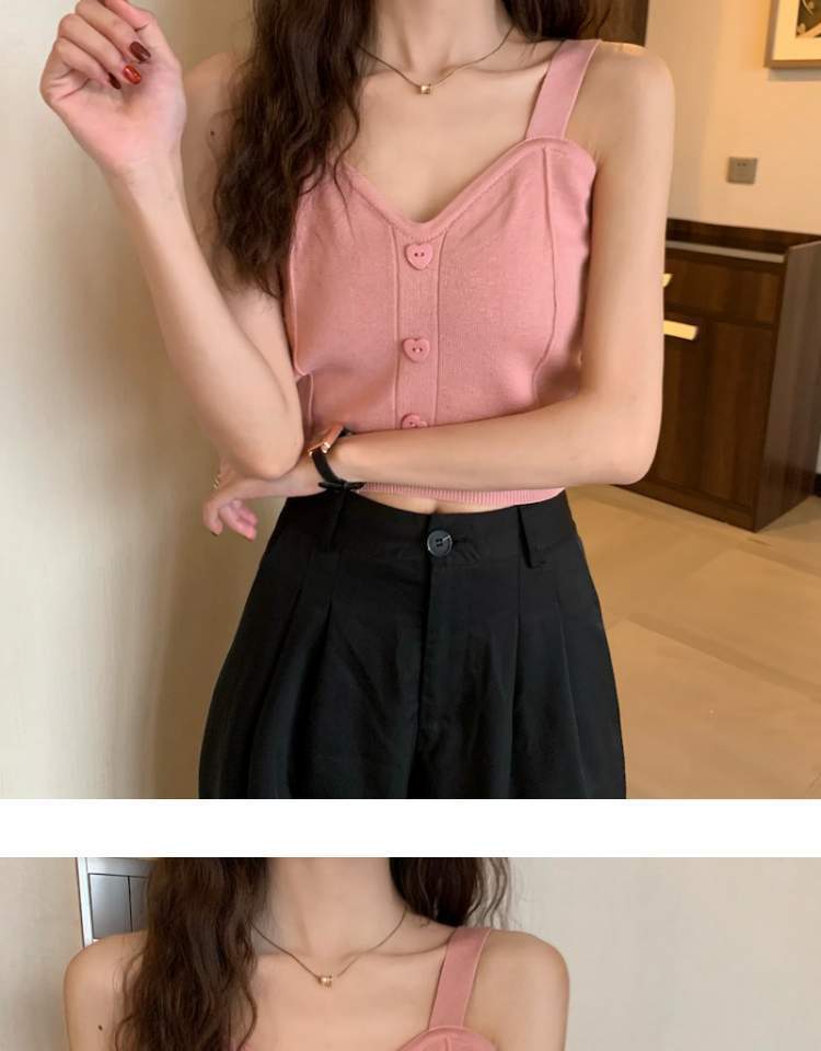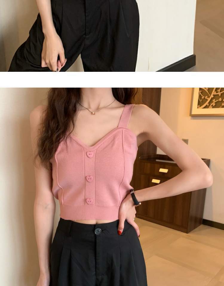 Estilo Francés Pequeño Botón de Amor Tejido Fondo Pequeño Camisola Ropa Interior para Mujer Verano Sentido del Diseño Nicho Ropa Exterior Top