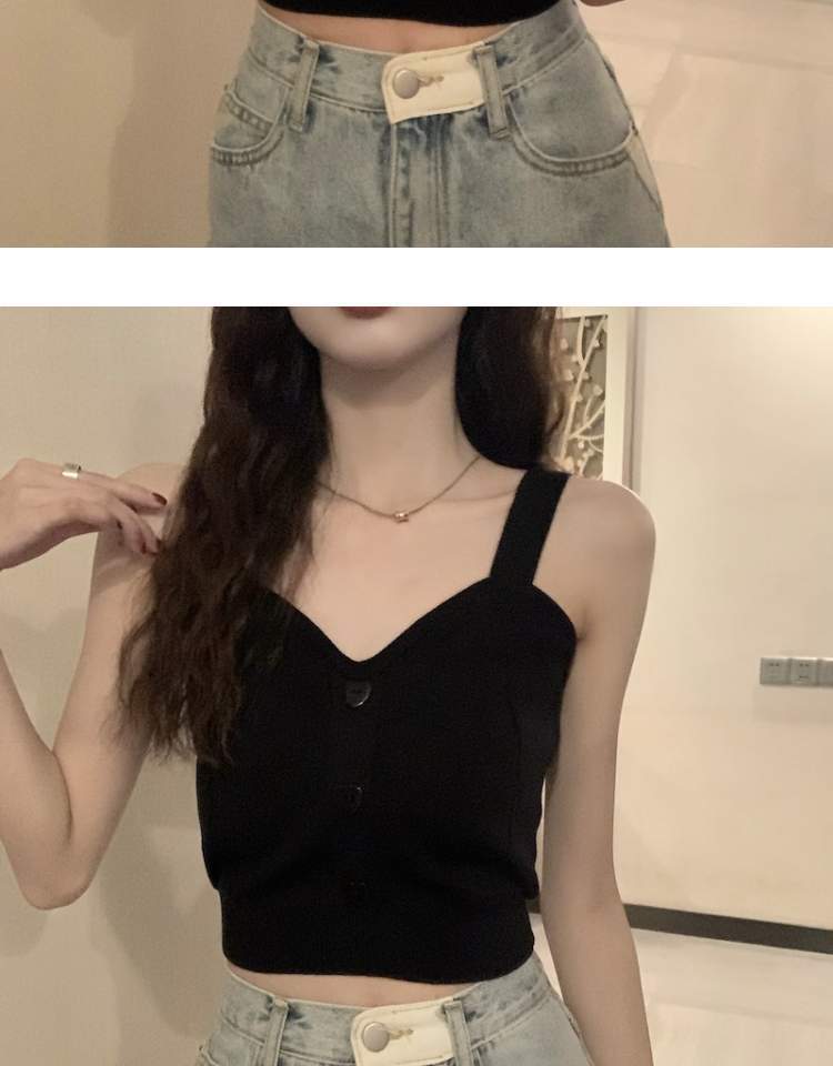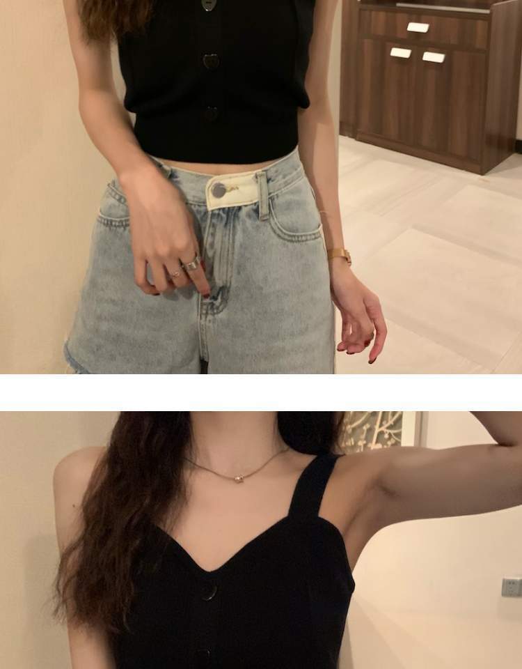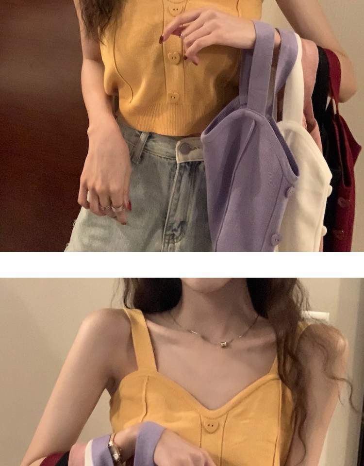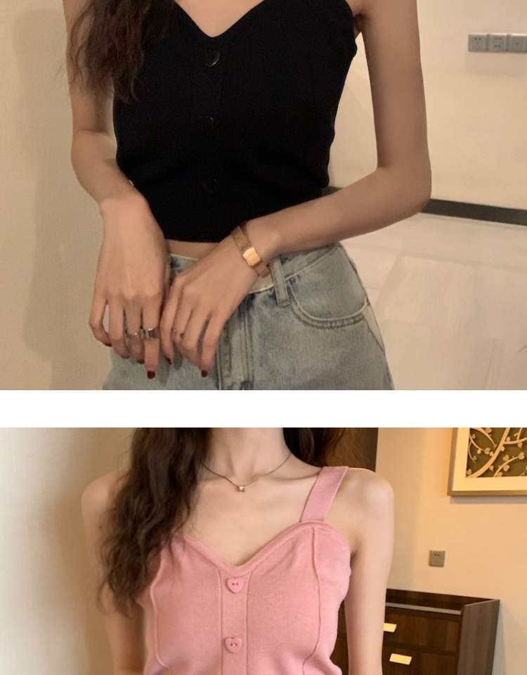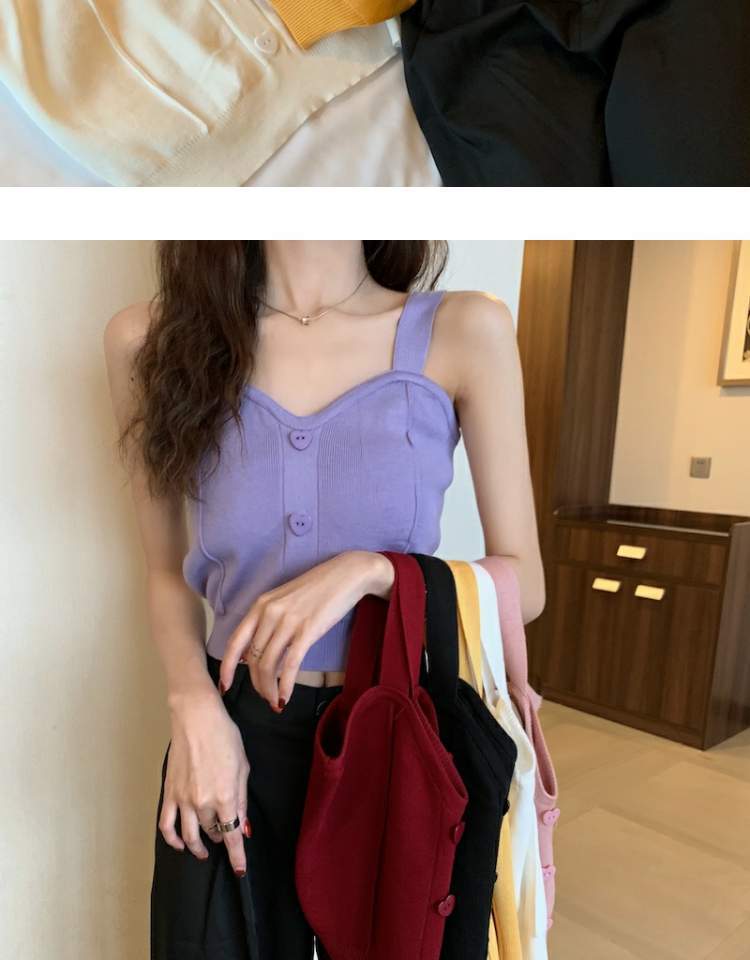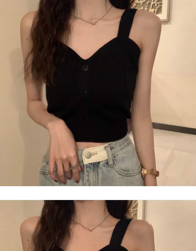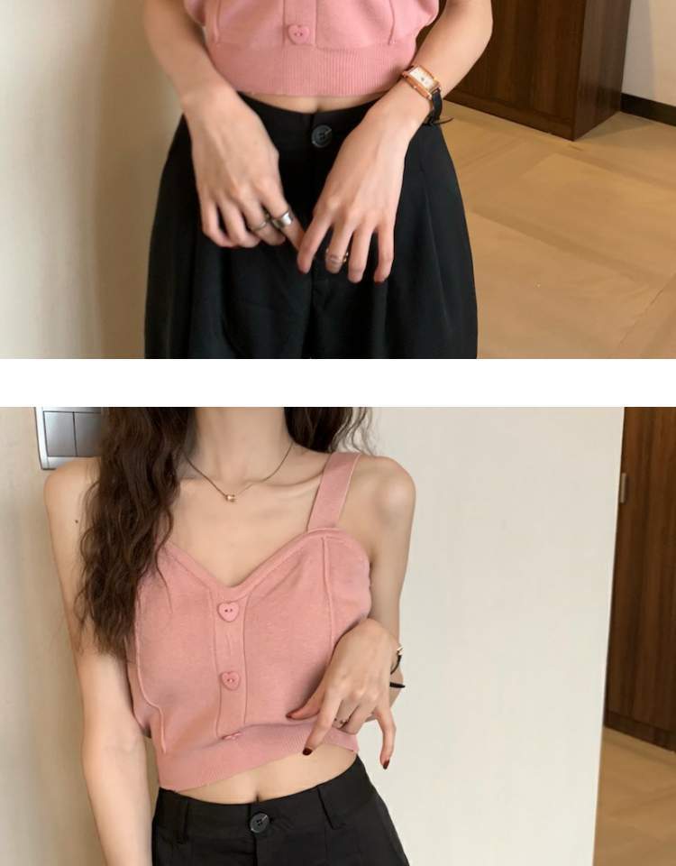 Estilo Francés Pequeño Botón de Amor Tejido Fondo Pequeño Camisola Ropa Interior para Mujer Verano Sentido del Diseño Nicho Ropa Exterior Top