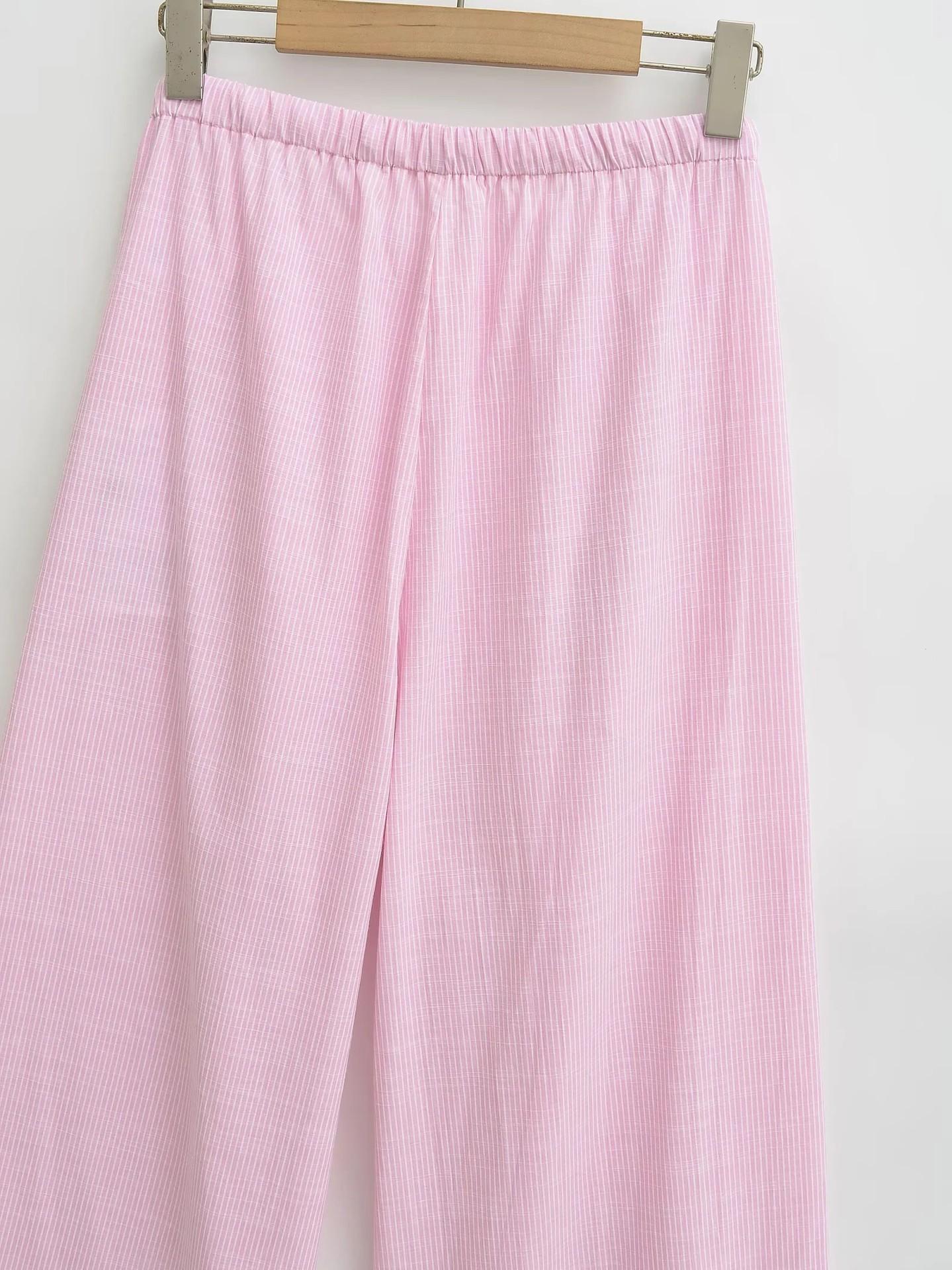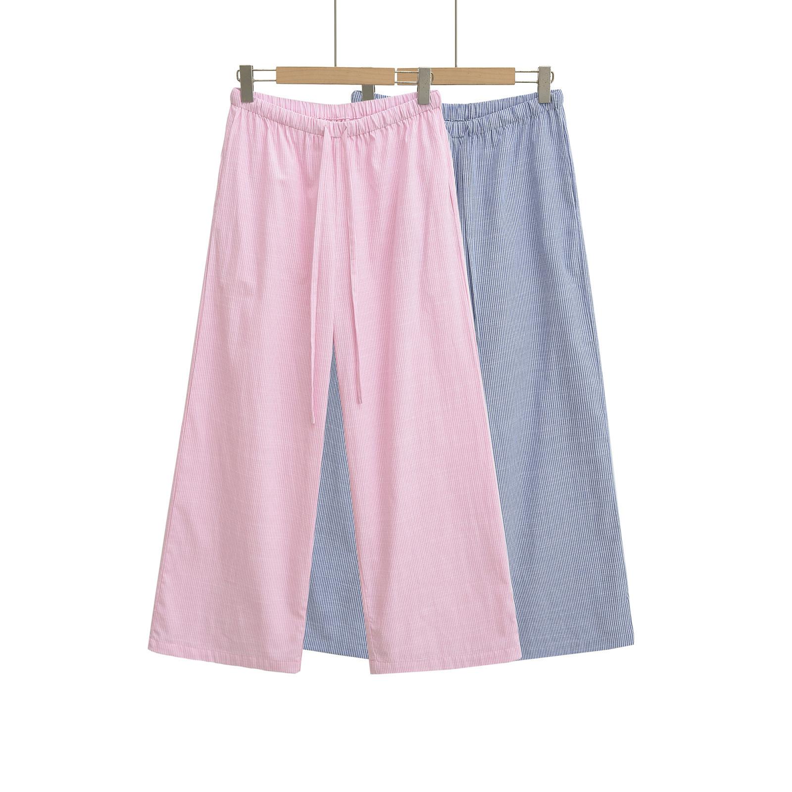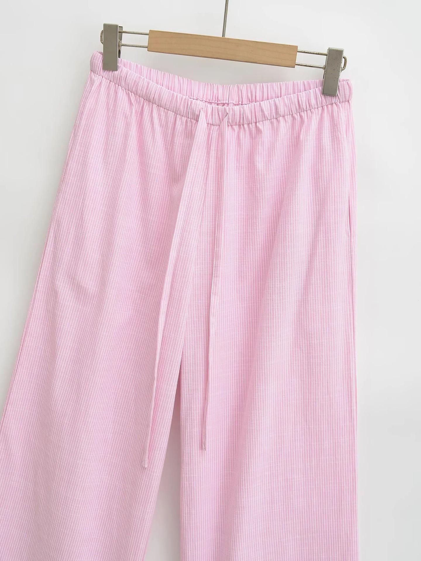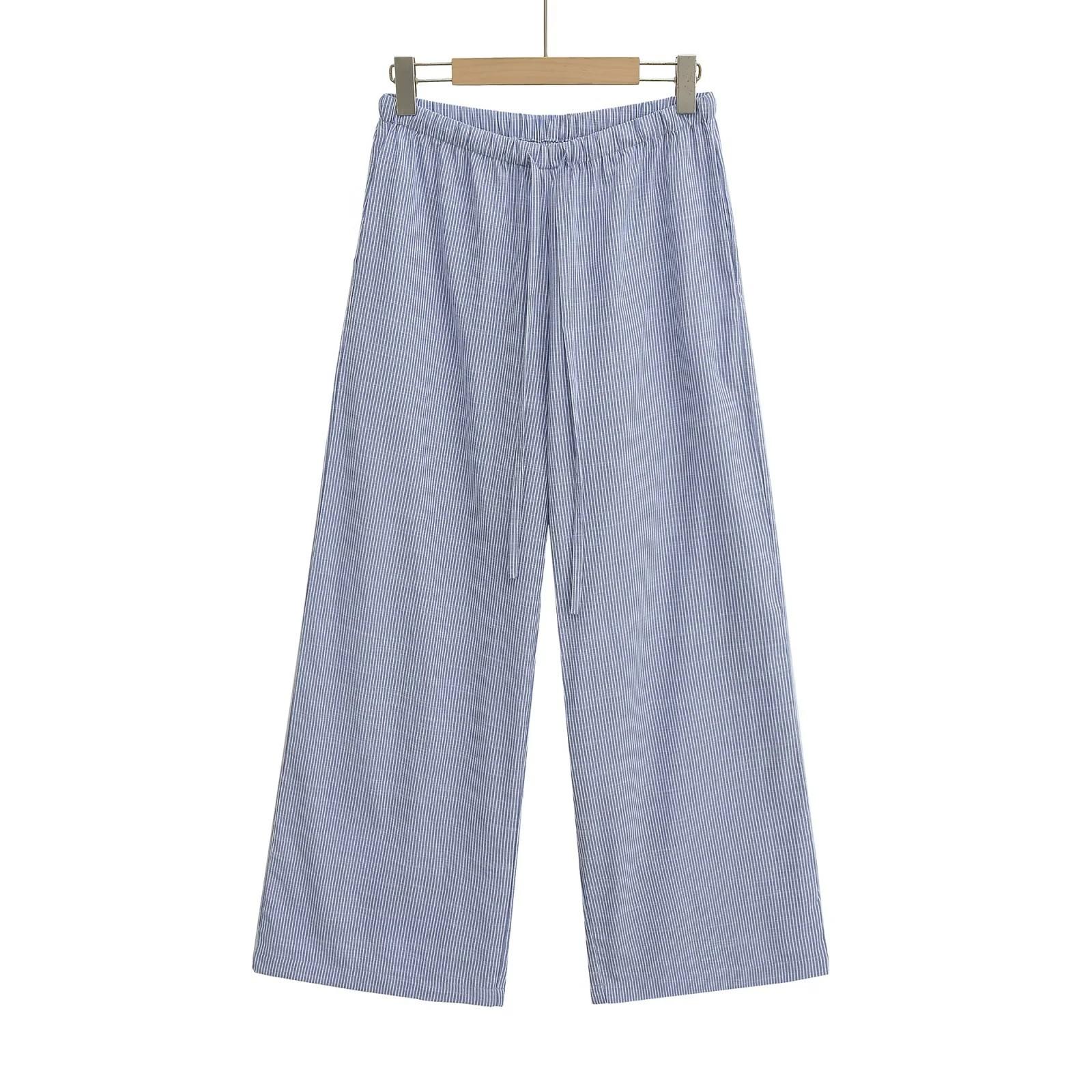 Pantalones de Casa Rayados de Verano 2025 Sueltos de Pierna Ancha Estilo Lazy Rectos Adelgazantes Drapeados Casuales de Pierna Ancha para Mujer