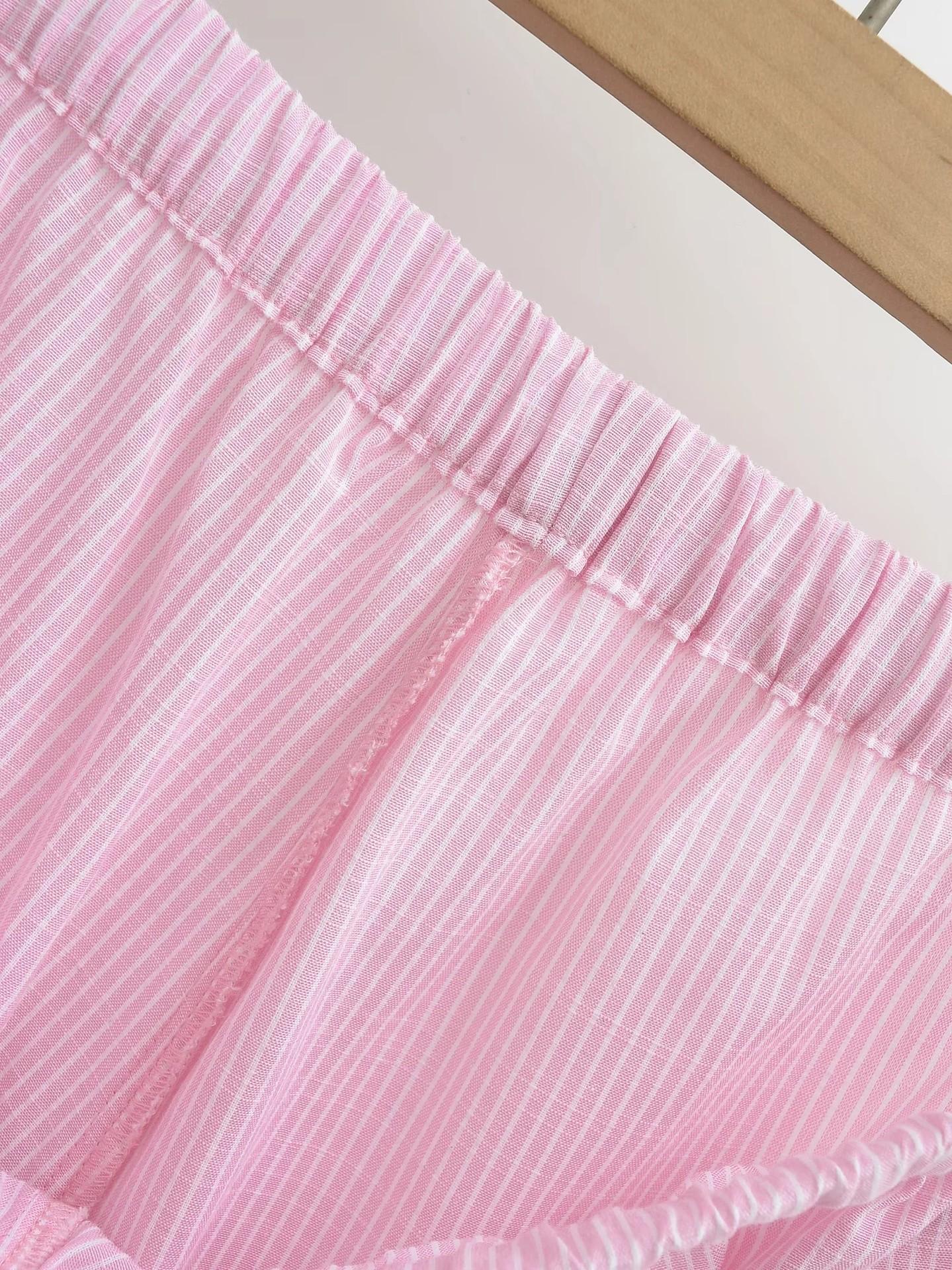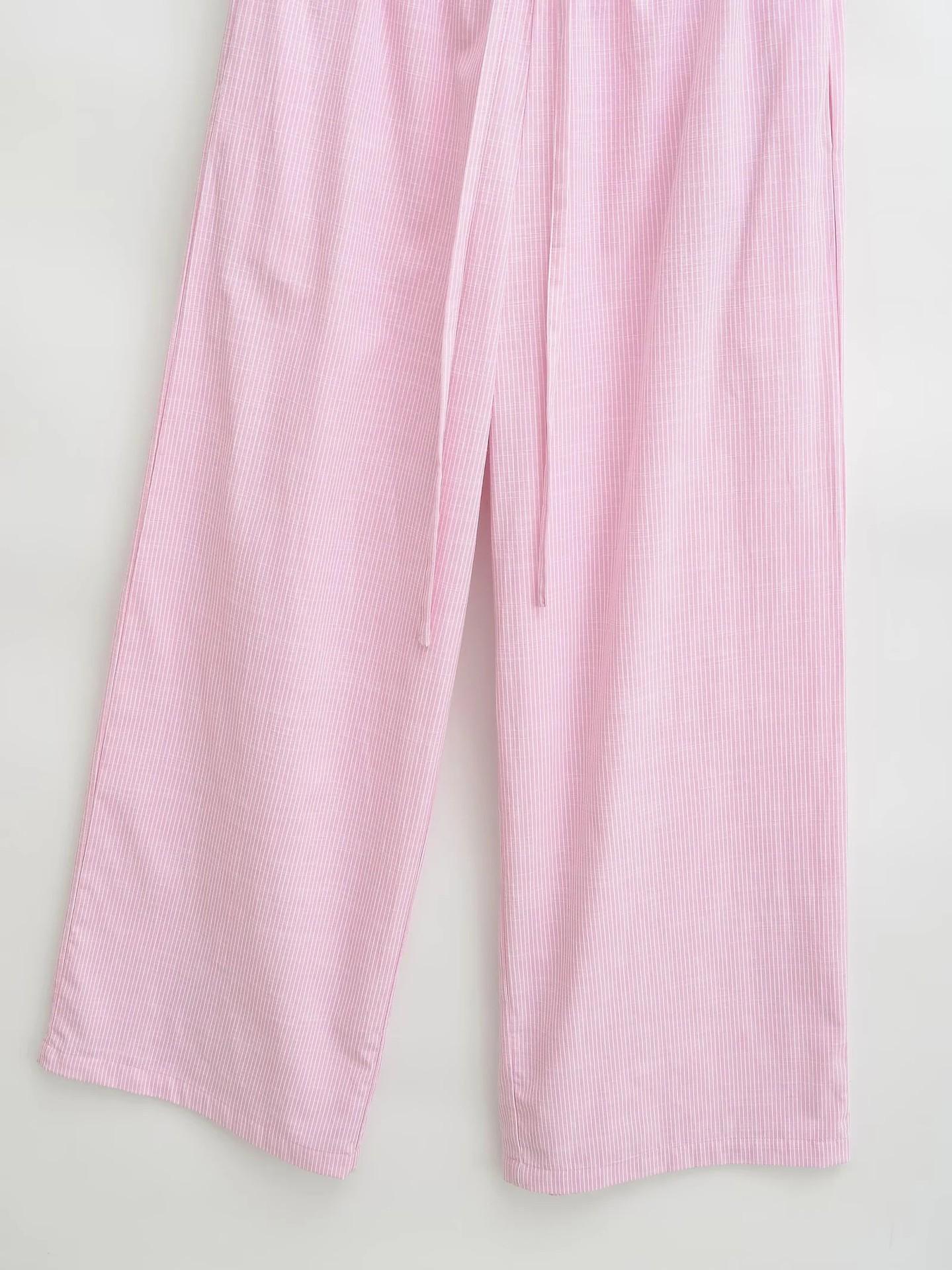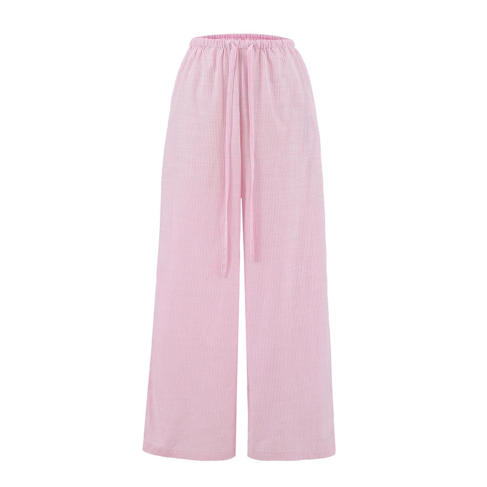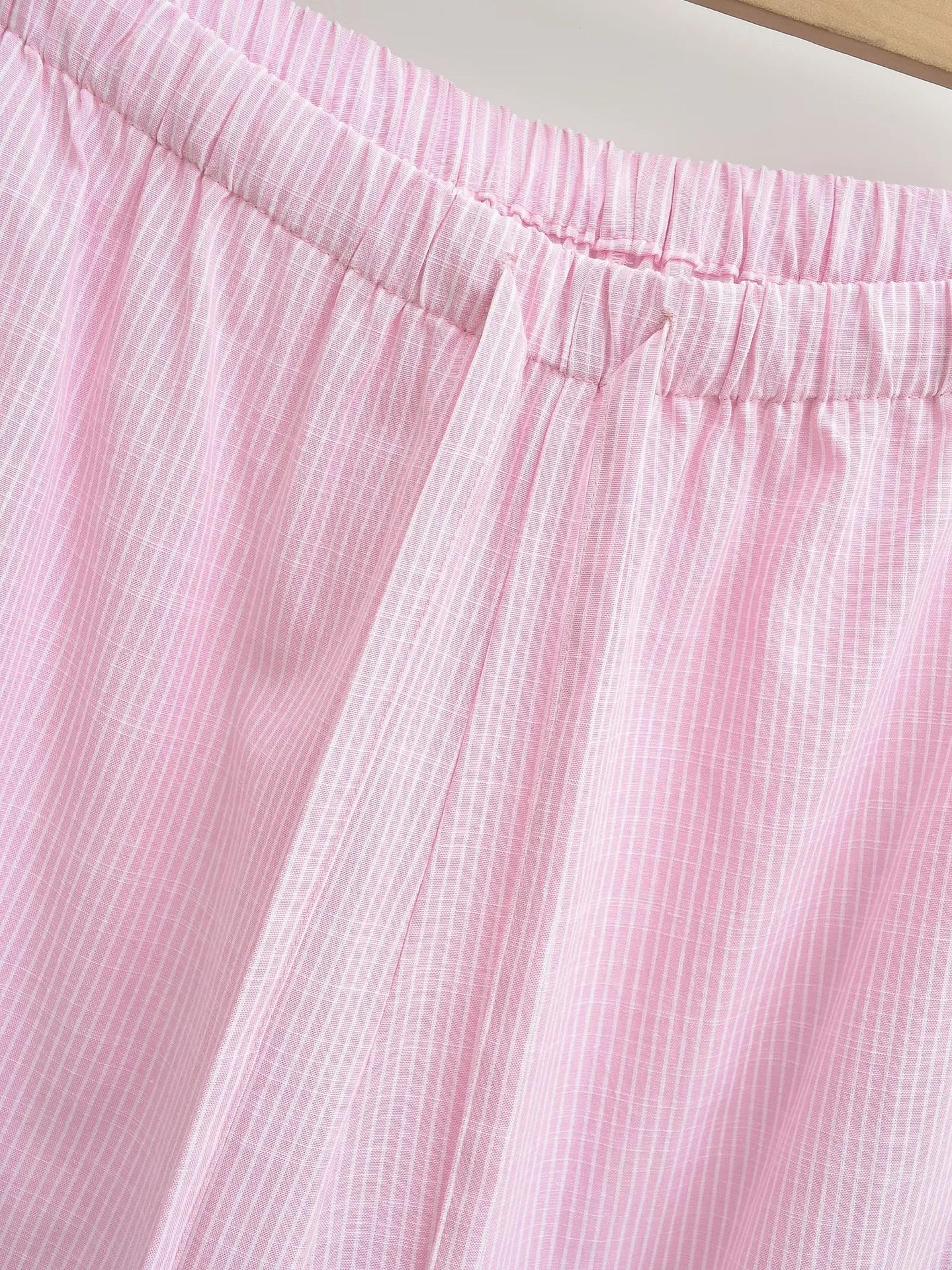 Pantalones de Casa Rayados de Verano 2025 Sueltos de Pierna Ancha Estilo Lazy Rectos Adelgazantes Drapeados Casuales de Pierna Ancha para Mujer