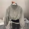 Ropa de Protección Solar de Diseño Nicho con Cuello Alto para Mujer Verano Fina con Cordón Cremallera Cárdigan Manga Larga Chaqueta Deportiva Corta