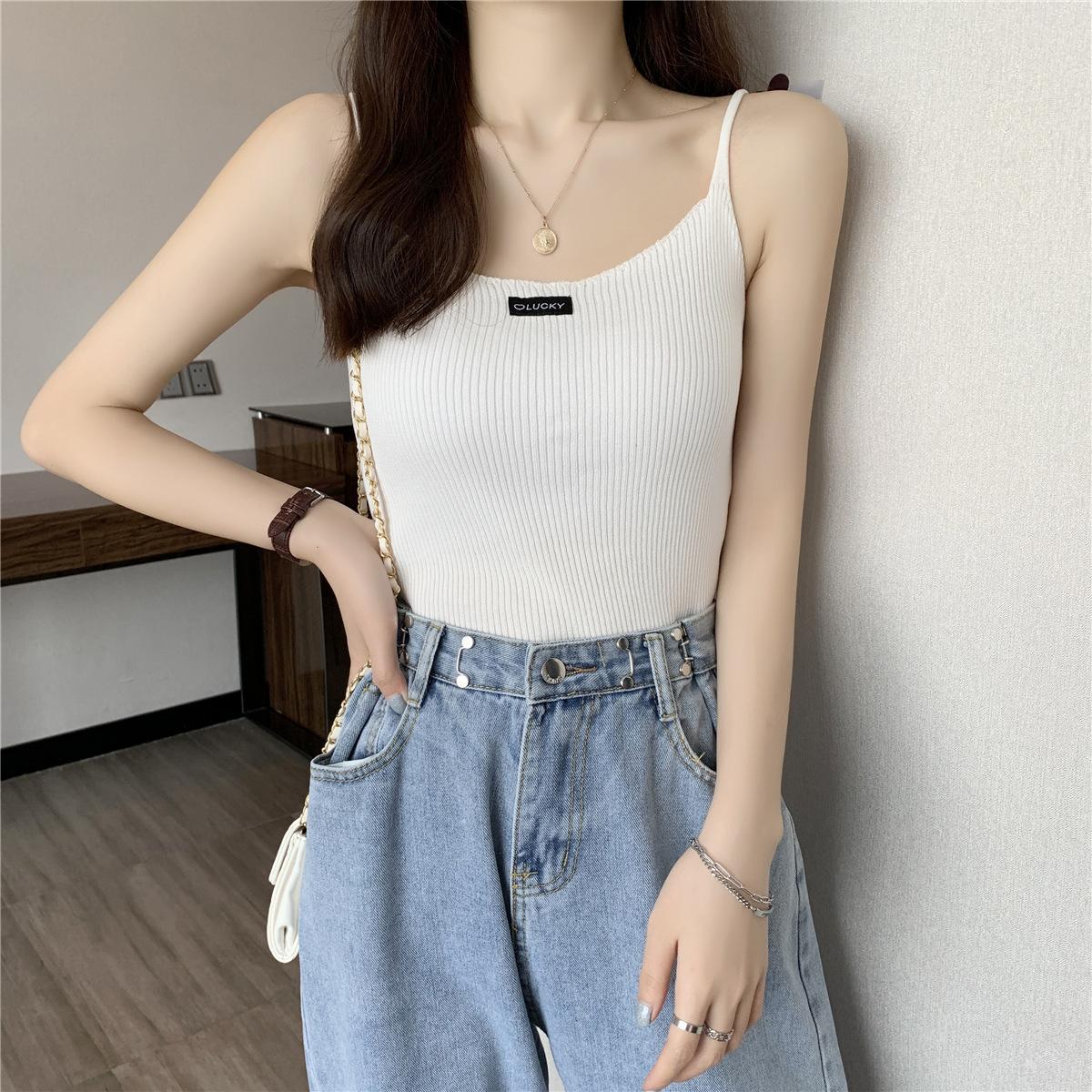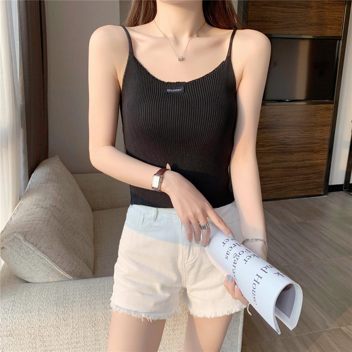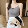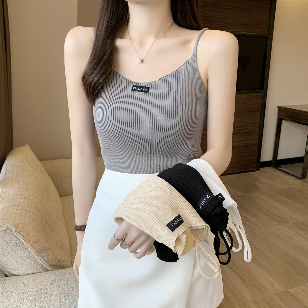 Otoño e Invierno 2023 Nueva Camiseta Base Corta con Camisola Pequeña Tejida Combinable Ajustada Color Sólido Top para Mujer