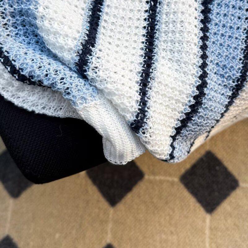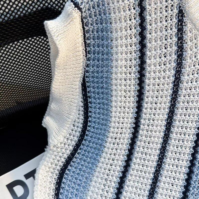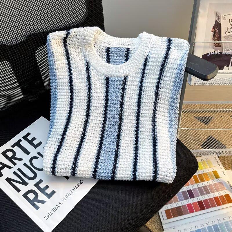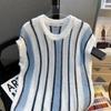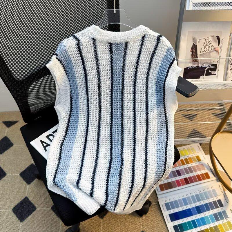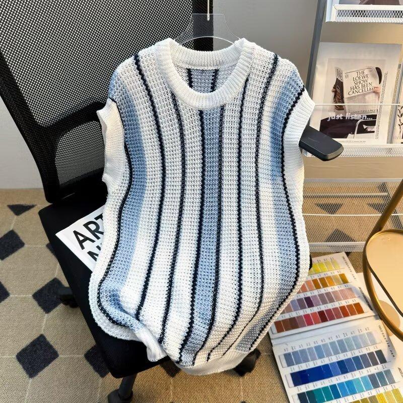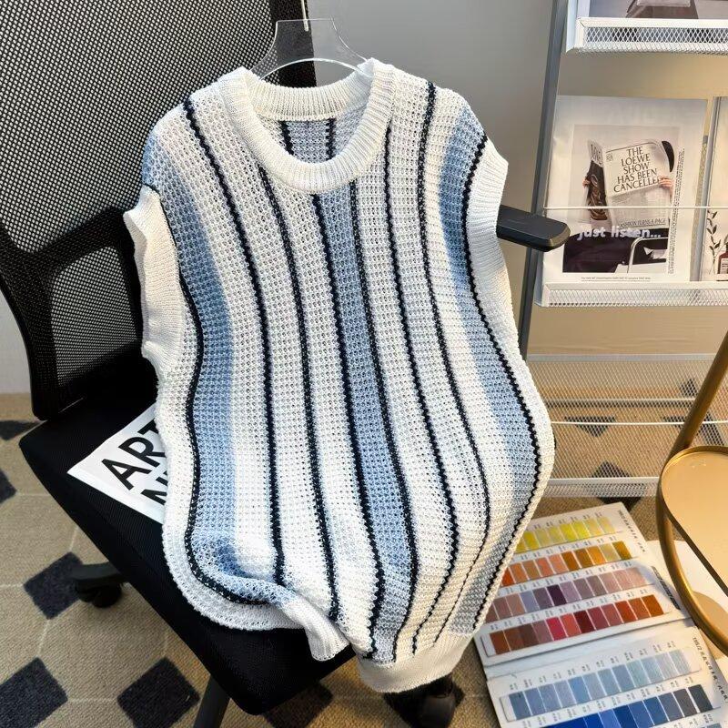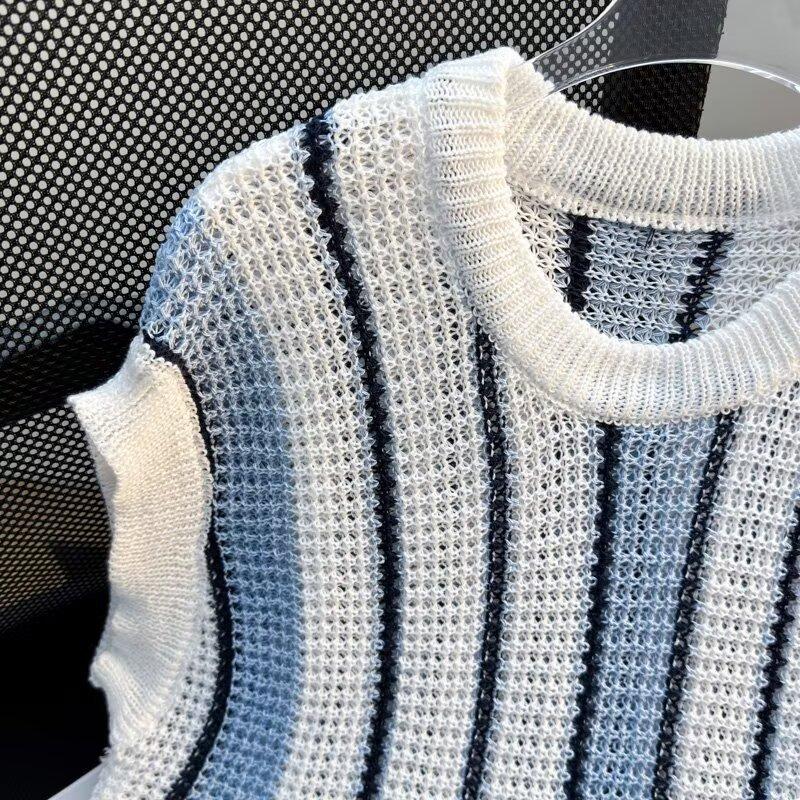 Chaleco Holgado de Punto a Rayas Estilo Americano Verano Sin Mangas Original Simple Casual Cuello Redondo Calado Chaleco