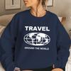 Suéter Otoño e Invierno Color Sólido Peso Pesado Manga Larga Sudadera Primavera y Otoño Cuello Redondo Hombro Descubierto Marca de Moda Algodón Puro Lana Suelto Estilo Americano