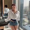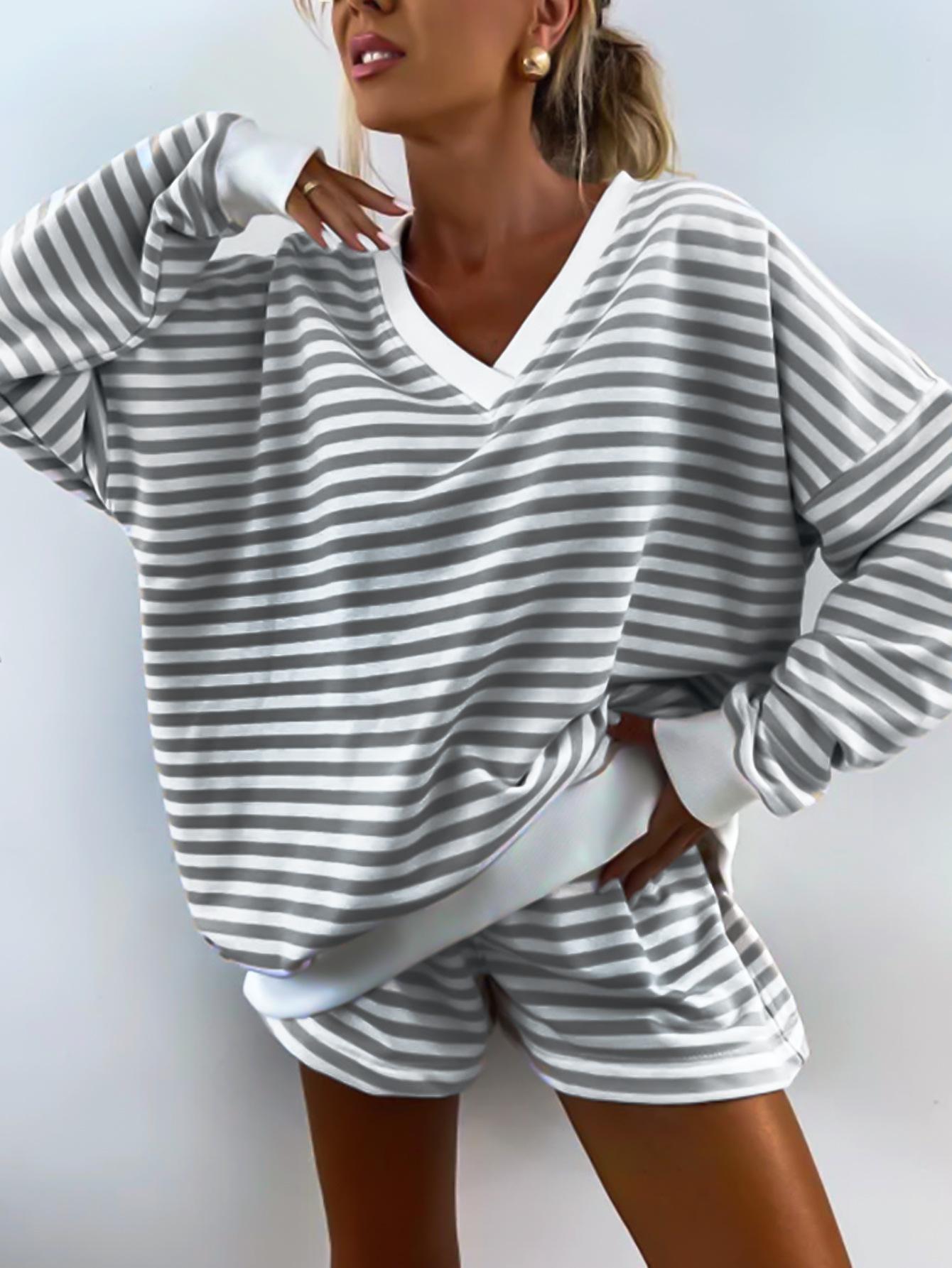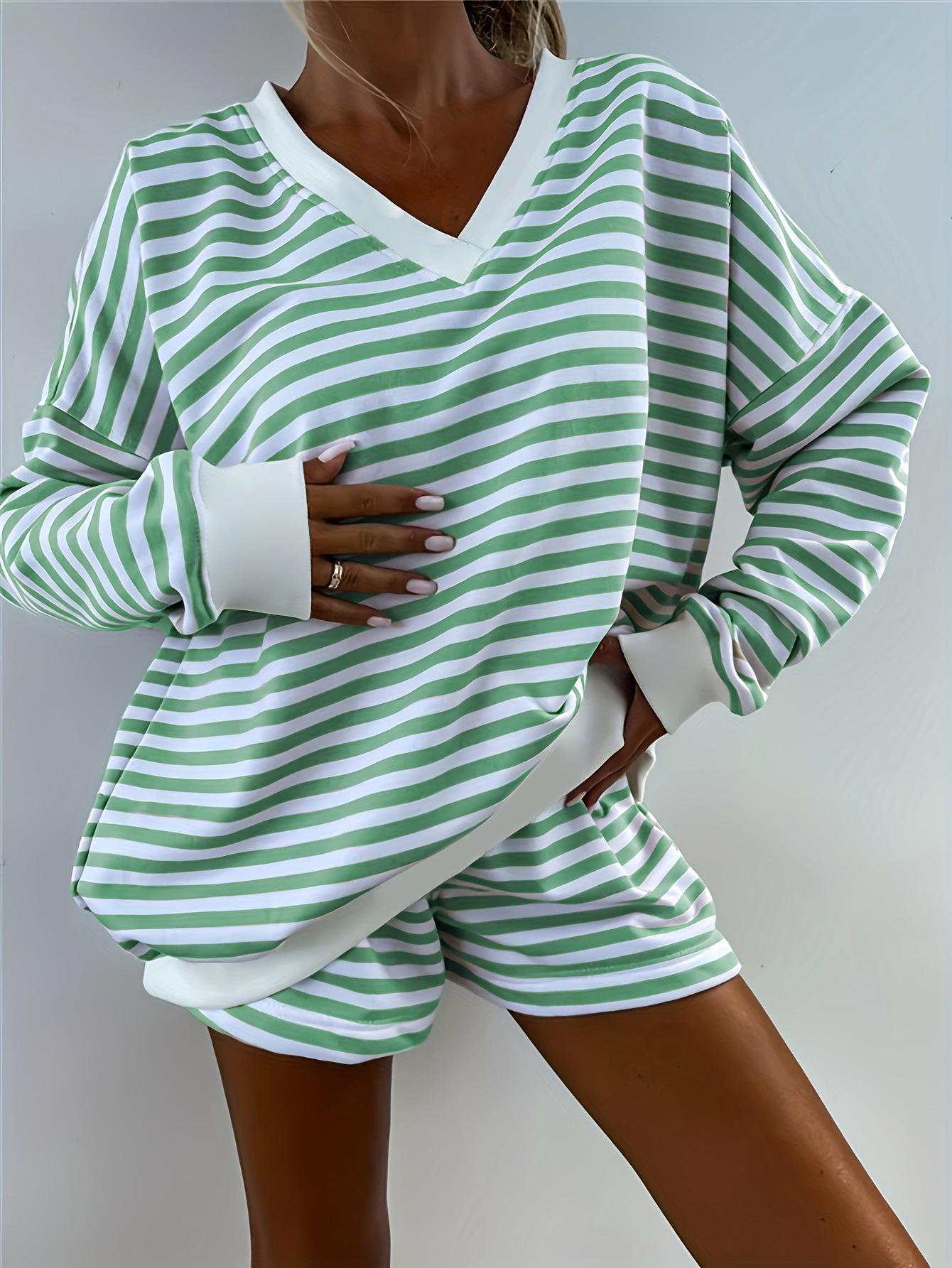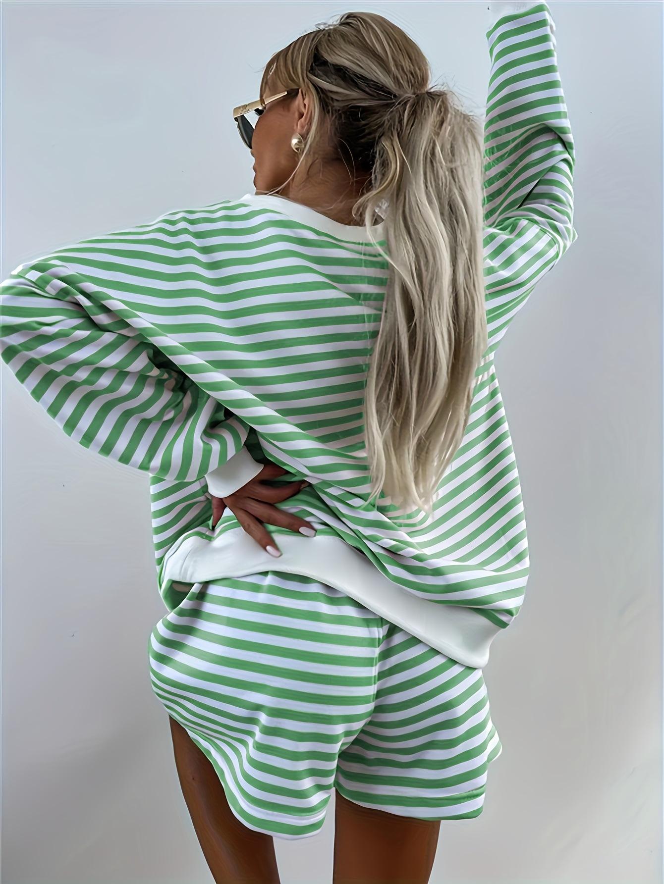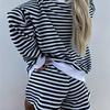 Sudadera Fina para Mujer Primavera y Otoño 2025 Nueva Manga Larga Shorts Estilo Coreano Estudiante Holgada Versátil Rayada Chaqueta Top Trendy