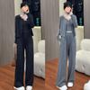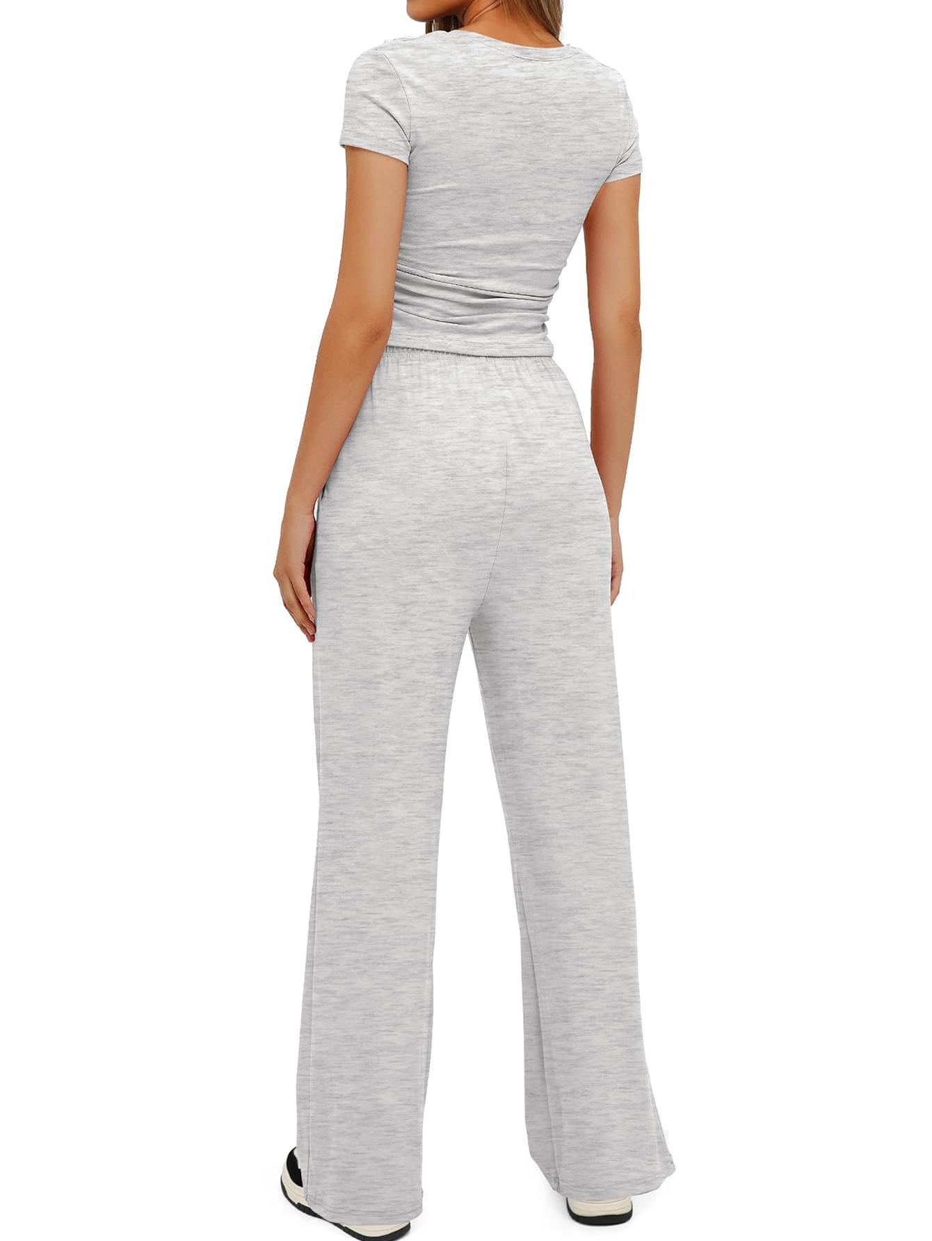 Traje casual de color sólido popular transfronterizo de tres colores, top plisado, pantalones de pierna ancha, deportivo