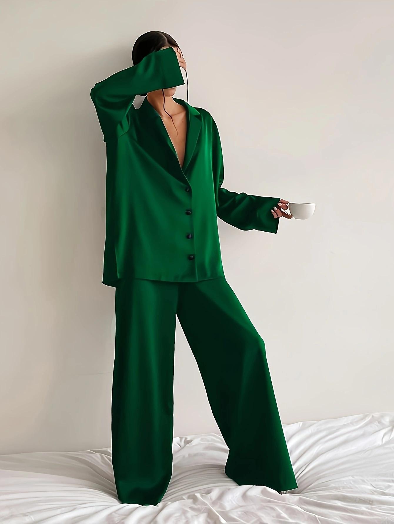Conjunto de dos piezas cómodo y transpirable de Amazon 2025 Primavera Nuevo Traje de moda francés de manga larga Ropa de hogar para mujer