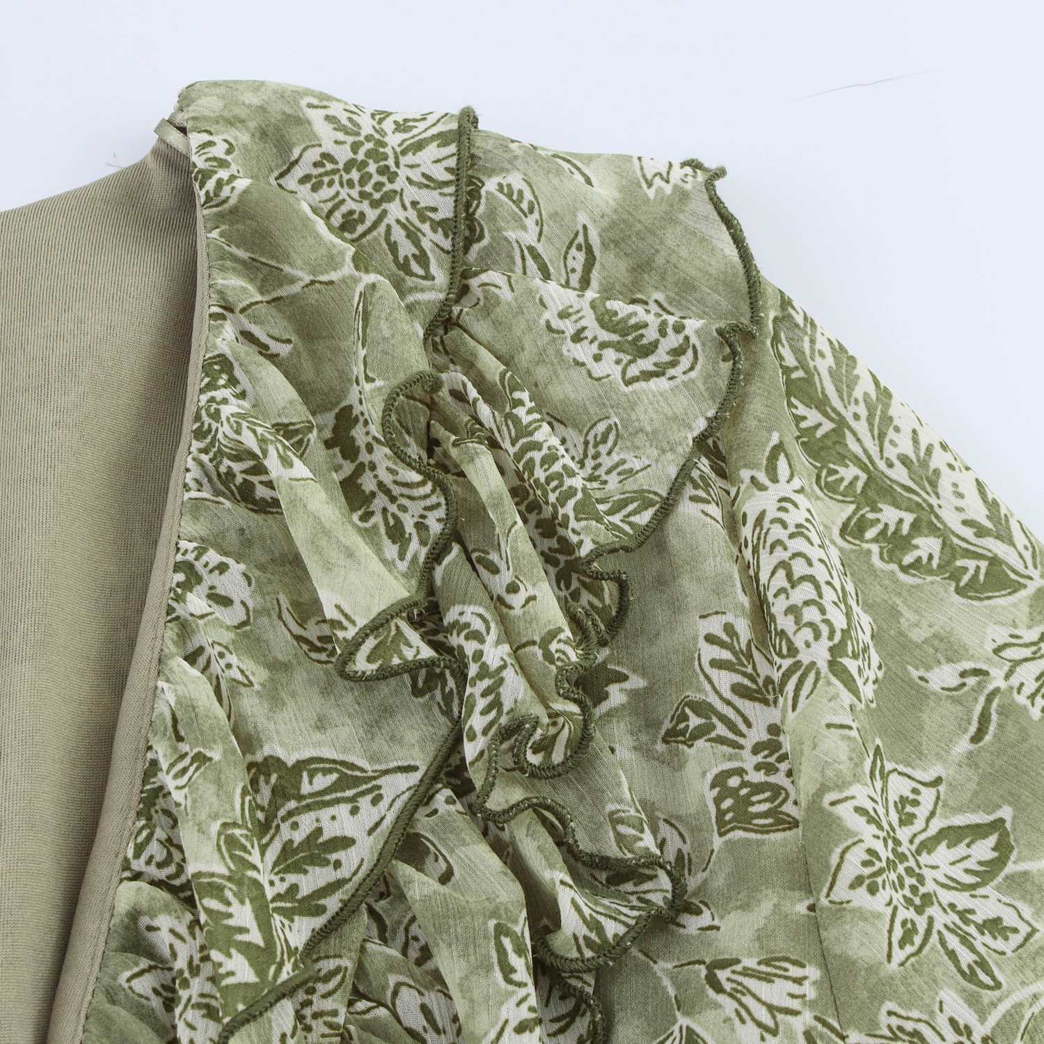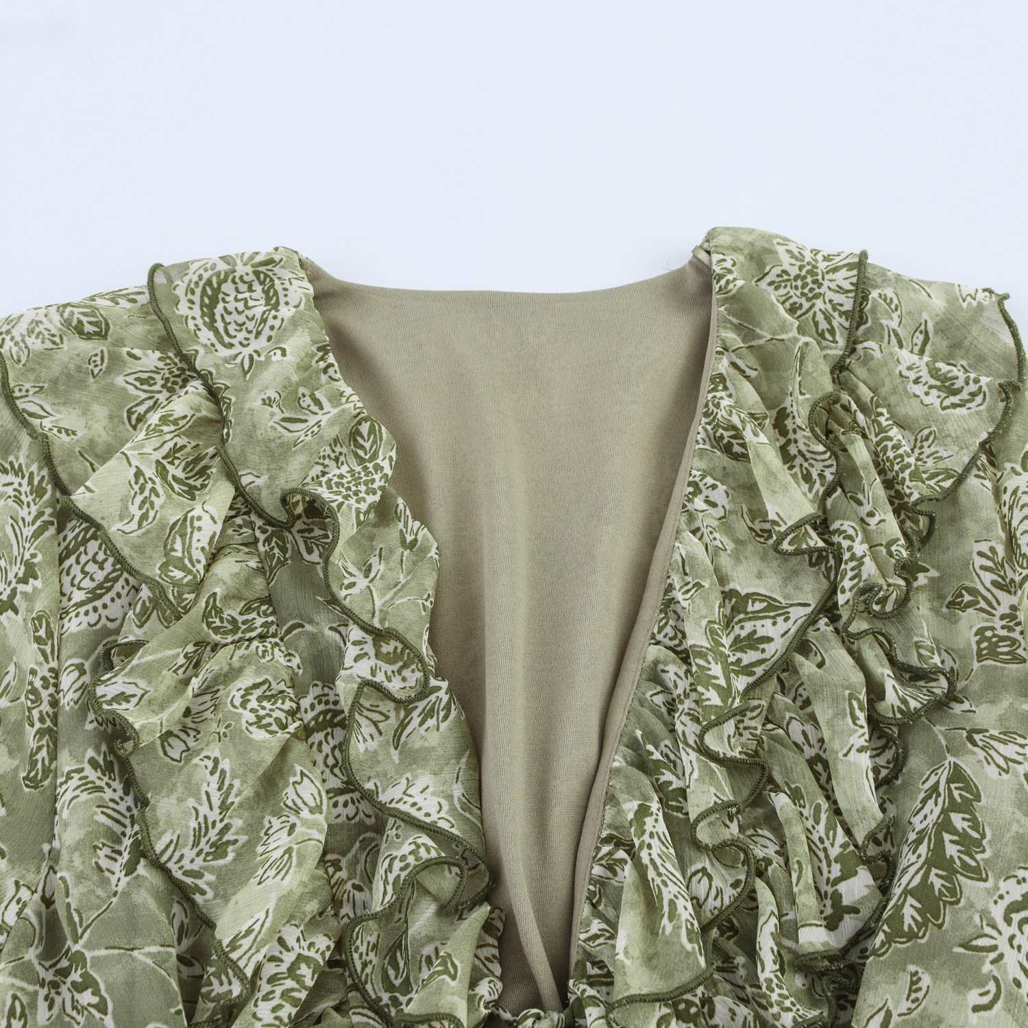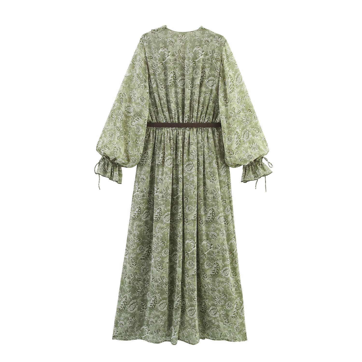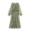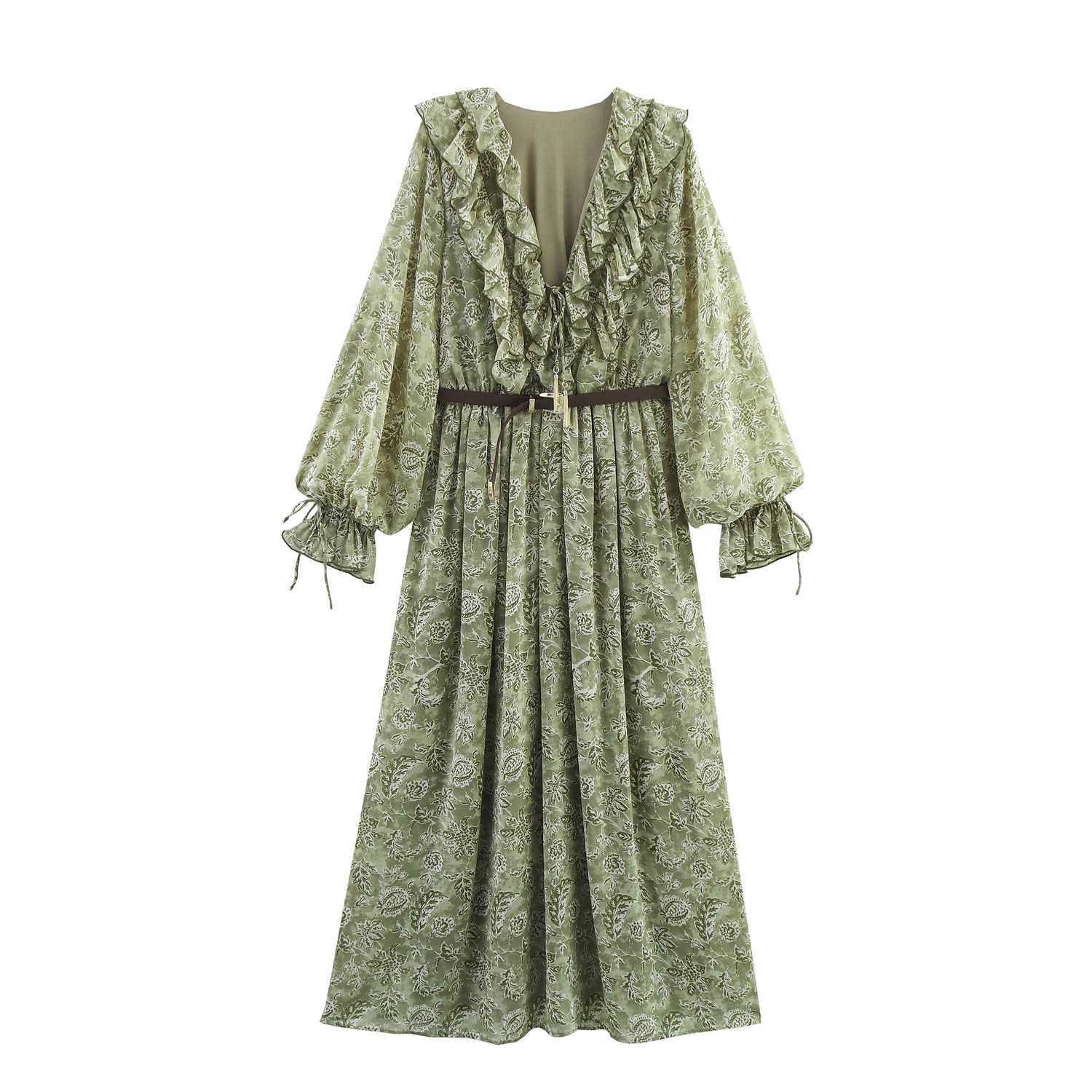 Vestido con cinturón en capas Nueva decoración Venta al por mayor Estilo europeo y americano Verano Manga larga Estampado
