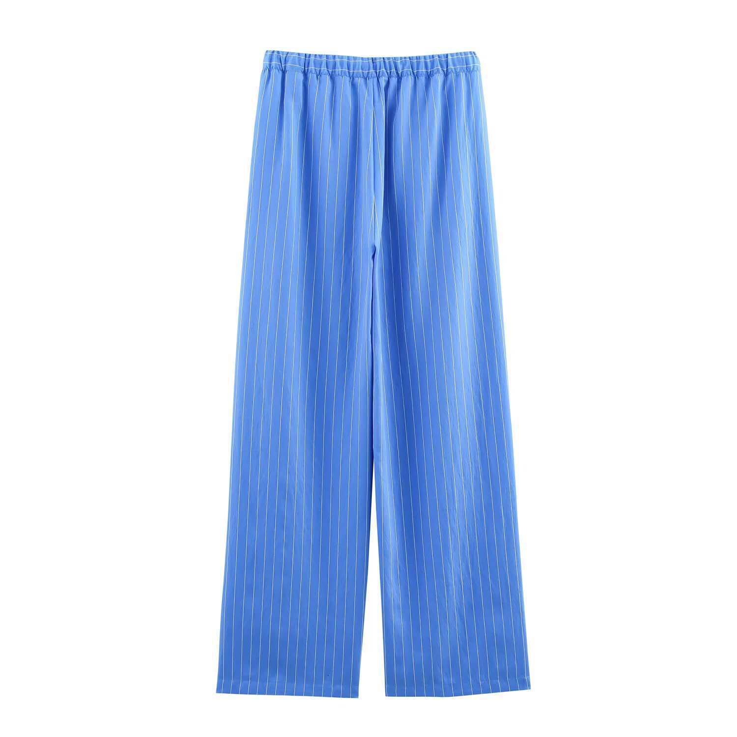 Camisa Holgada de Rayas para Mujer Estilo Europeo y Americano Moda Nuevos Tops y Pantalones Transfronterizos