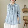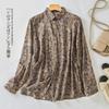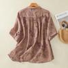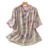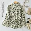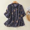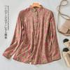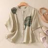 Camisa informal holgada de algodón y lino con estampado floral, estilo retro, estilo artístico, de botonadura sencilla, para mujer, verano 2024