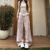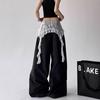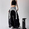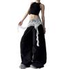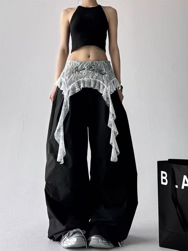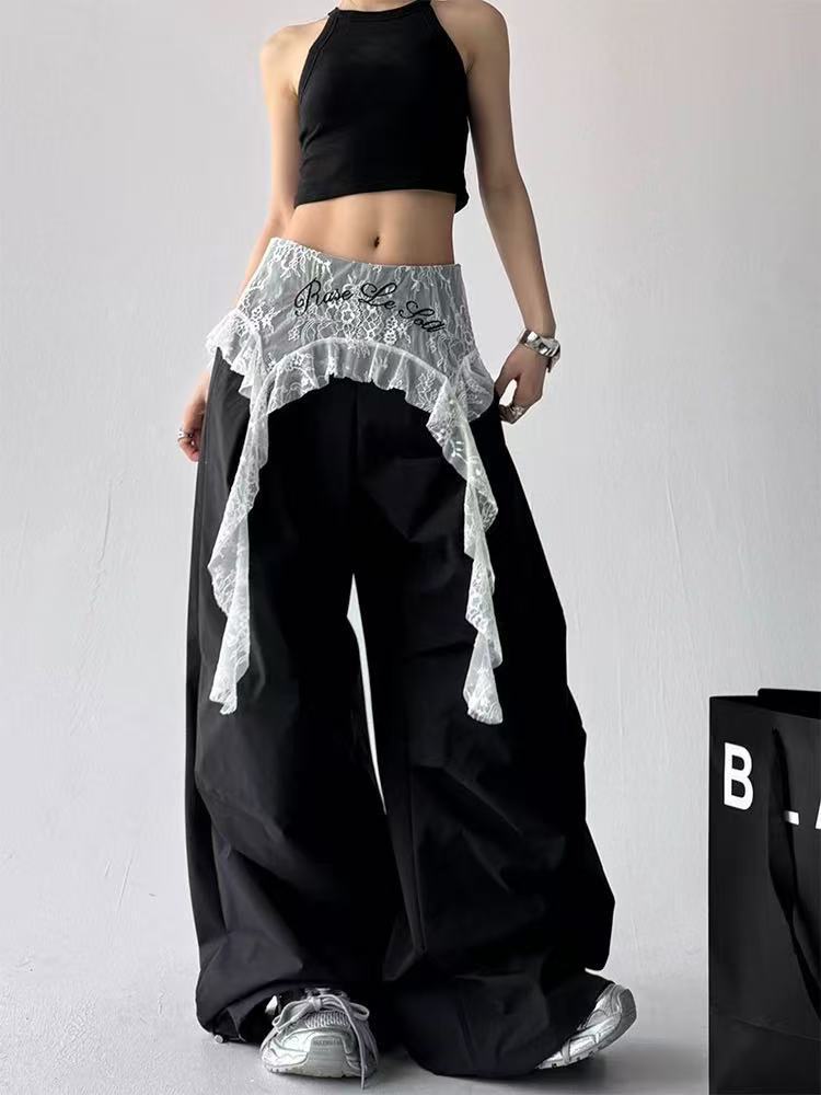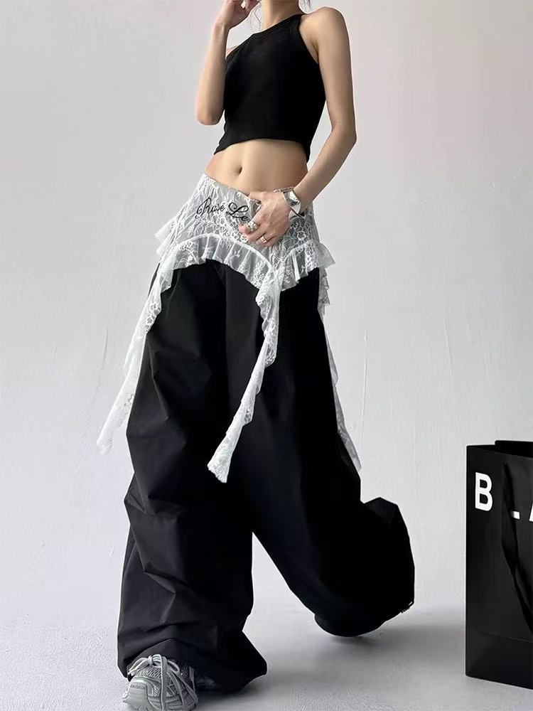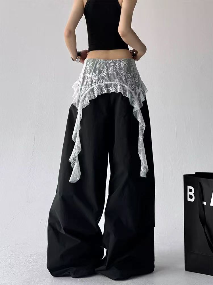 Moda Transfronteriza Versátil Primavera/Verano 2025 Patchwork de Encaje Suelto Casual Falso Dos Piezas Super Populares Pantalones Cargo de Pierna Ancha