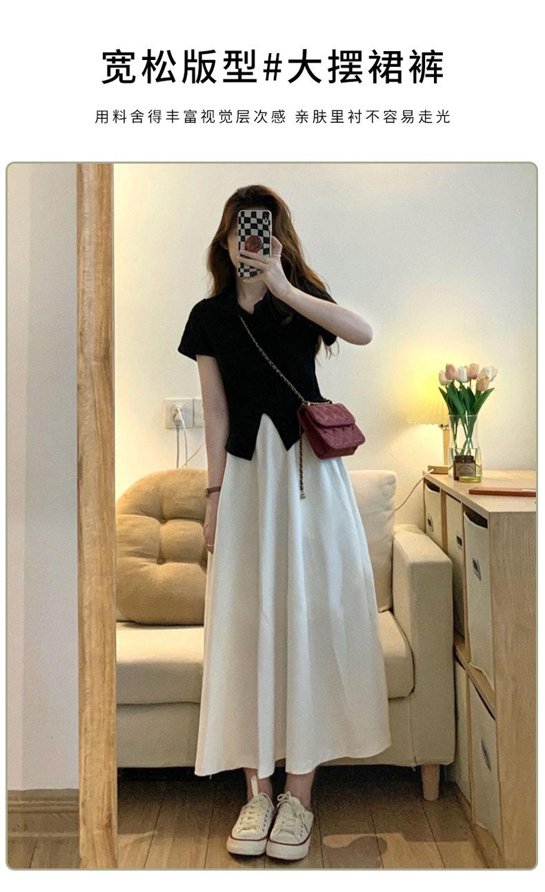 Falda culotte de verano para mujer, fina, plisada, de corte A, de algodón y lino, de cintura alta, recta, drapeada y de pierna ancha, 2024