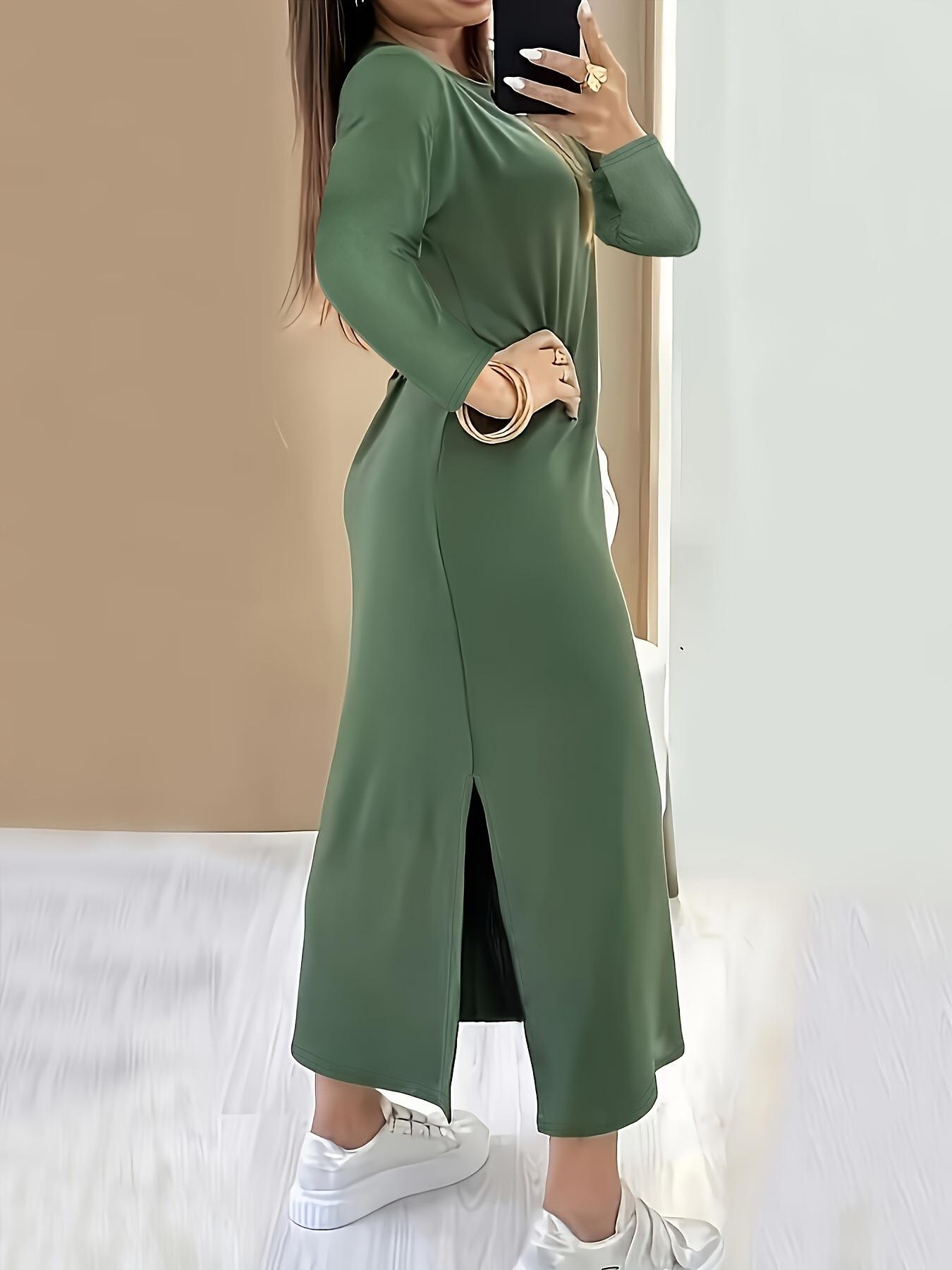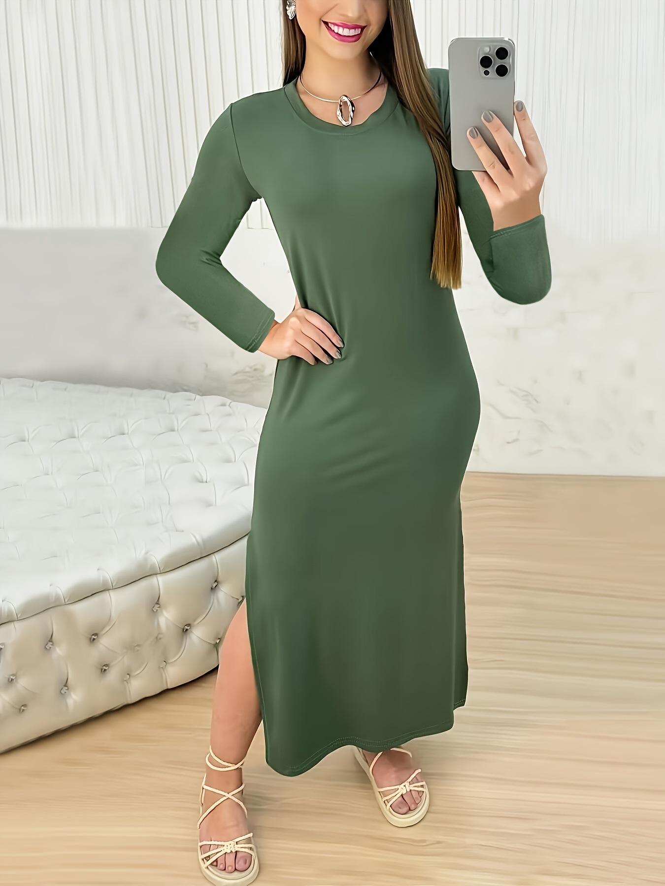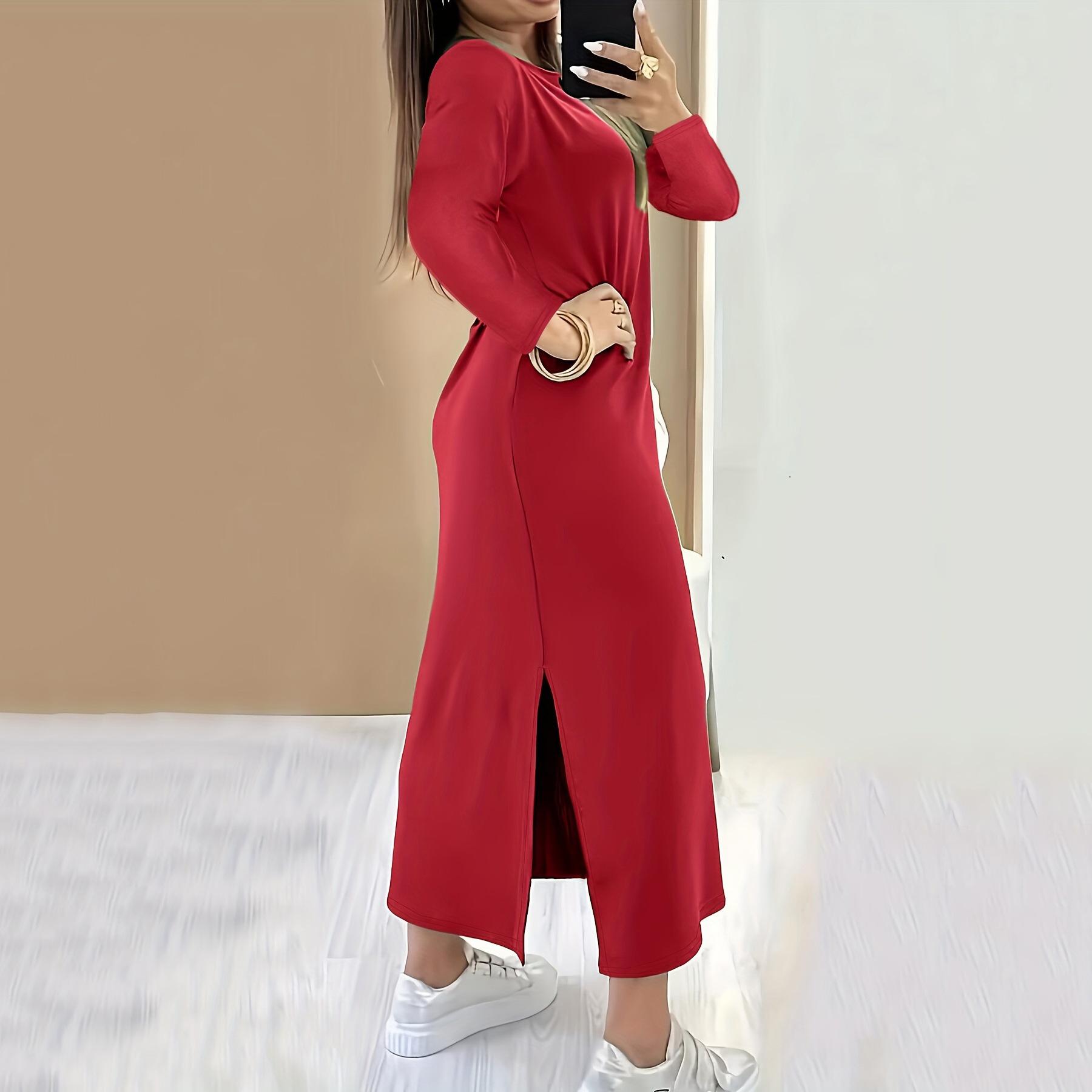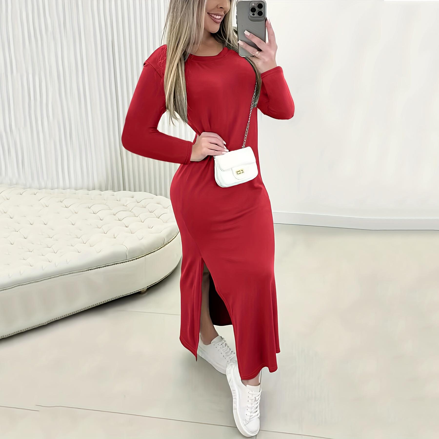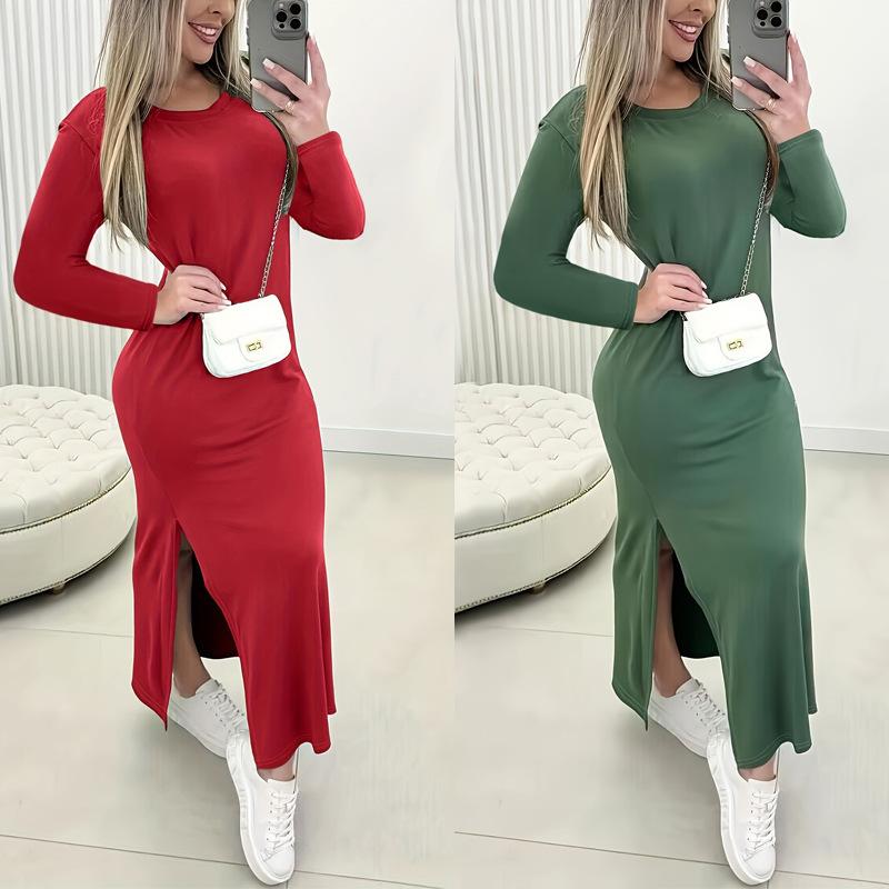 2025 nuevo vestido europeo y americano de otoño e invierno nuevo vestido de color sólido con abertura de manga larga más vendido de Amazon