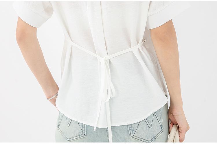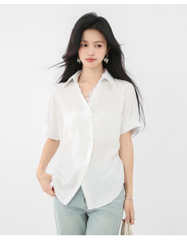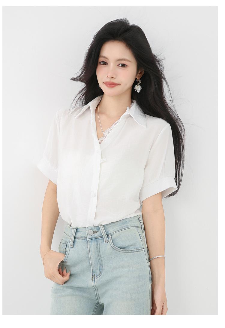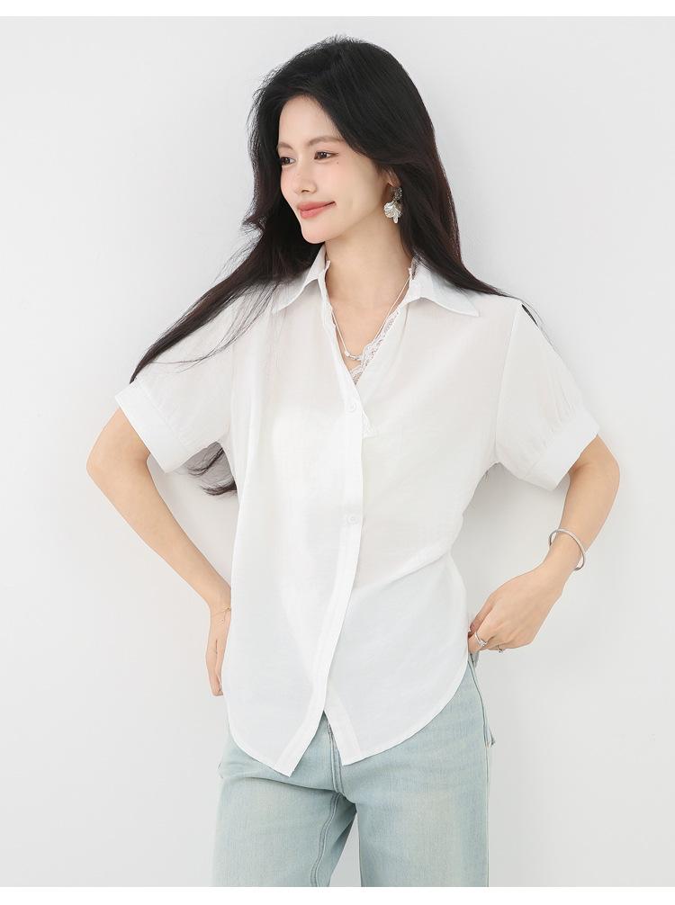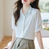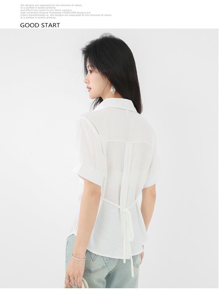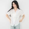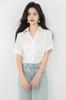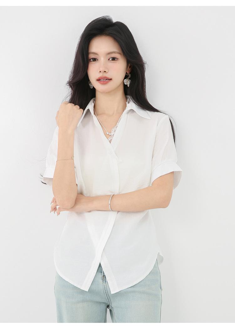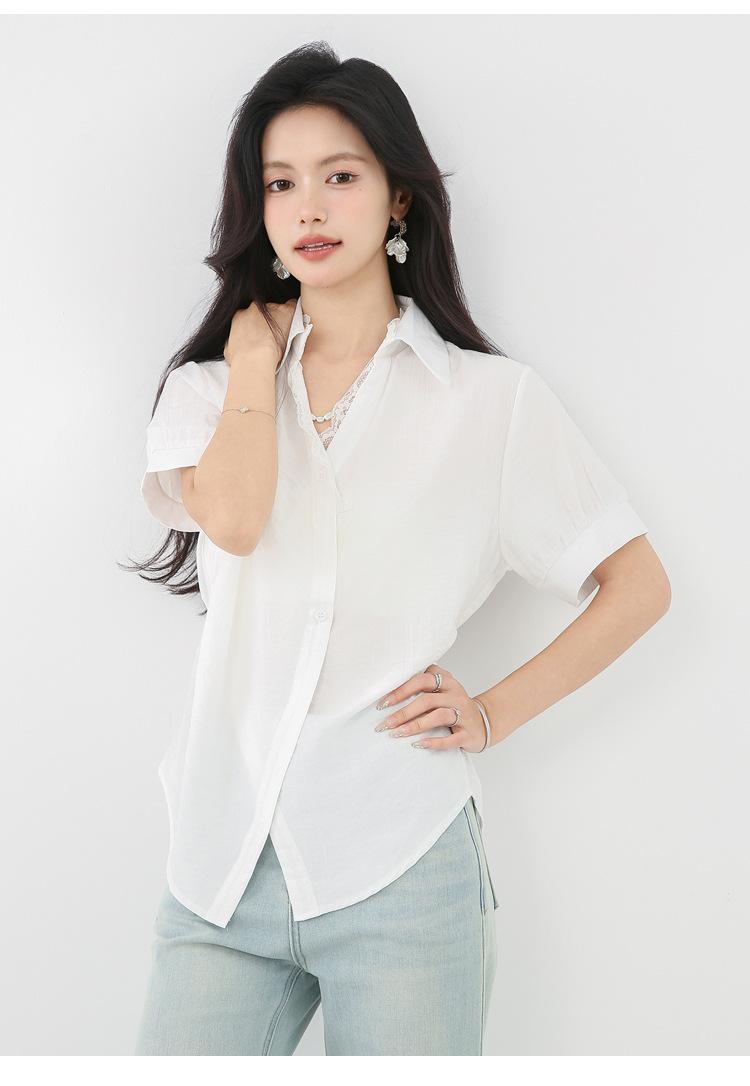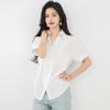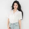 Camisa Blanca Elegante Chic de Manga Corta para Mujer 2025 Diseño de Verano Look Adelgazante Cuello Polo Asimétrico Top para Viajera