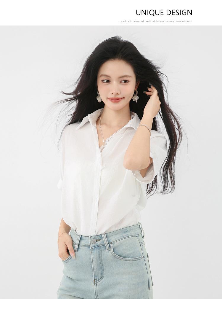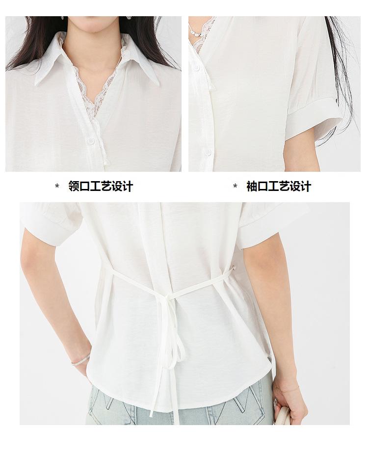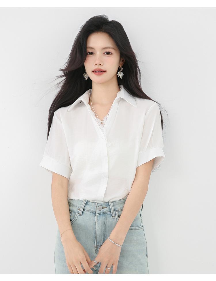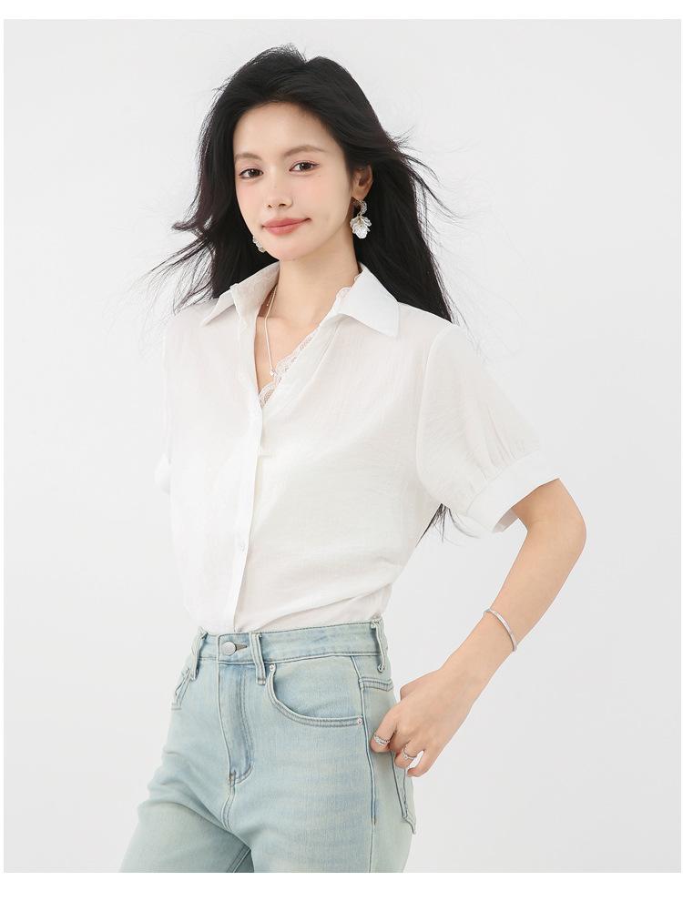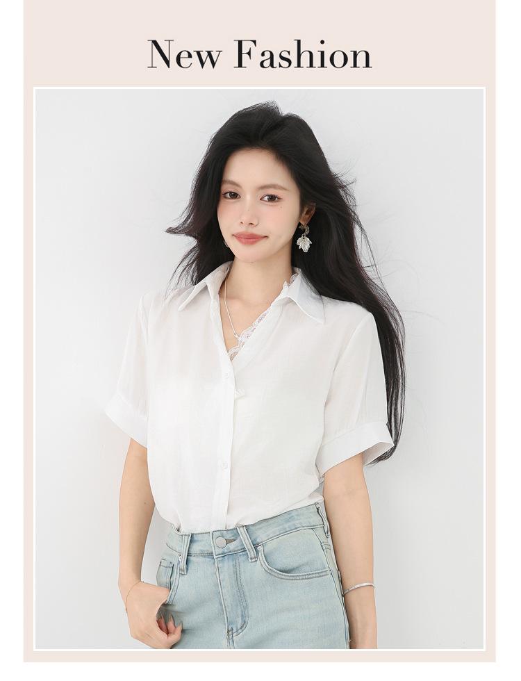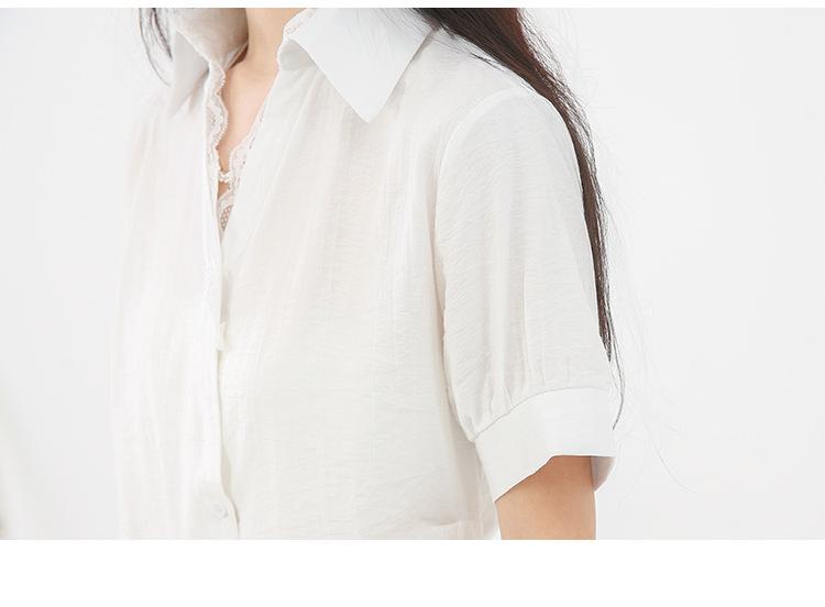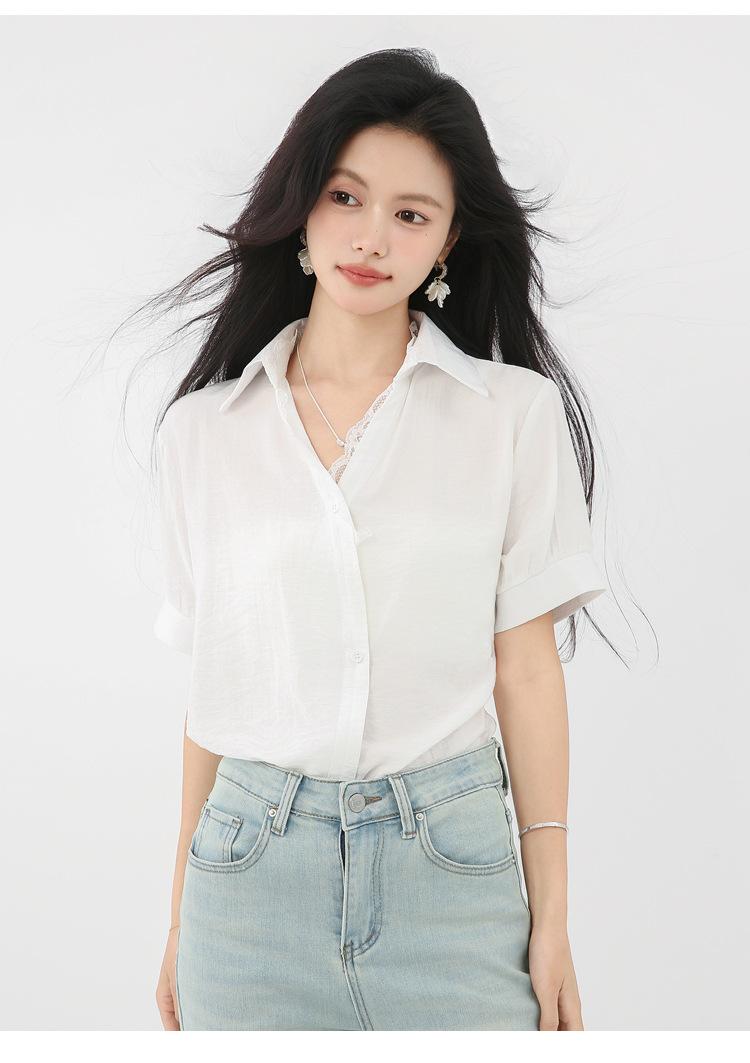 Camisa Blanca Elegante Chic de Manga Corta para Mujer 2025 Diseño de Verano Look Adelgazante Cuello Polo Asimétrico Top para Viajera