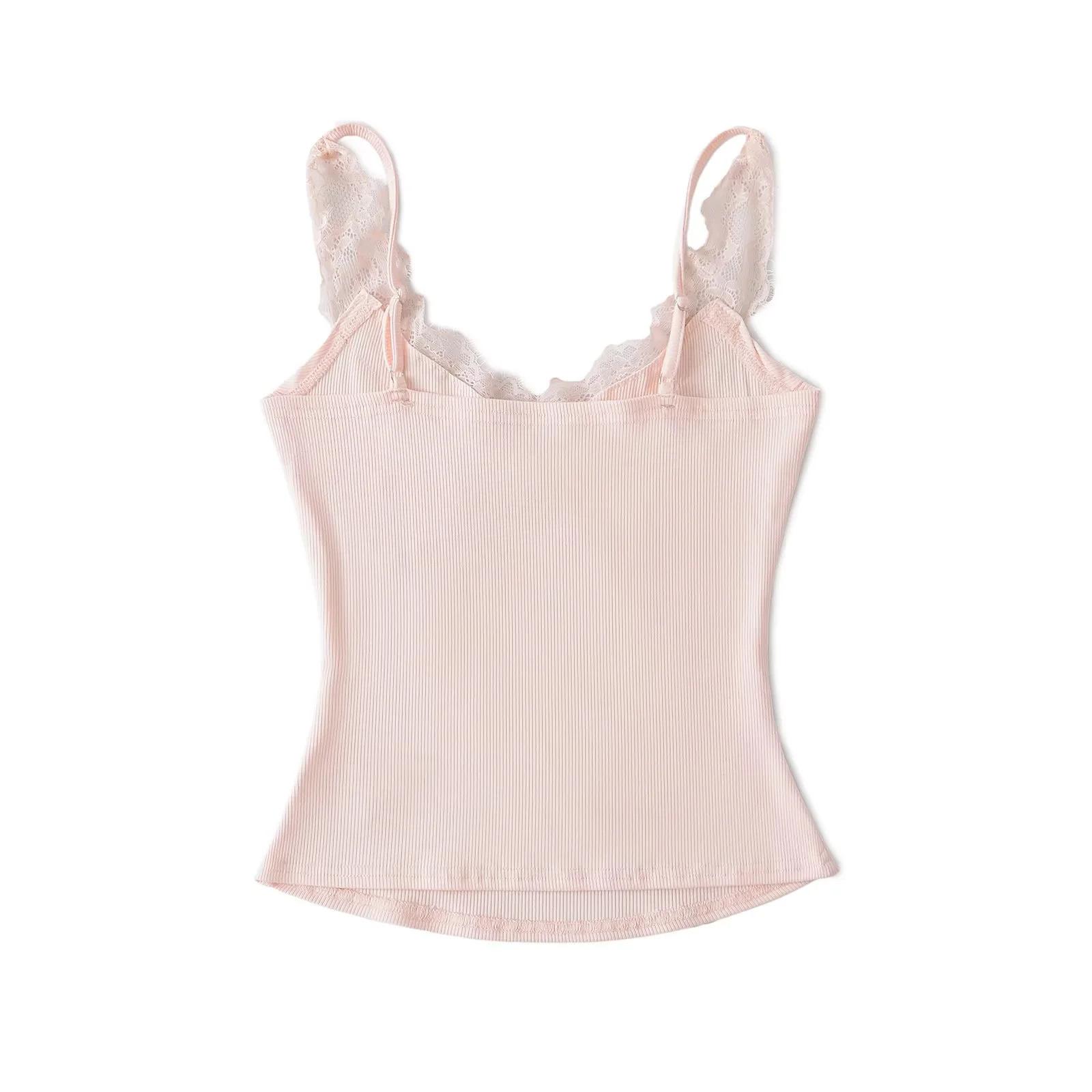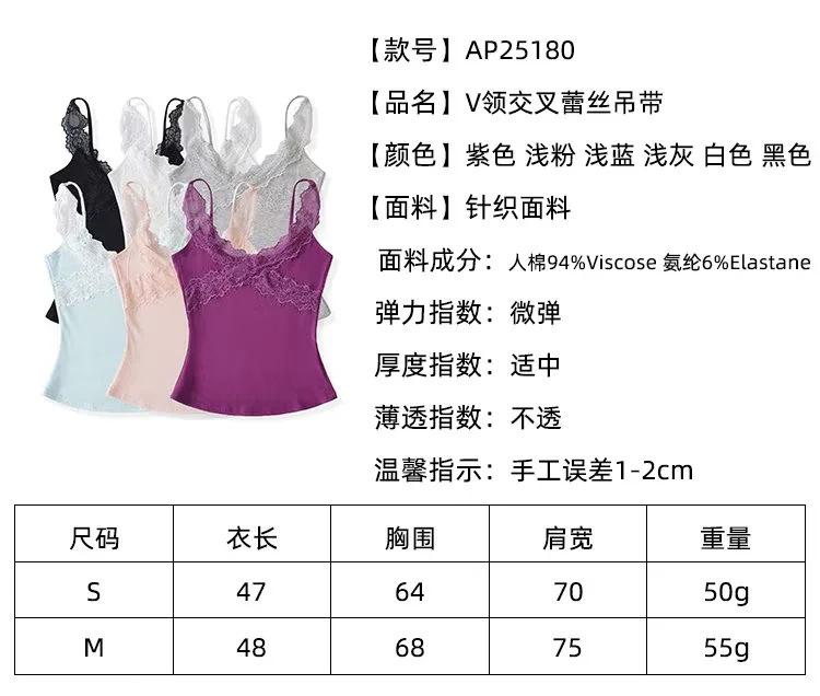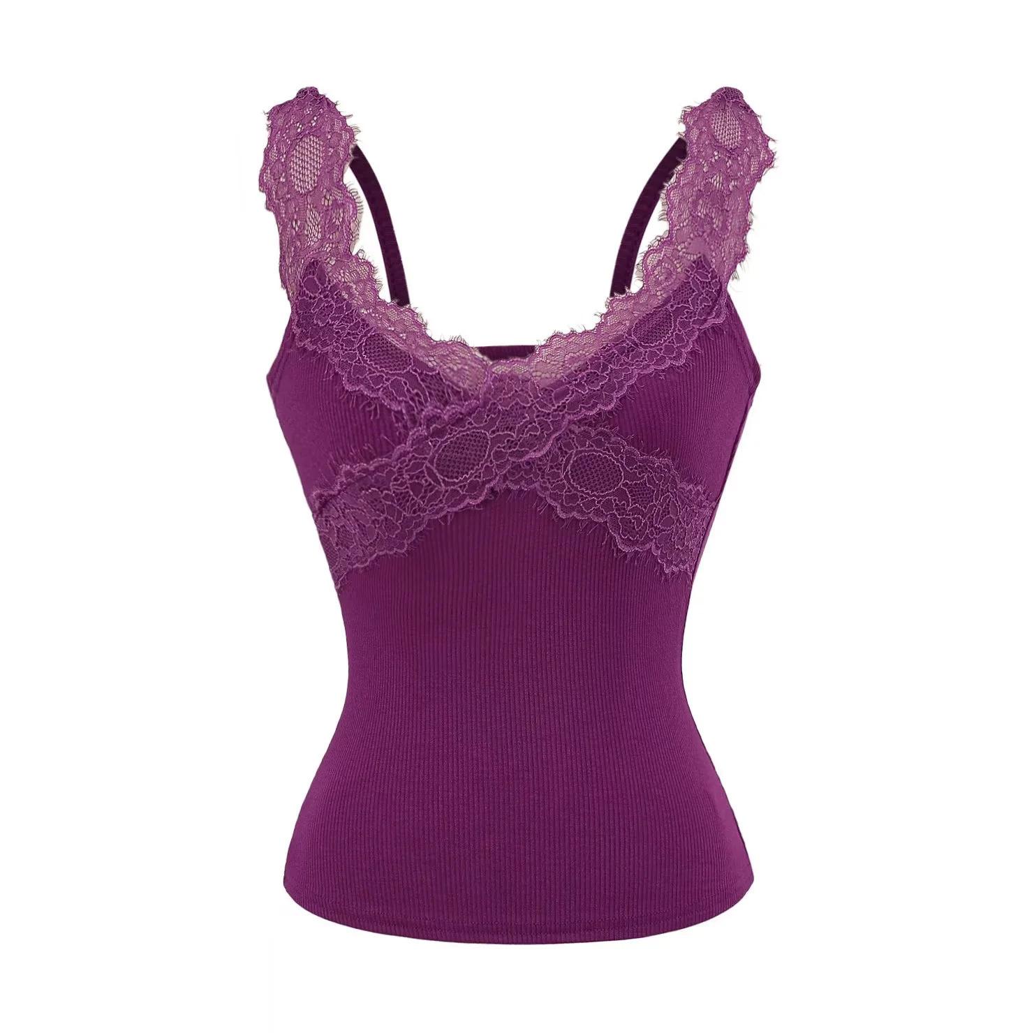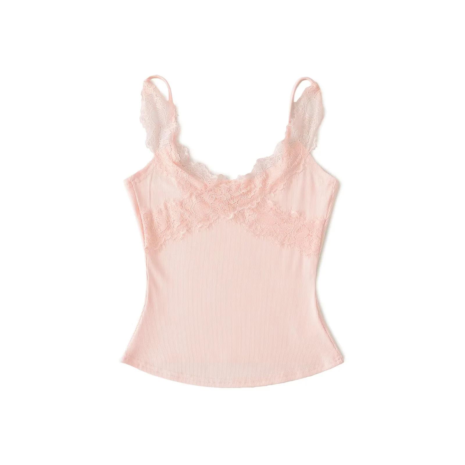 Verano Chica Americana Caliente Encaje Empalme Camisola sin Mangas para Mujer Estilo Pura Lujuria Cuello en V Ajustada Sexy Top Exterior