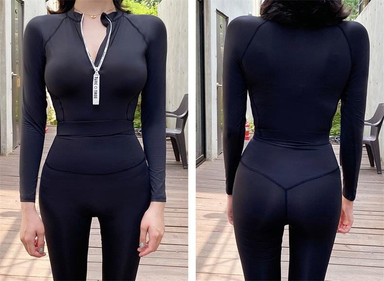 Transfronterizo 2024 Primavera Caliente Nuevo Protector Solar Color Sólido Contraste Manga Larga Pantalones Cremallera Abertura Adelgazante Traje de Buceo Traje de Baño Mujer