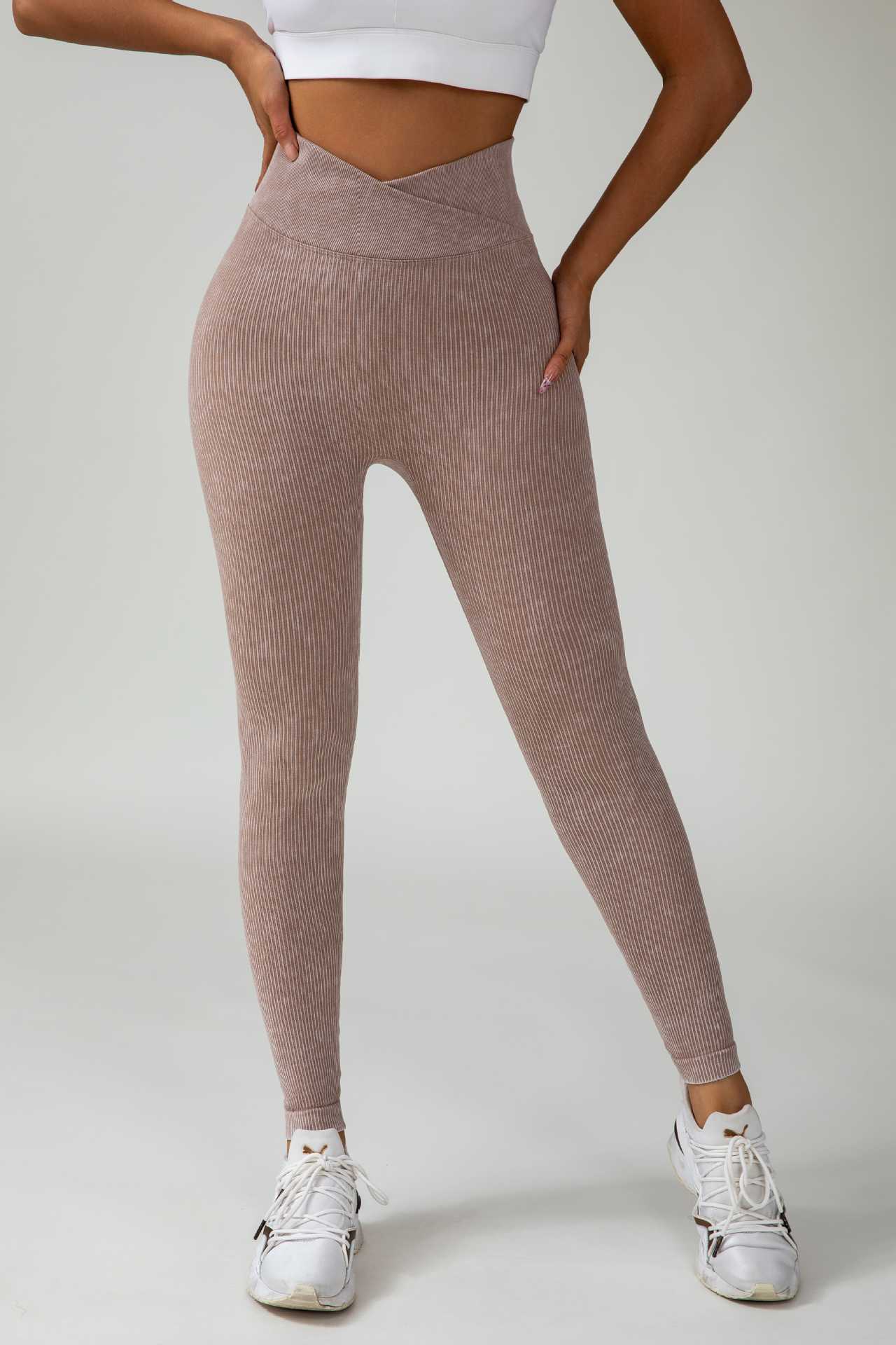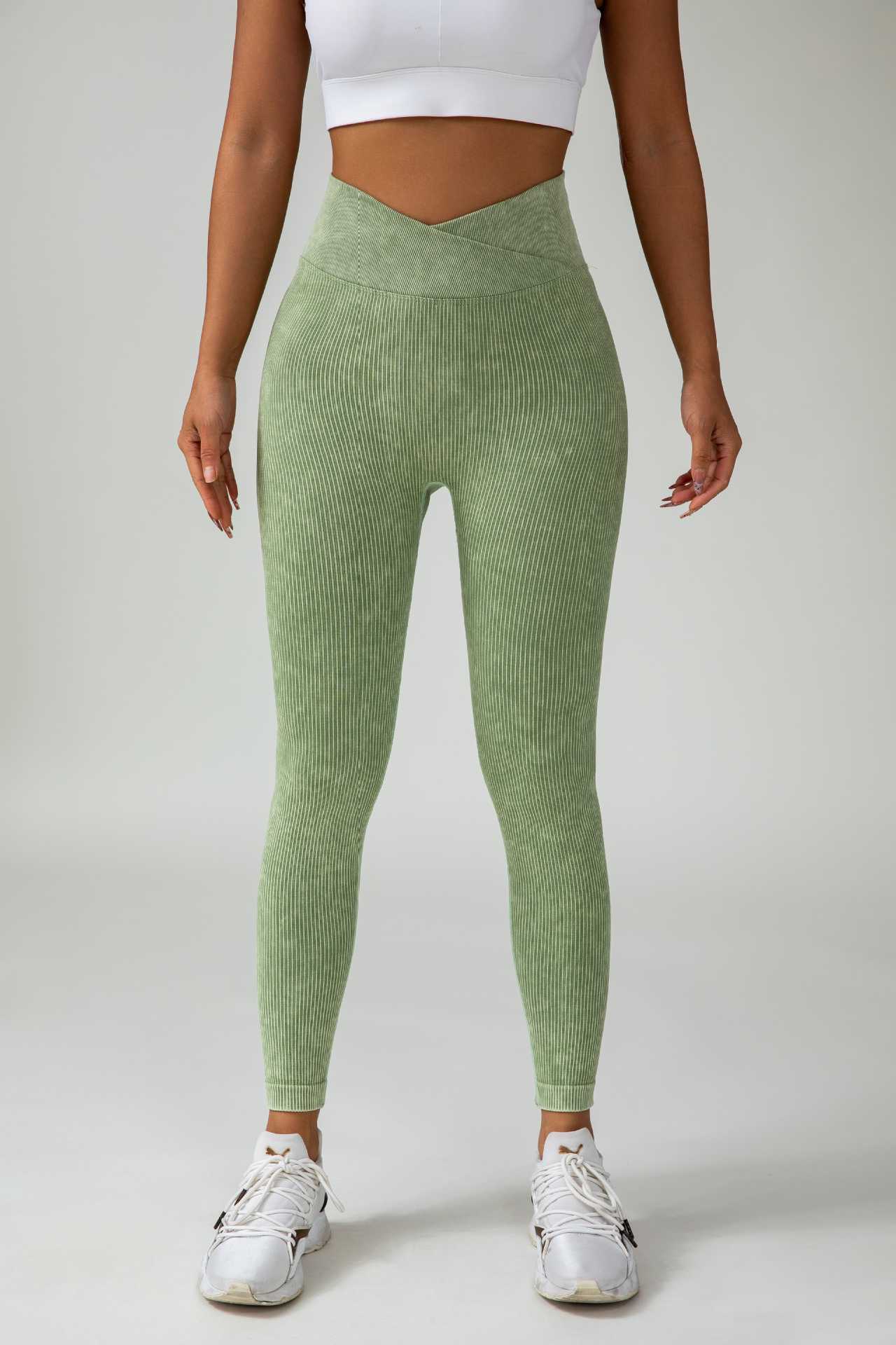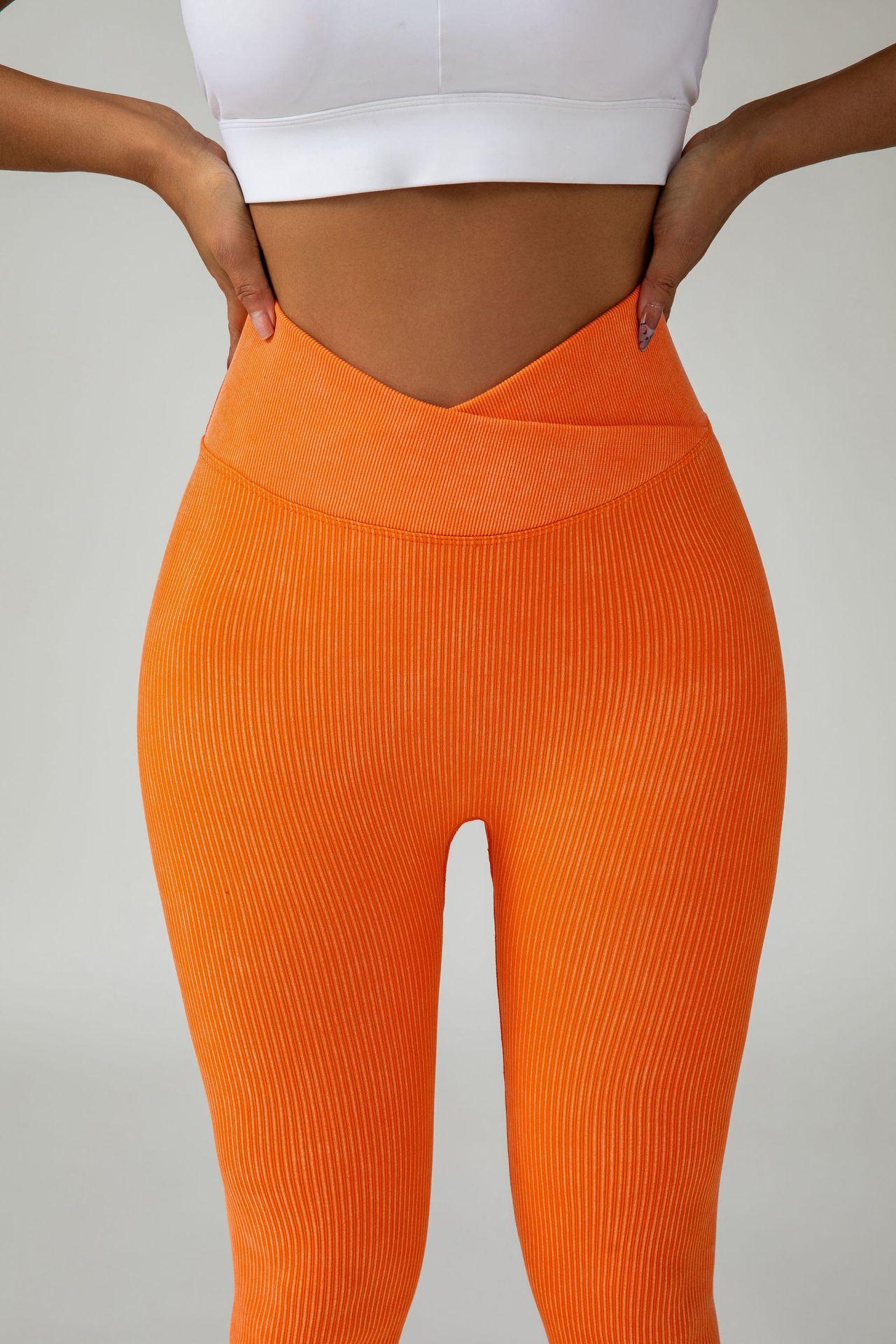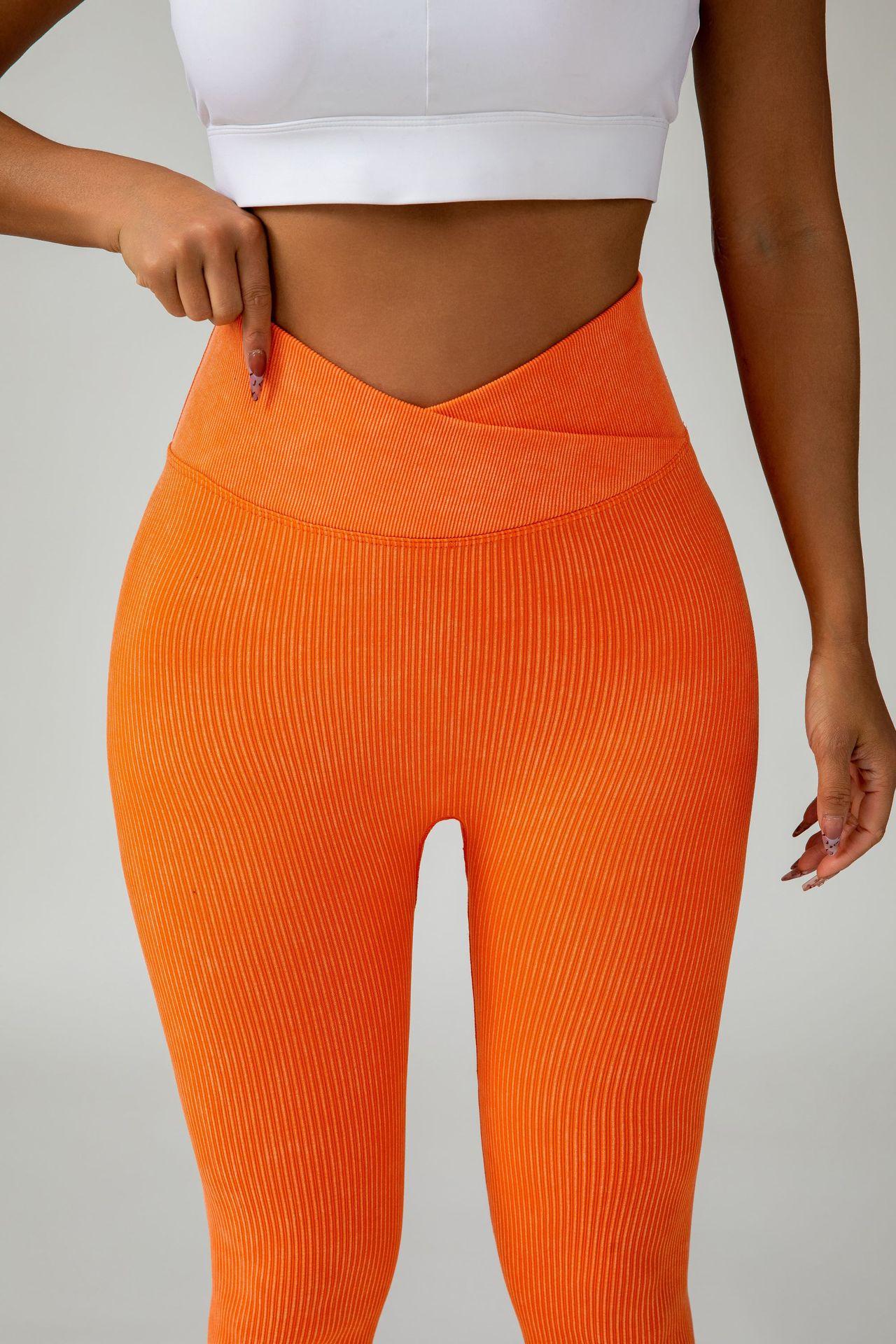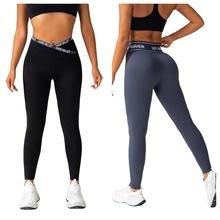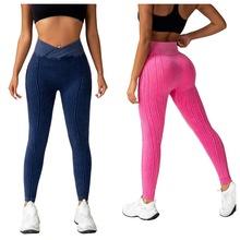 Pantalones de yoga ajustados transpirables elásticos cruzados en la cintura para deportes, correr, fitness, cintura alta, cadera, alta elasticidad