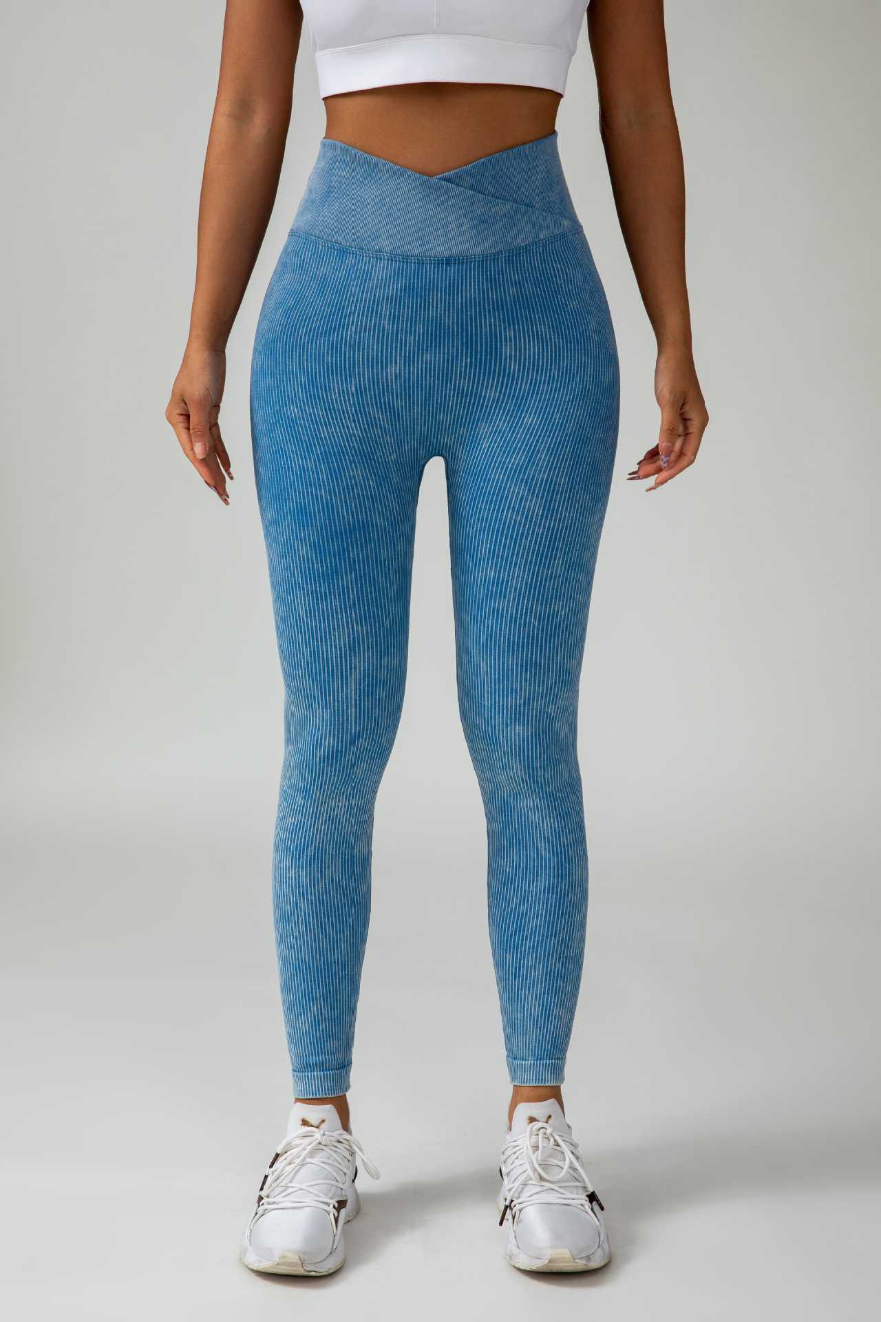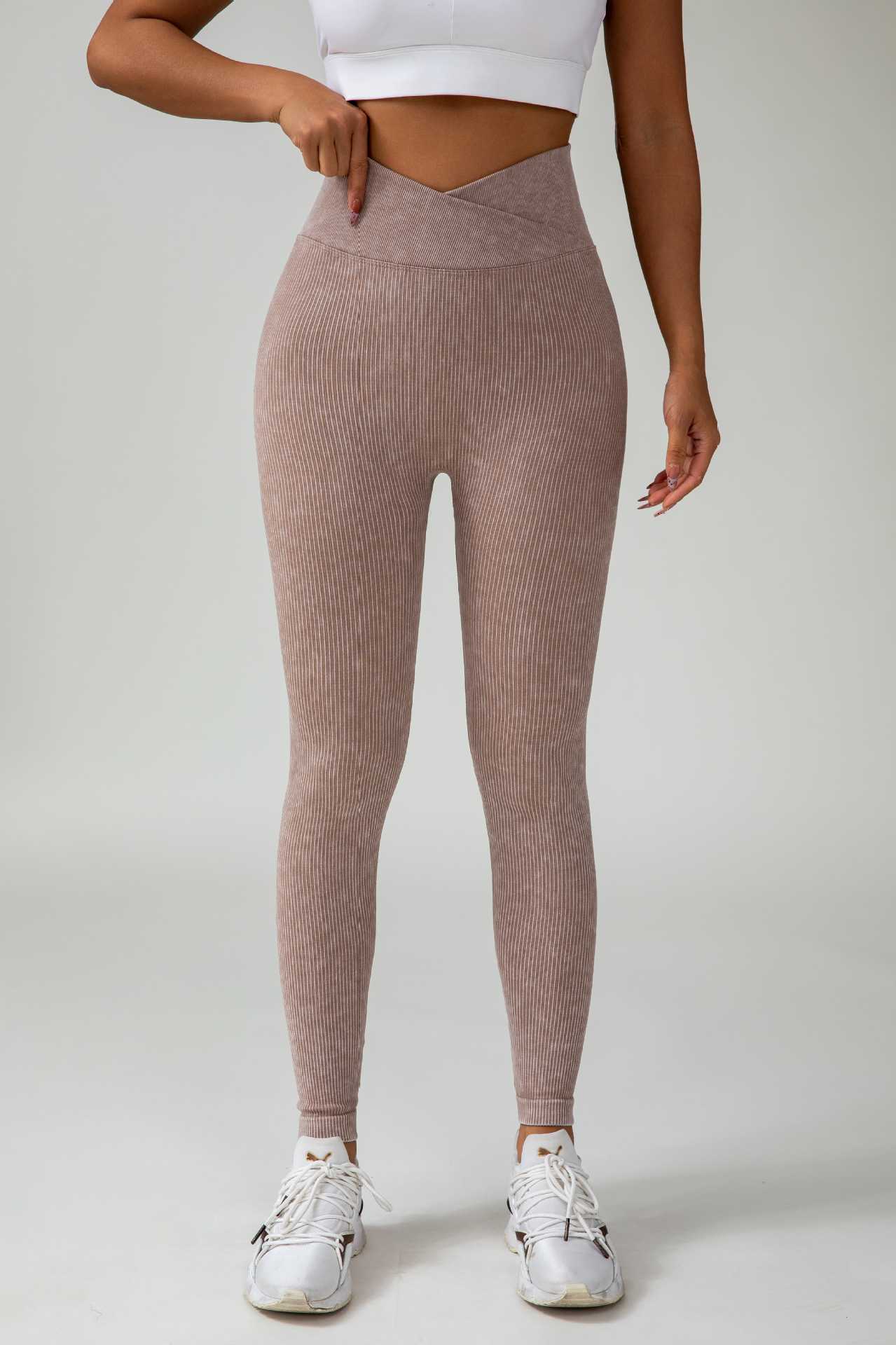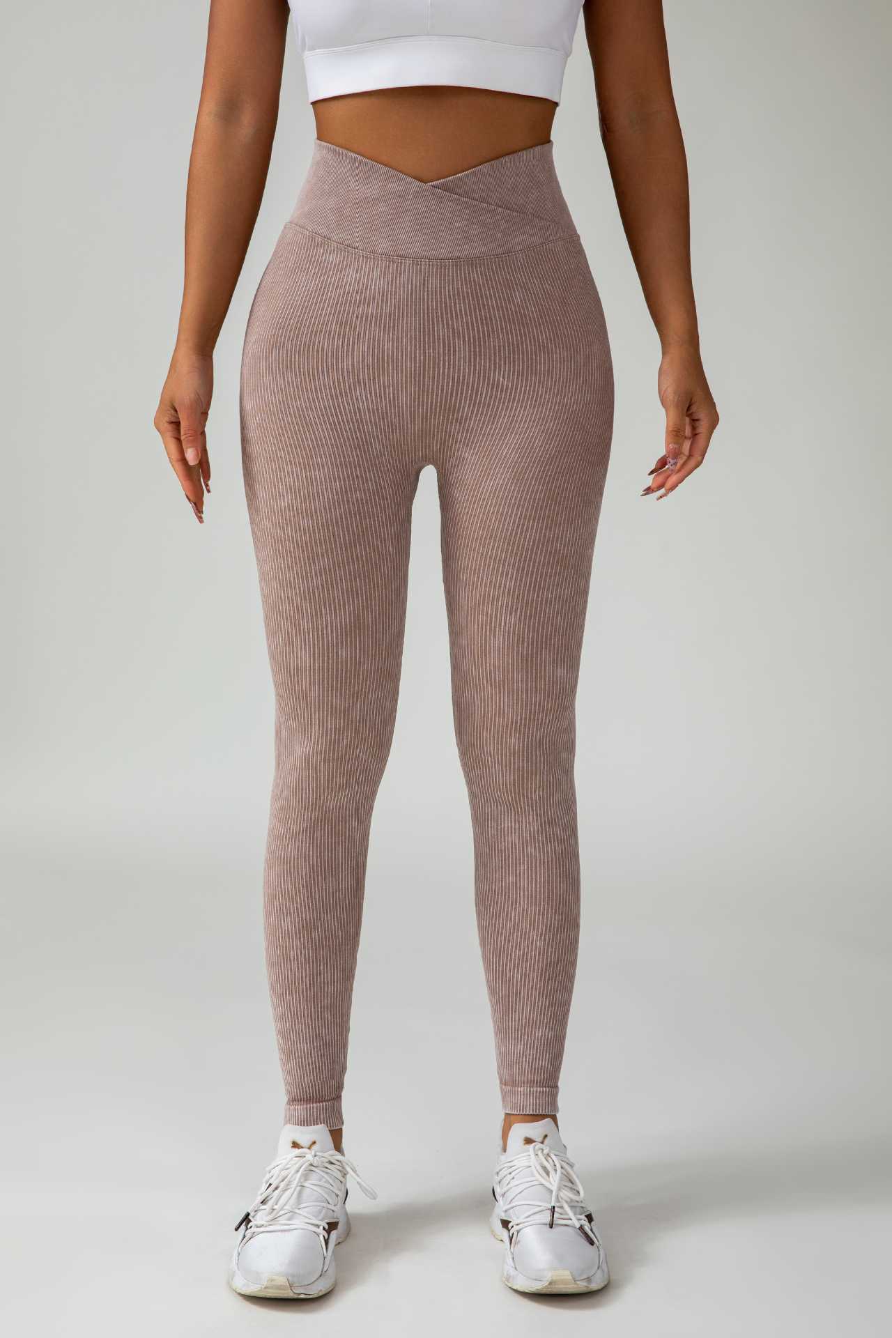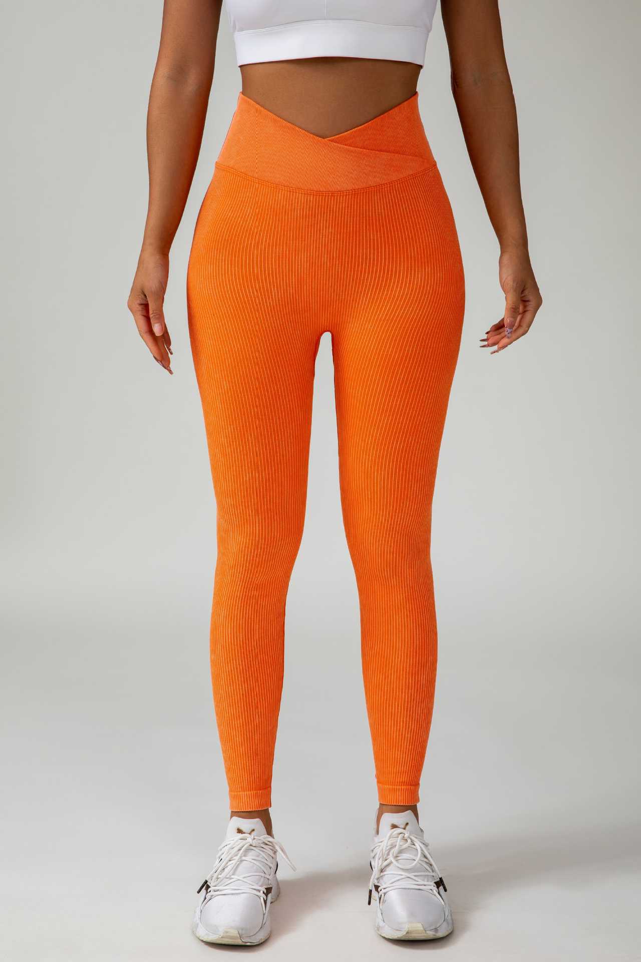 Pantalones de yoga ajustados transpirables elásticos cruzados en la cintura para deportes, correr, fitness, cintura alta, cadera, alta elasticidad