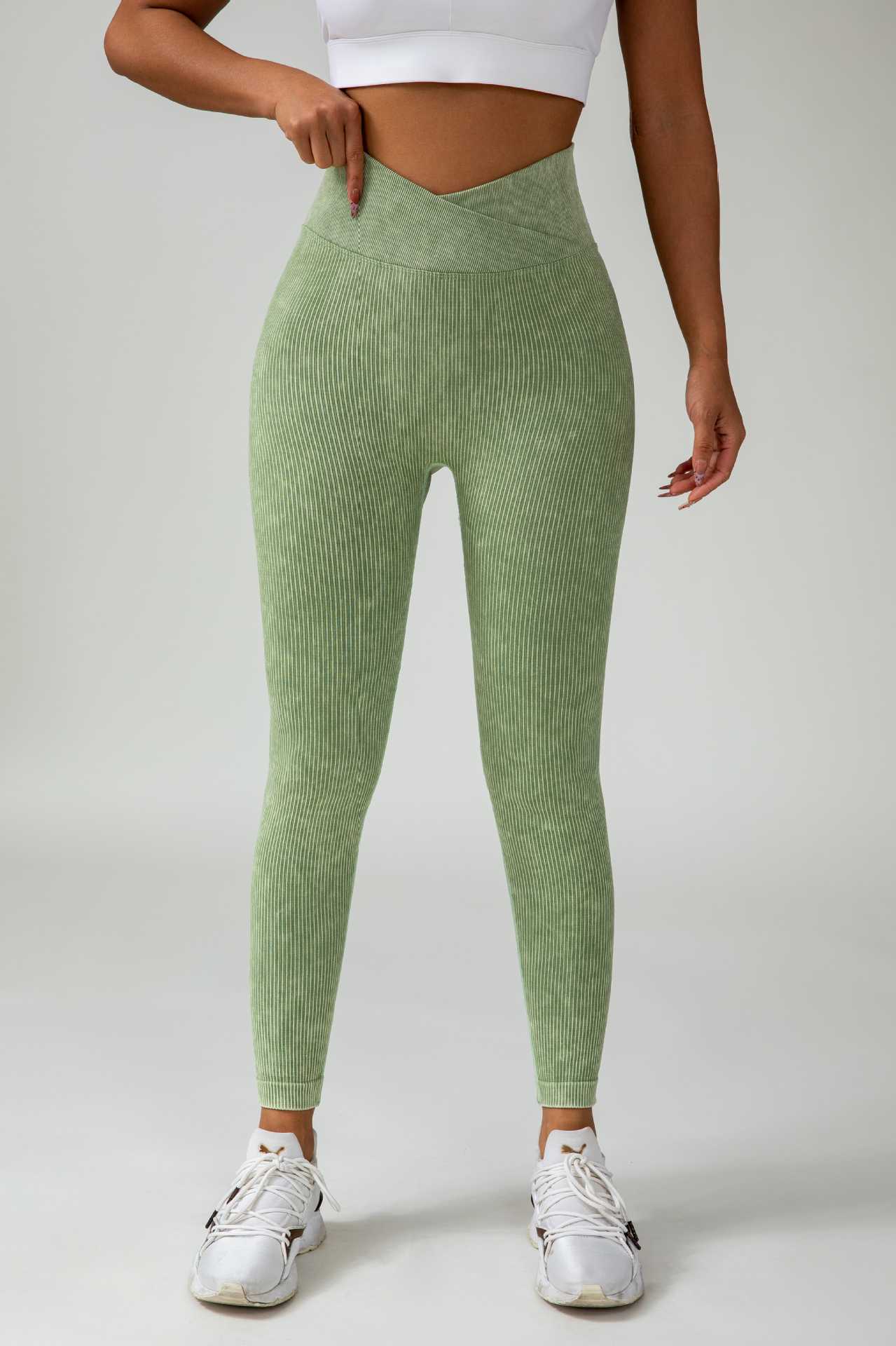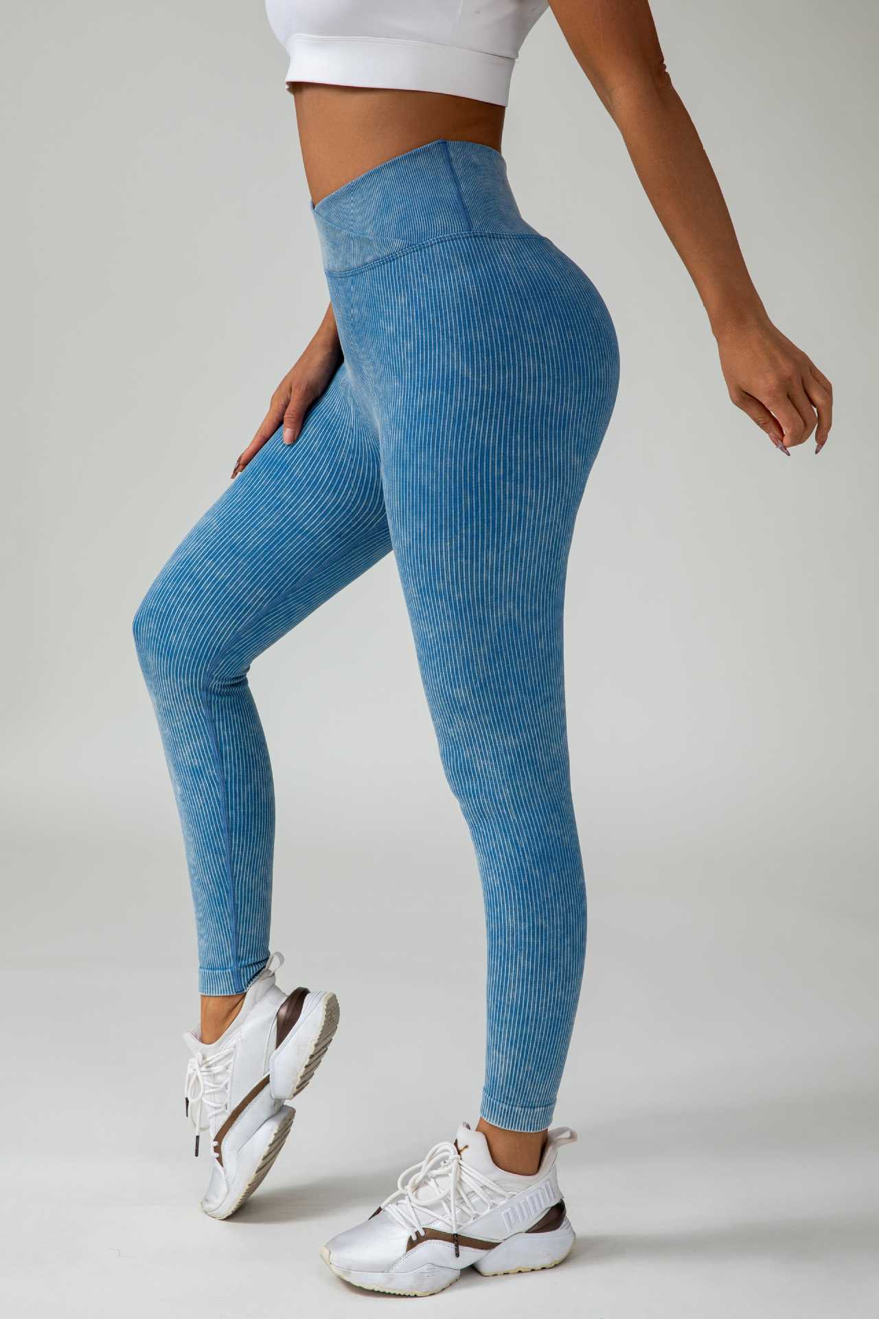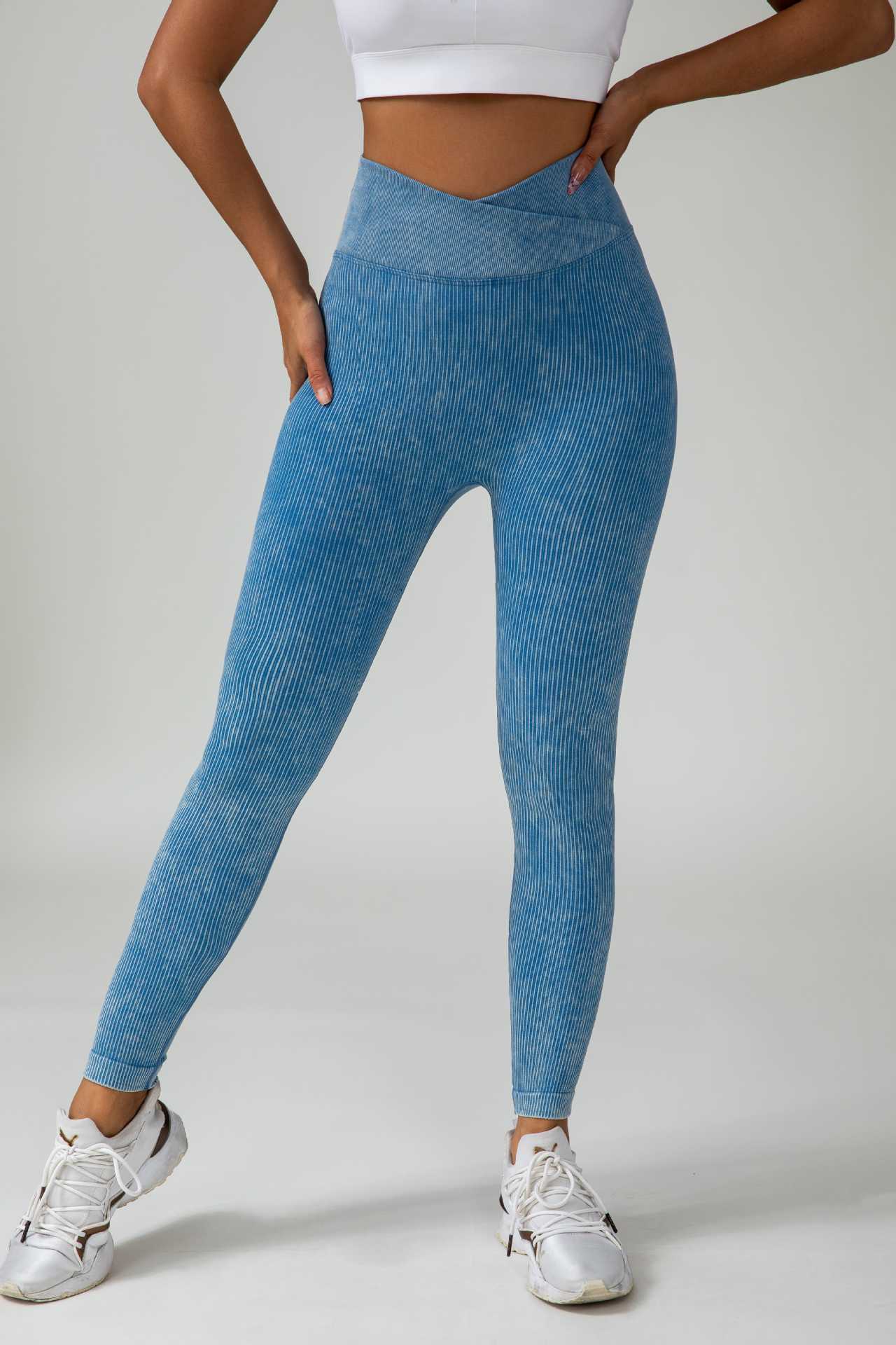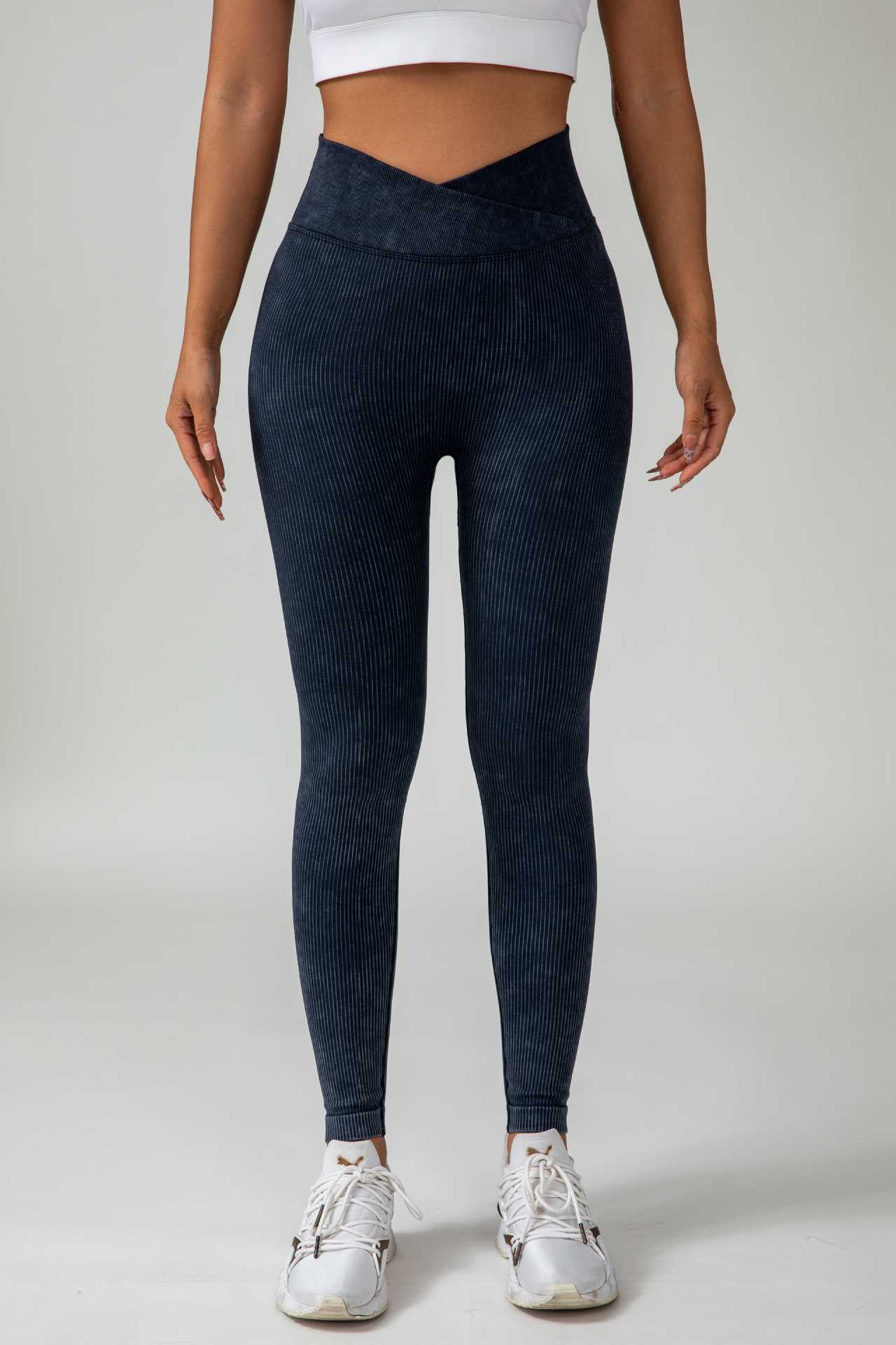 Pantalones de yoga ajustados transpirables elásticos cruzados en la cintura para deportes, correr, fitness, cintura alta, cadera, alta elasticidad