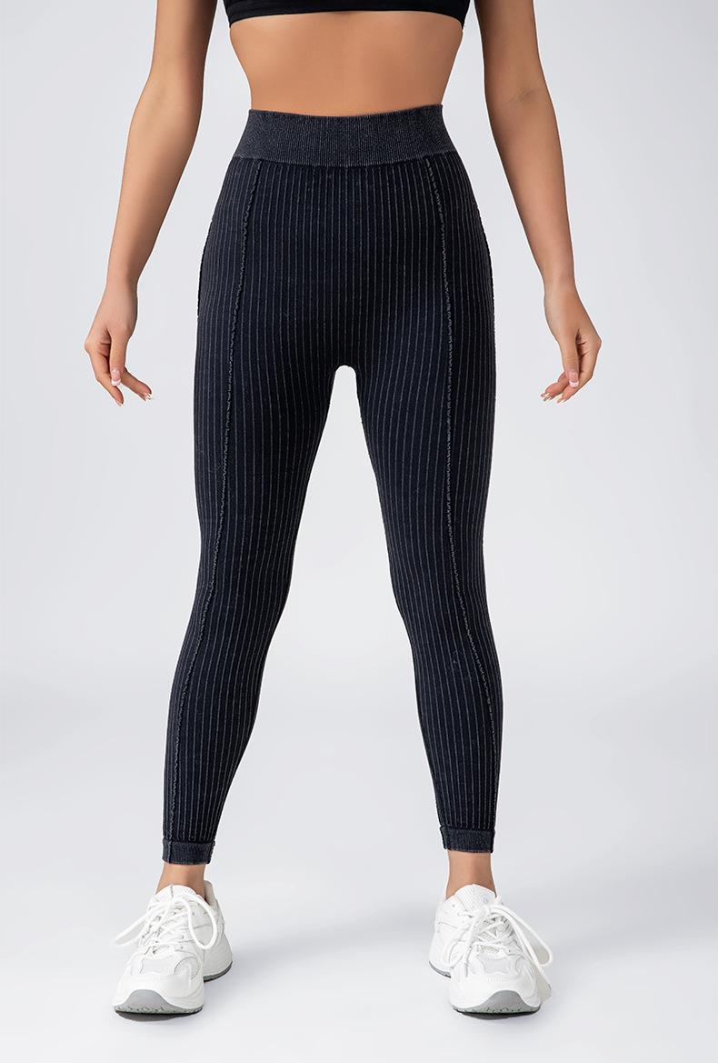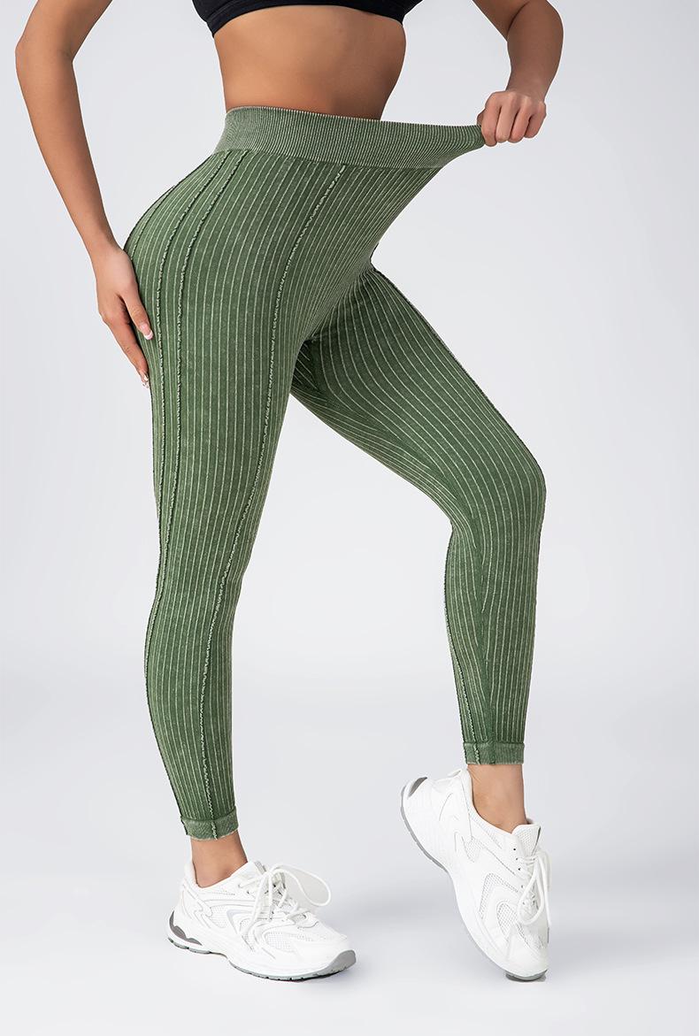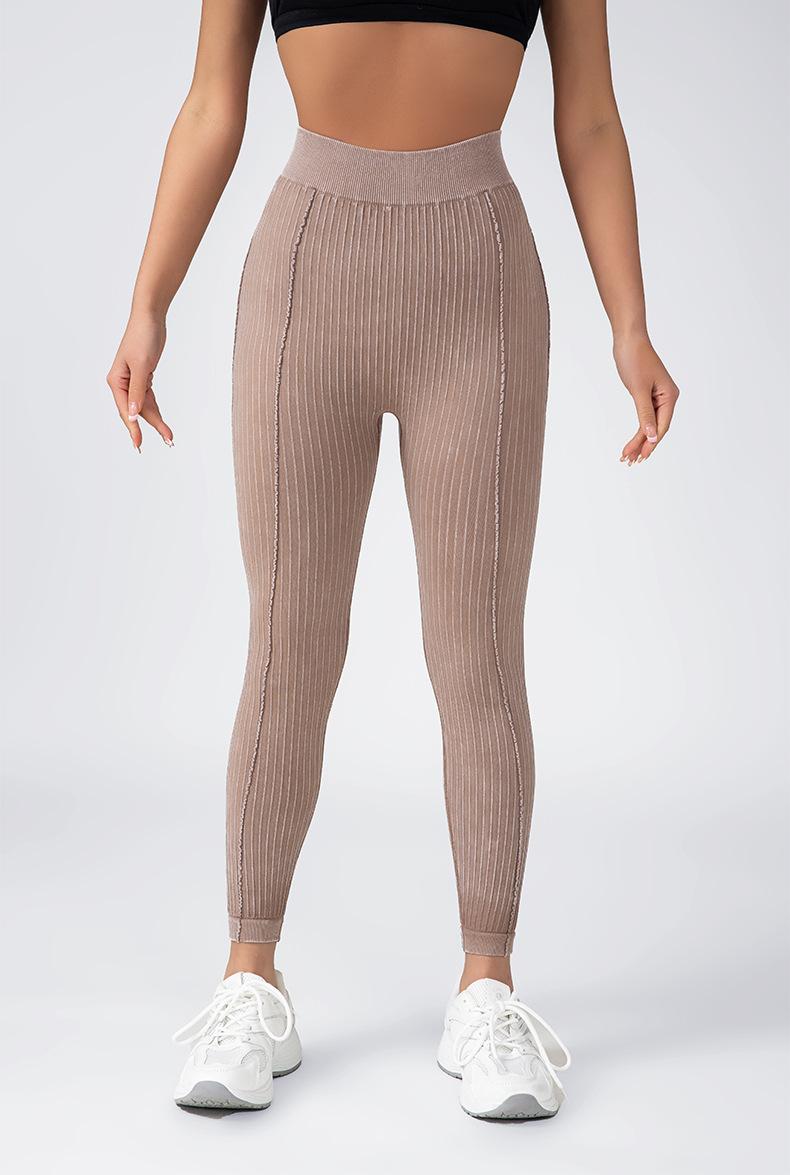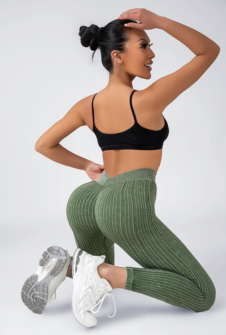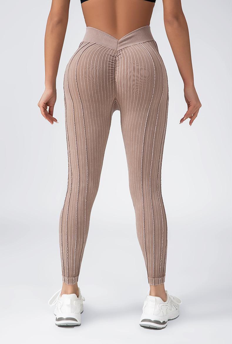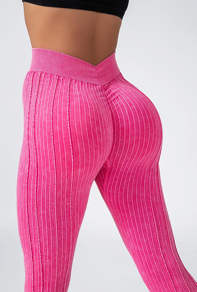Pantalones de Yoga para Mujer con Efecto Levanta Glúteos, Cintura en V, Cadera Durazno, Lavado a la Arena, Acanalados, Cintura Alta, Pantalones Deportivos para Exterior con Elasticidad
