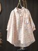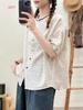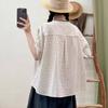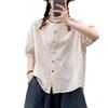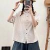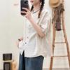 Verano Nuevo Dulce Cuello de Encaje Estampado de Corazón Algodón Camisa de Manga Corta para Mujer Botón Colorido Holgada Versátil Camisa Reductora de Edad