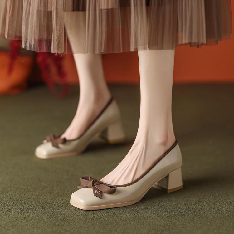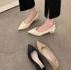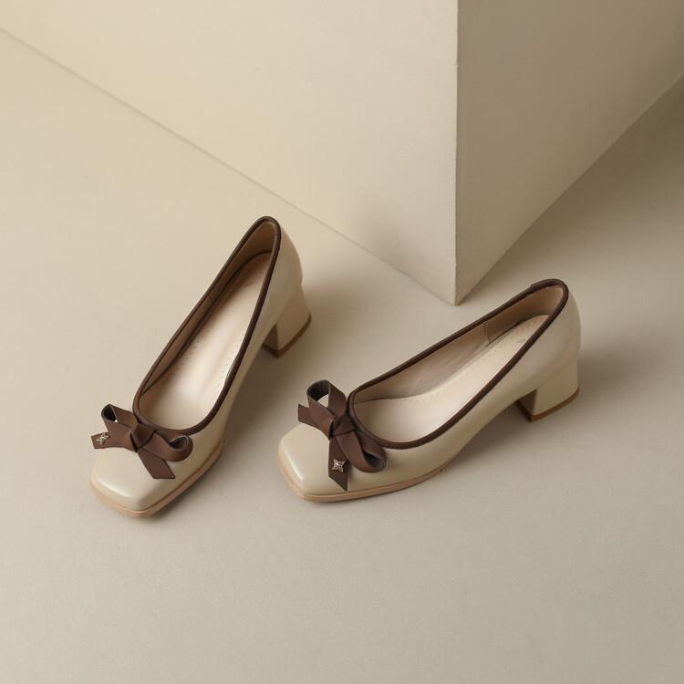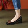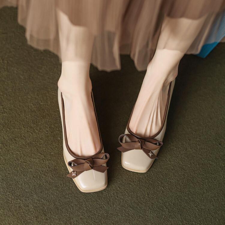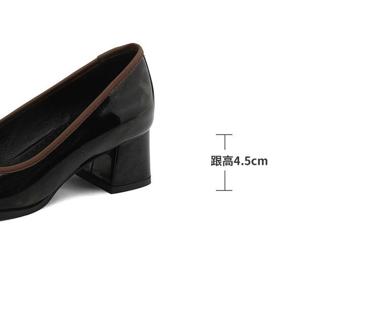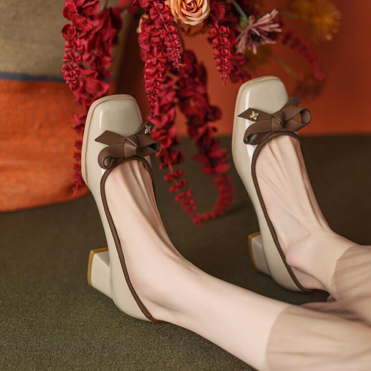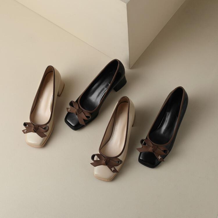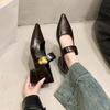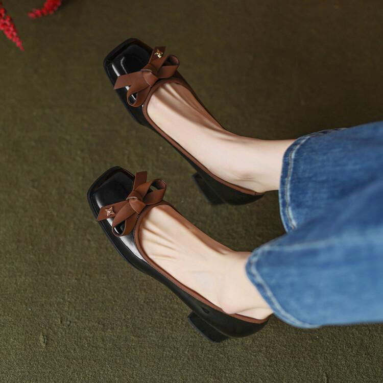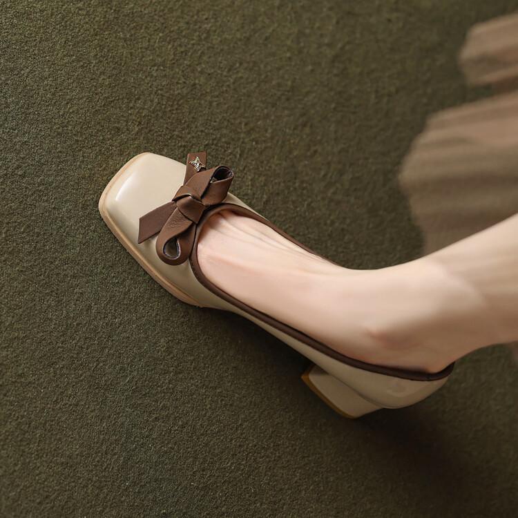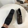 Zapatos Casuales de Corte Bajo y Tacón Alto para Mujer de Cuatro Estaciones, Zapatos de Cuero para Mujer de Color Sólido con Punta Cuadrada y Slip-Ons Bajos
