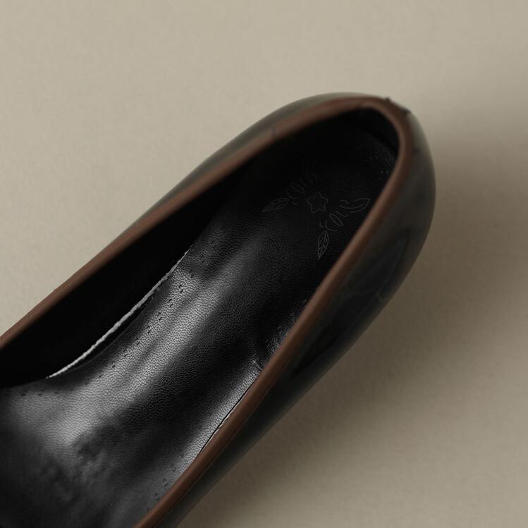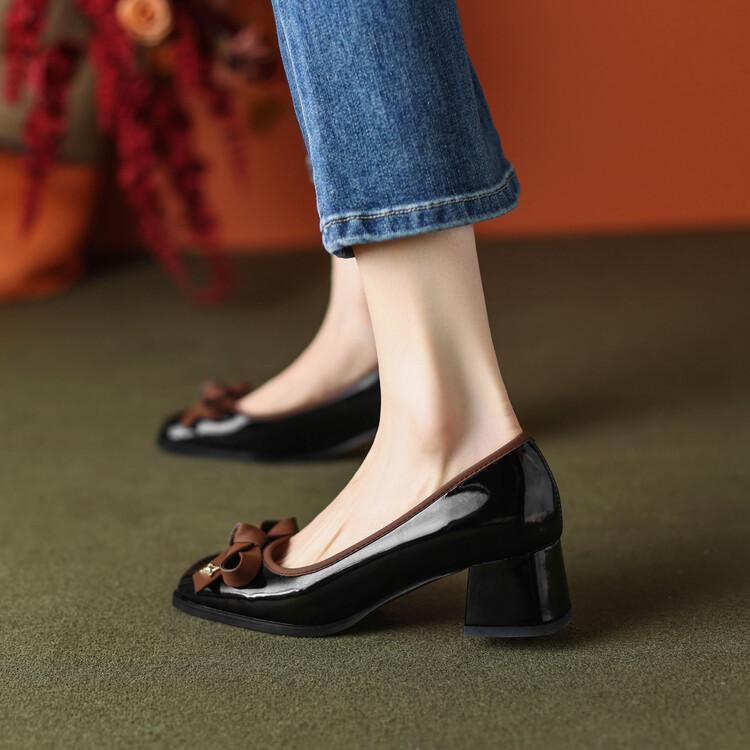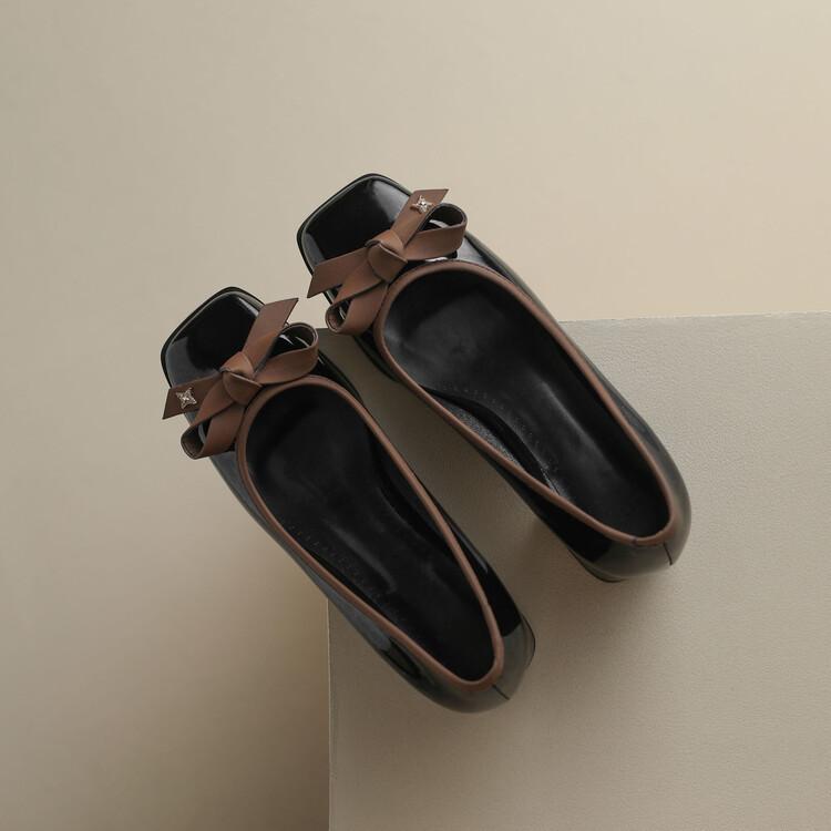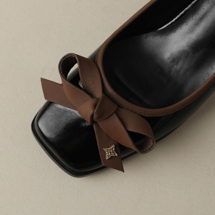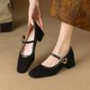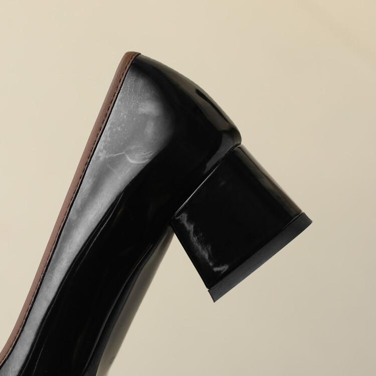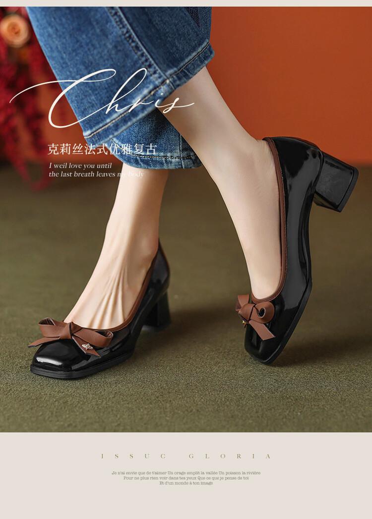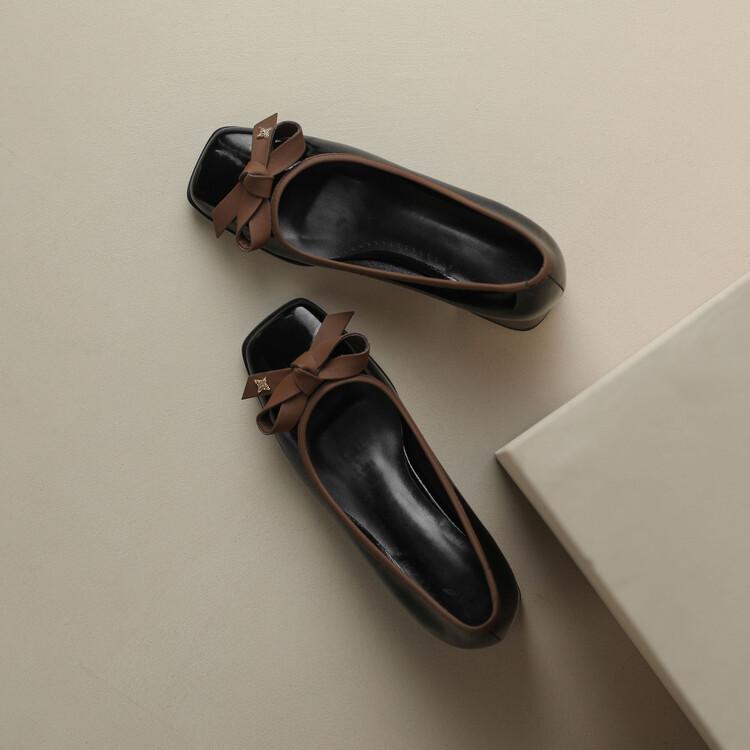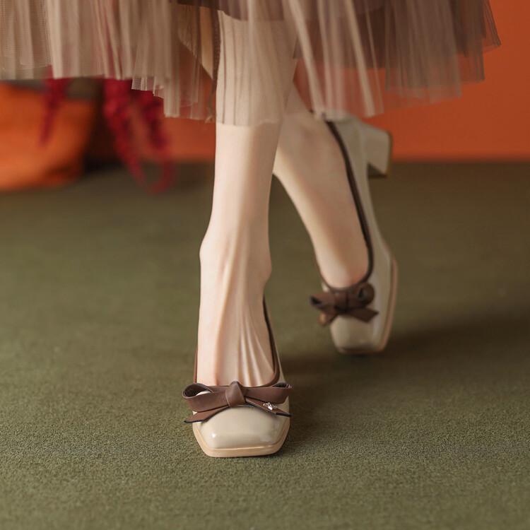 Zapatos Casuales de Corte Bajo y Tacón Alto para Mujer de Cuatro Estaciones, Zapatos de Cuero para Mujer de Color Sólido con Punta Cuadrada y Slip-Ons Bajos