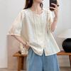 Compra Verano Nuevo Estilo Francés Algodón Bordado Tops, Camisas Sueltas Reductoras de Edad Modernas y Versátiles al Por Mayor al por mayor en Joom.pro